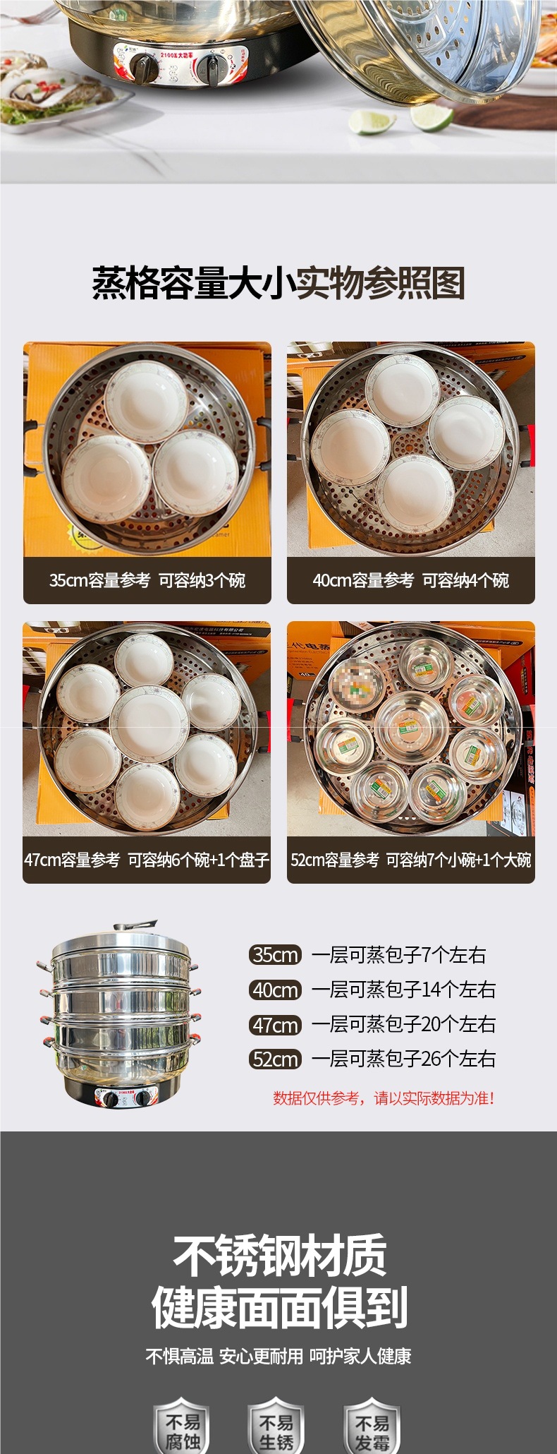 대형 전기 증기선 상업용 플러그 전기 증기선 단열 스테인레스 스틸 자체 구동 증기선 3 층 찐 빵 가정용스토어 가기