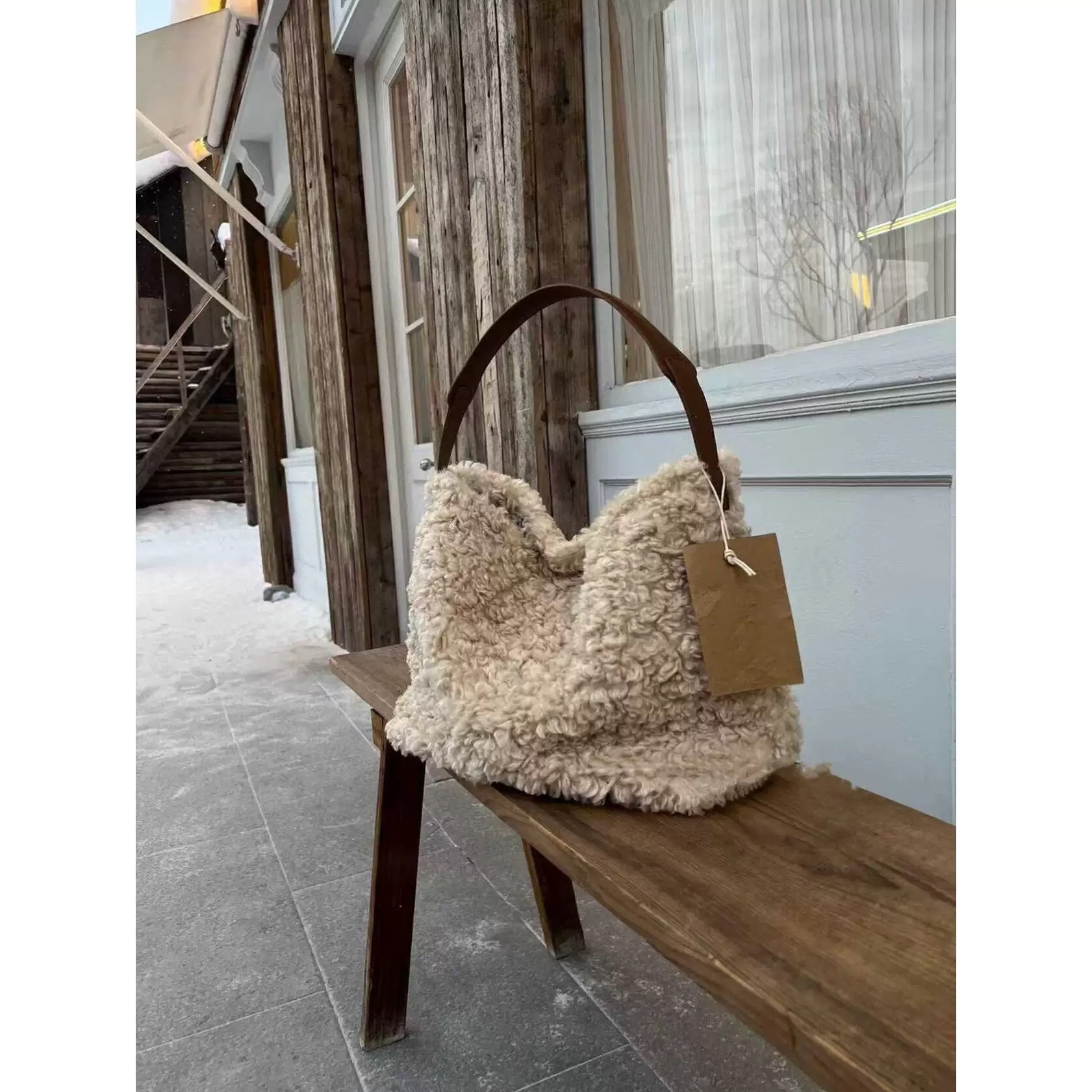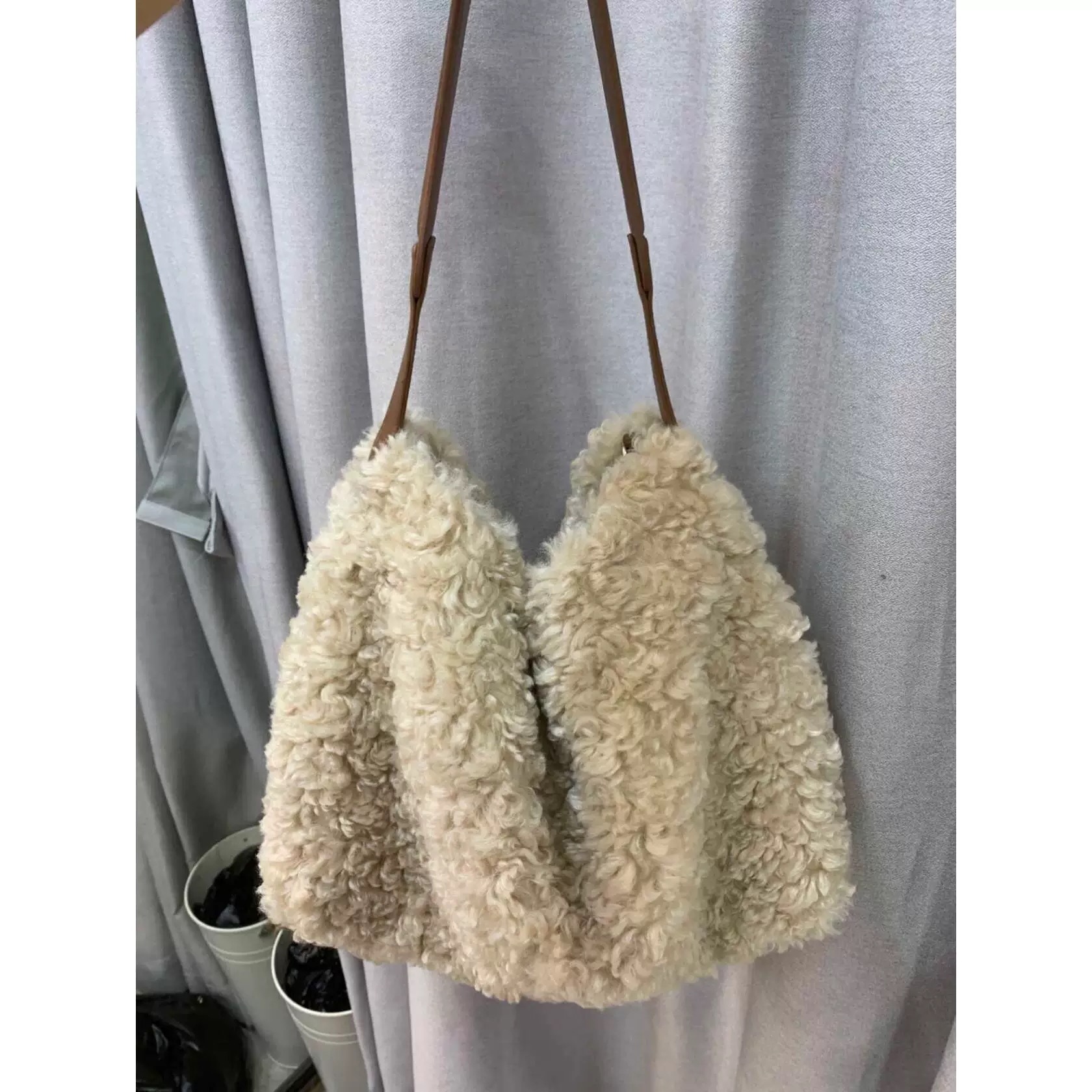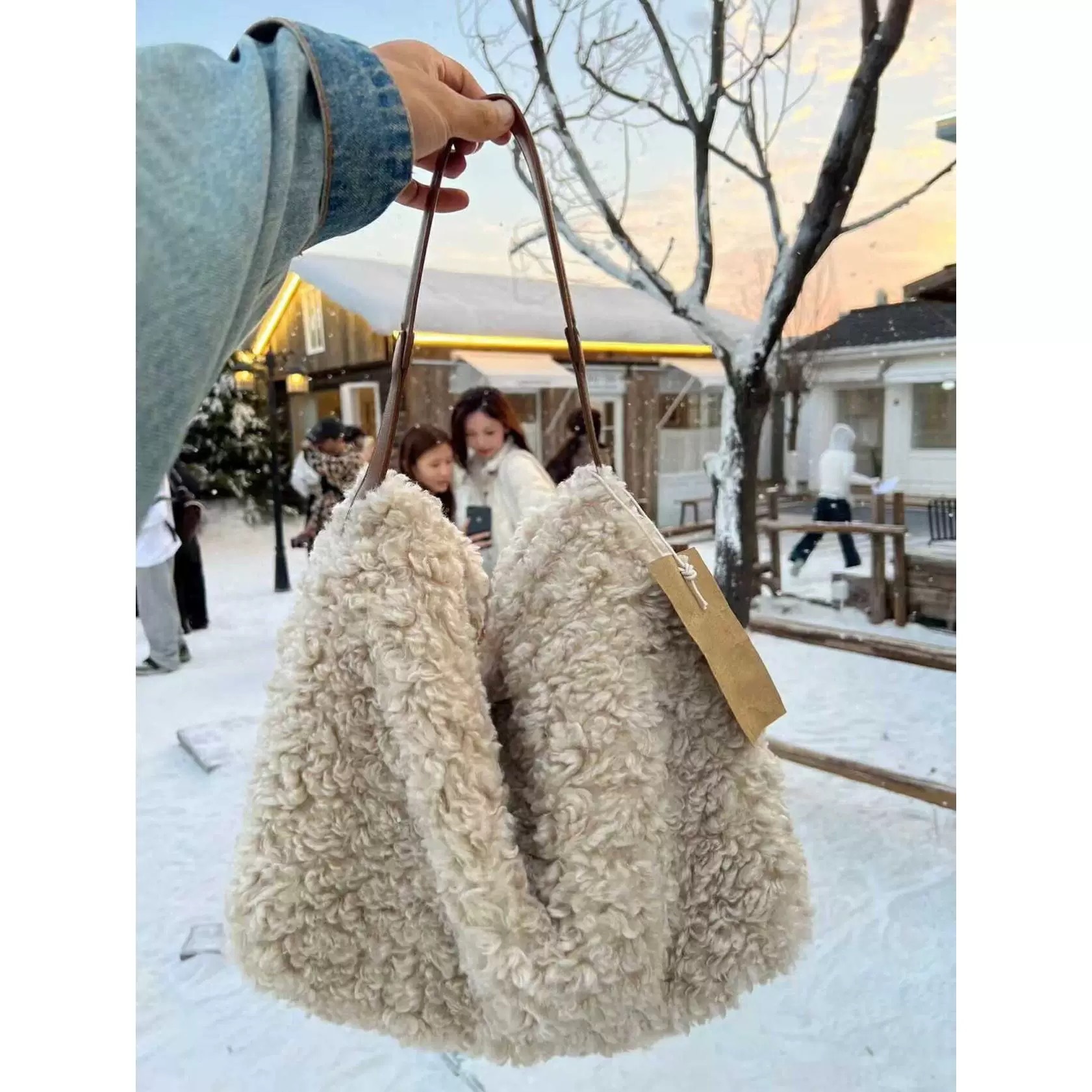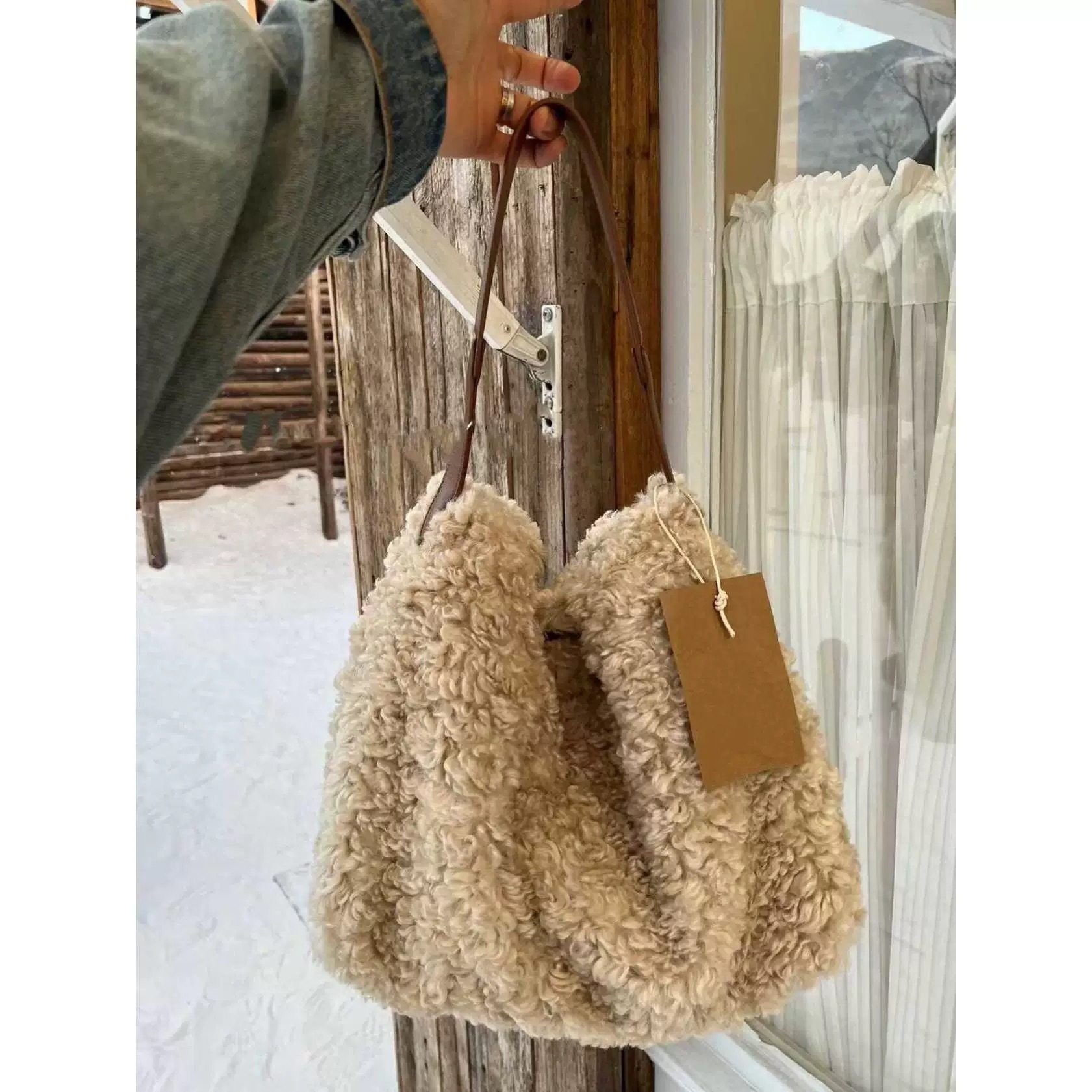 가을과 겨울 새로운 양모 토트 백 편안한 봉제 어깨 가방 대용량 모피 크로스 바디 백스토어 가기
