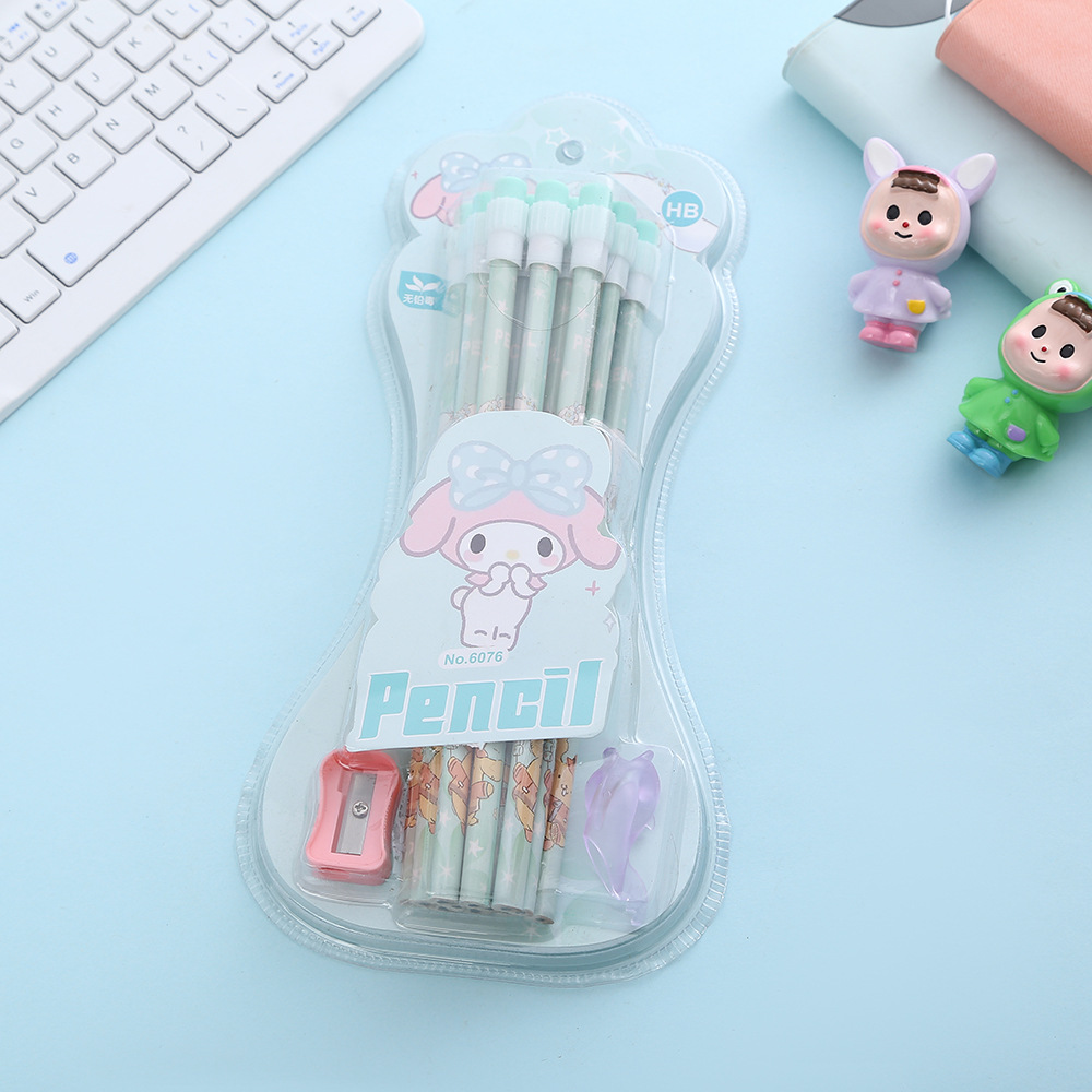 소녀를위한 지우개가있는 만화 귀여운 연필 세트 HB 연필 쉬운 지우기 무연 독 연필 문구