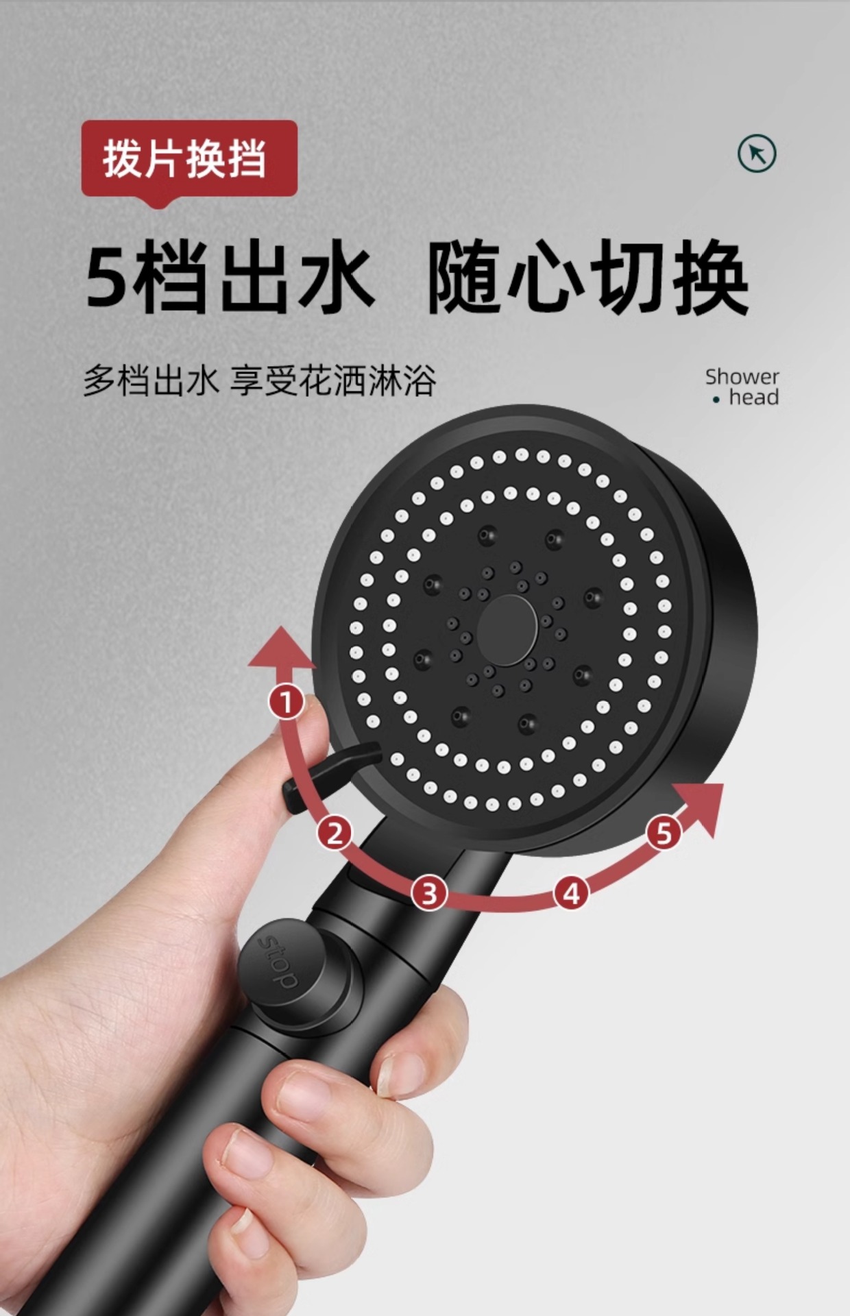 • [친진그레이] 5단 슈퍼차저 샤워기(원클릭 워터스톱)
