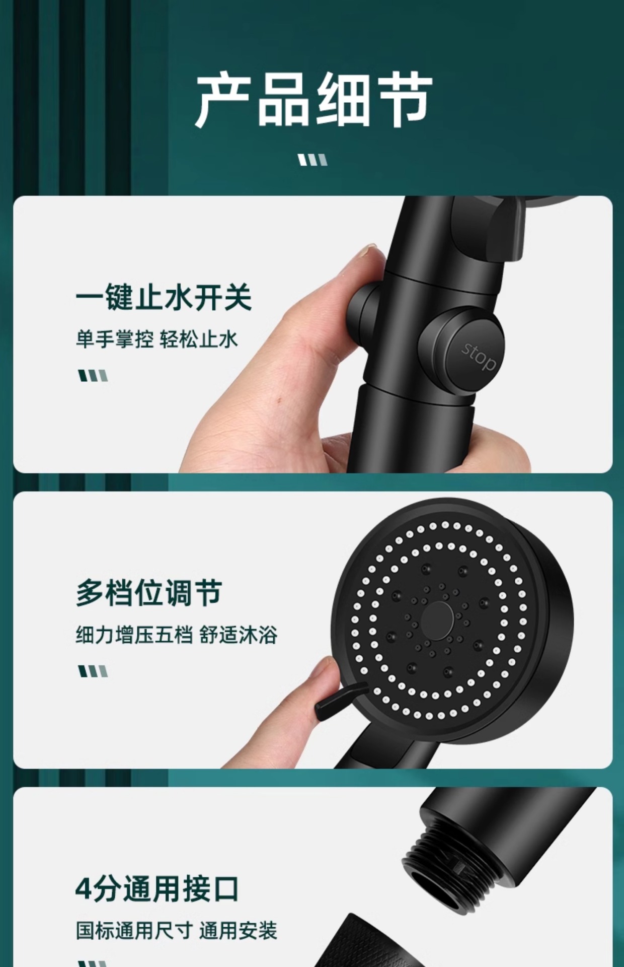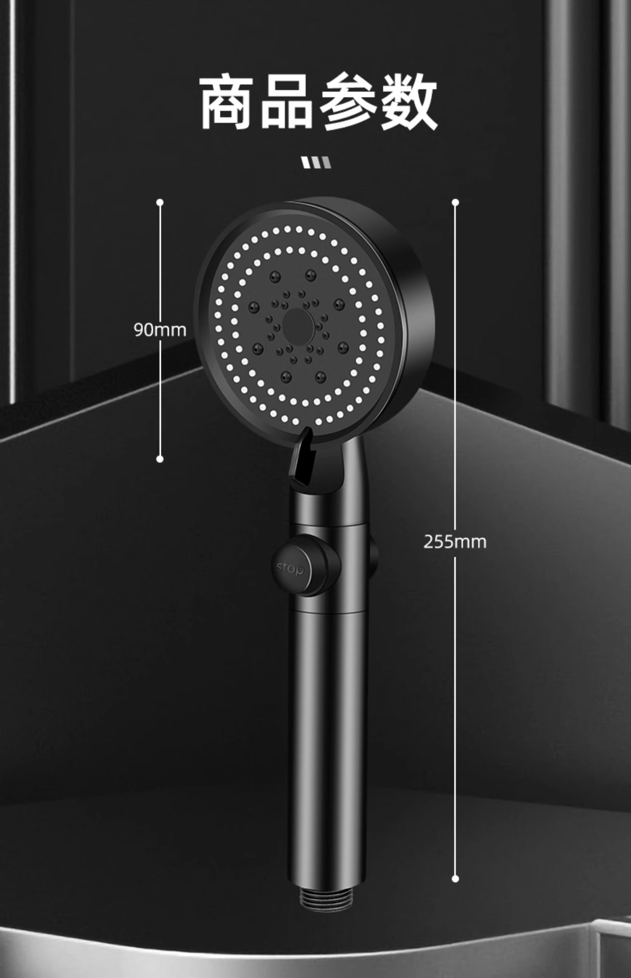 • [옵시디언 블랙] 5단 슈퍼차저 샤워기(원클릭 워터스톱)