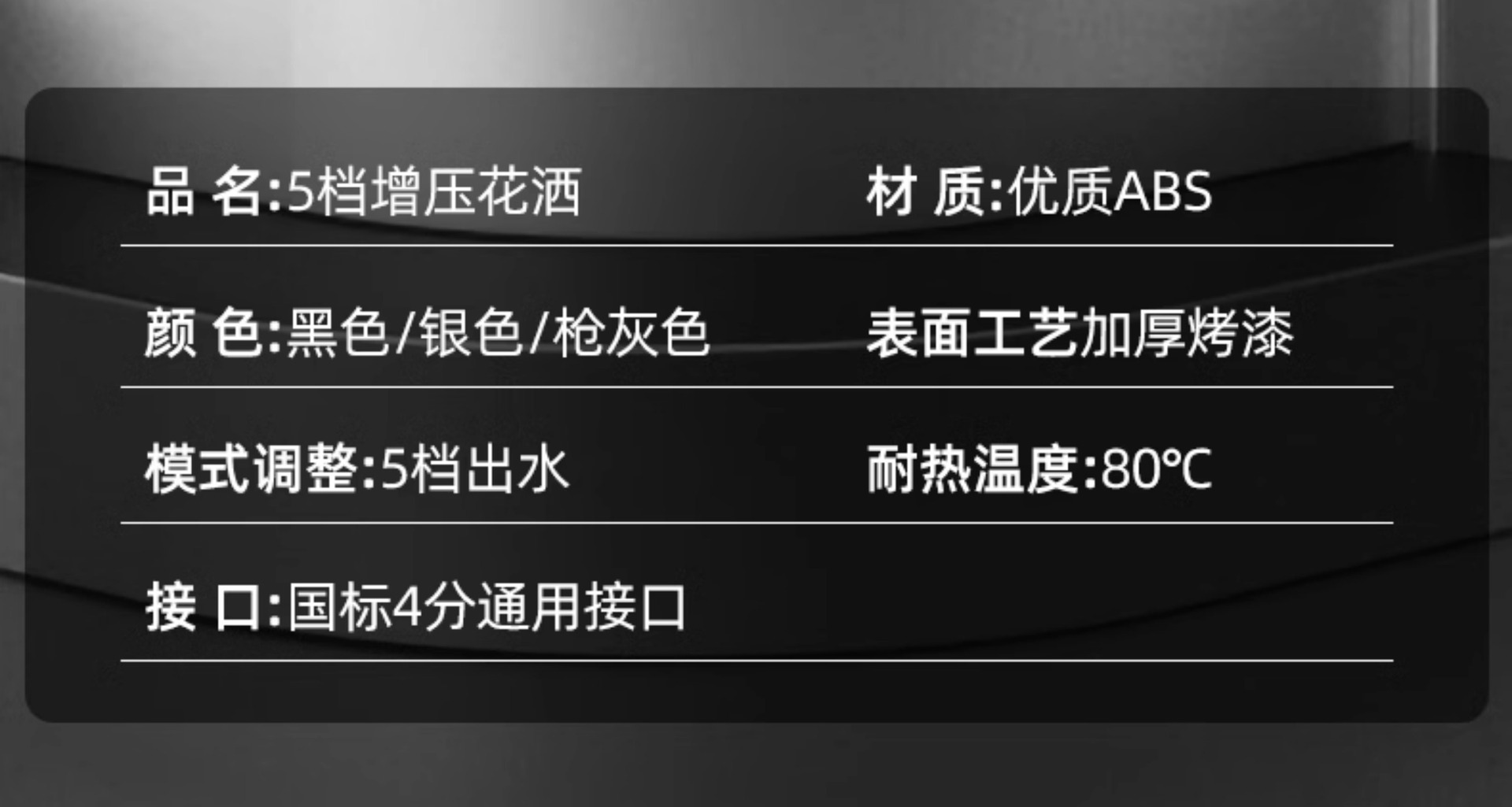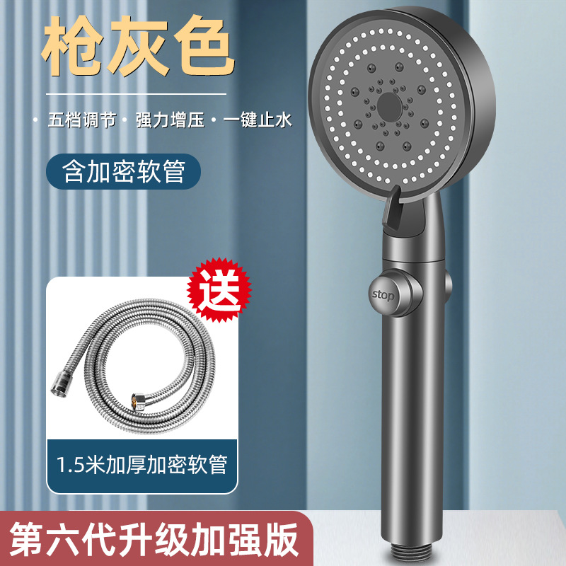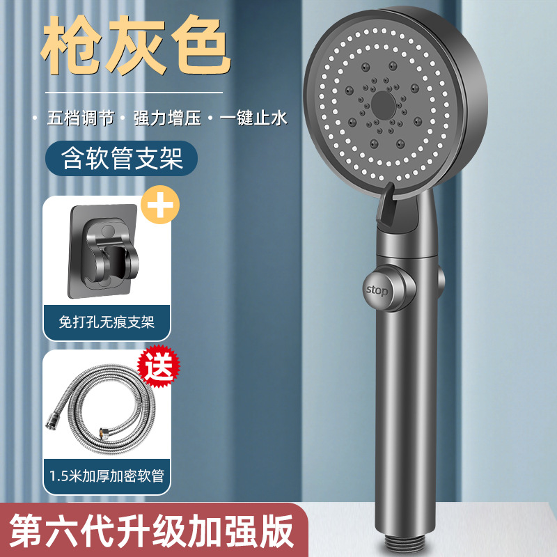 • [친킨그레이] 5단 슈퍼차저 샤워기 + 브라켓 + 1.5m 스테인레스 스틸 호스)