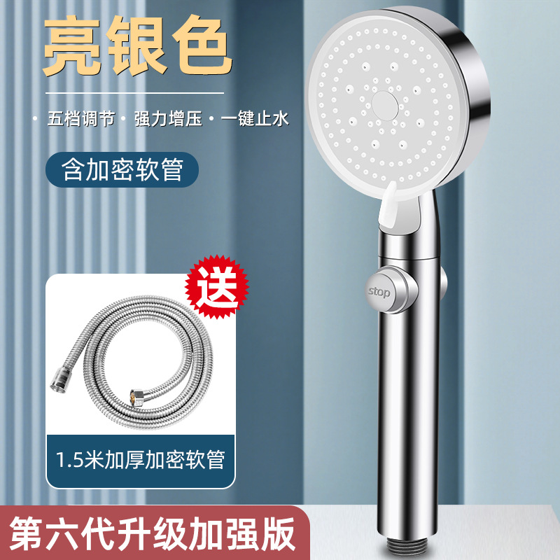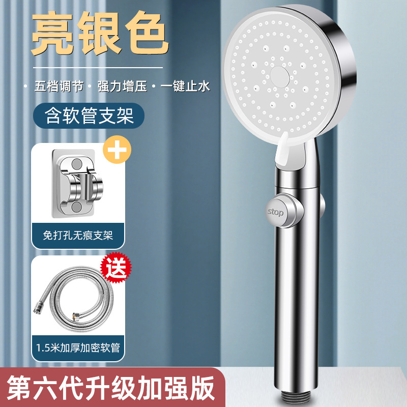 • [전기도금 실버] 5단 슈퍼차저 샤워기 + 브라켓 + 1.5m 스테인레스 스틸 호스)