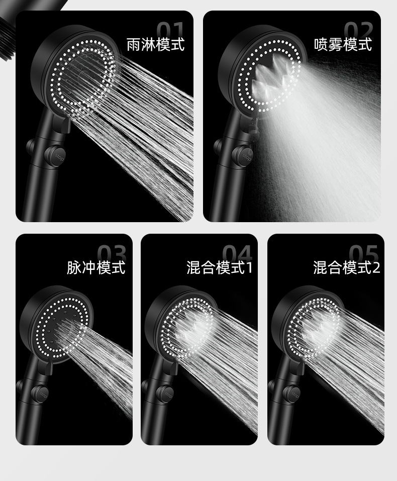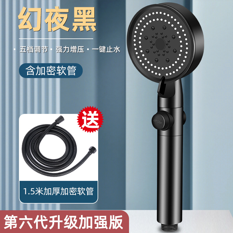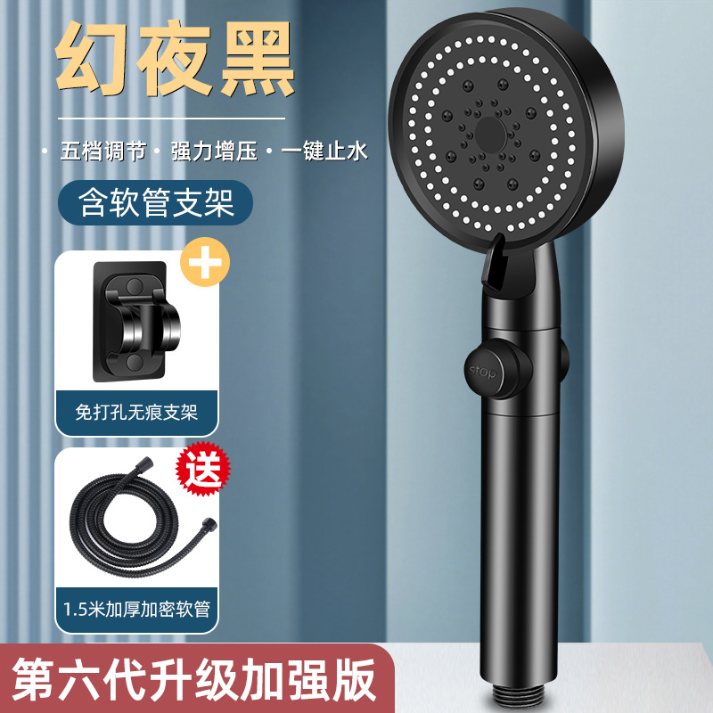 • [옵시디언 블랙] 5단 슈퍼차저 샤워기 + 브라켓 + 1.5m 스테인레스 호스)