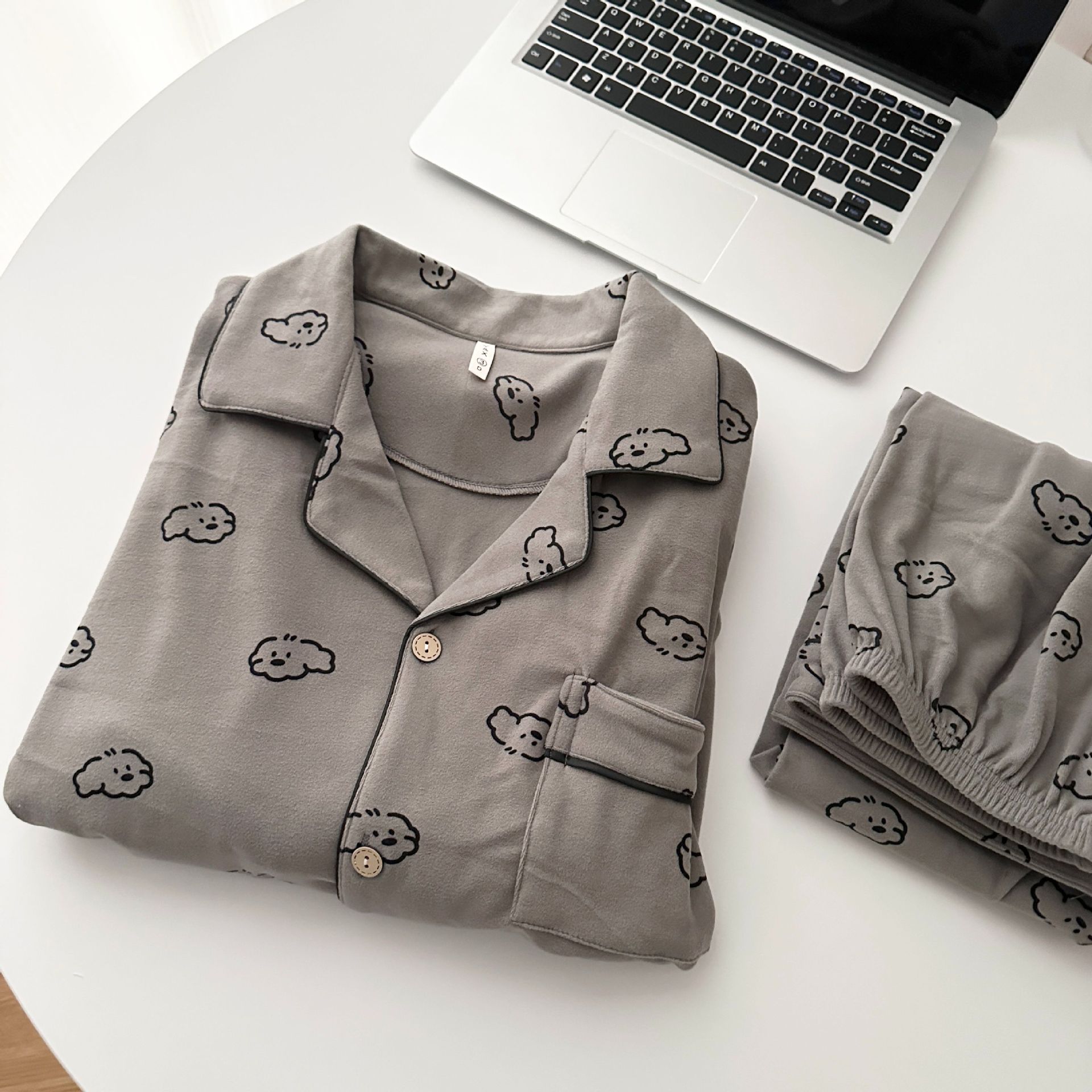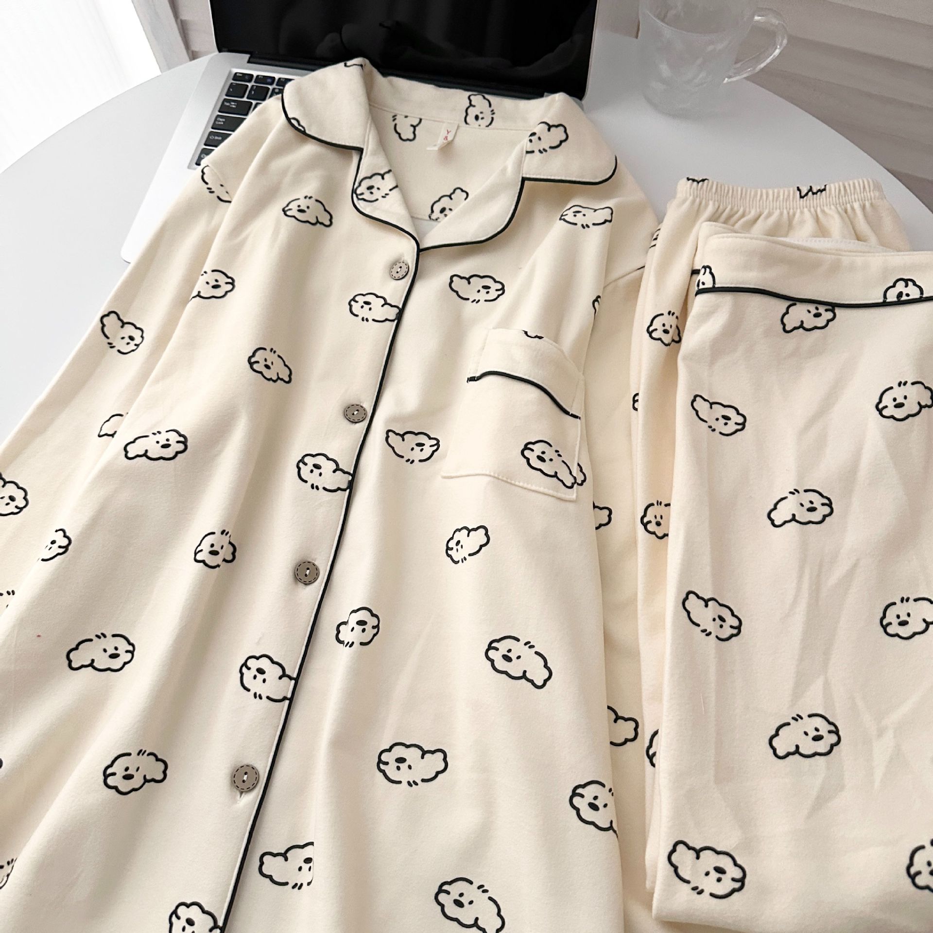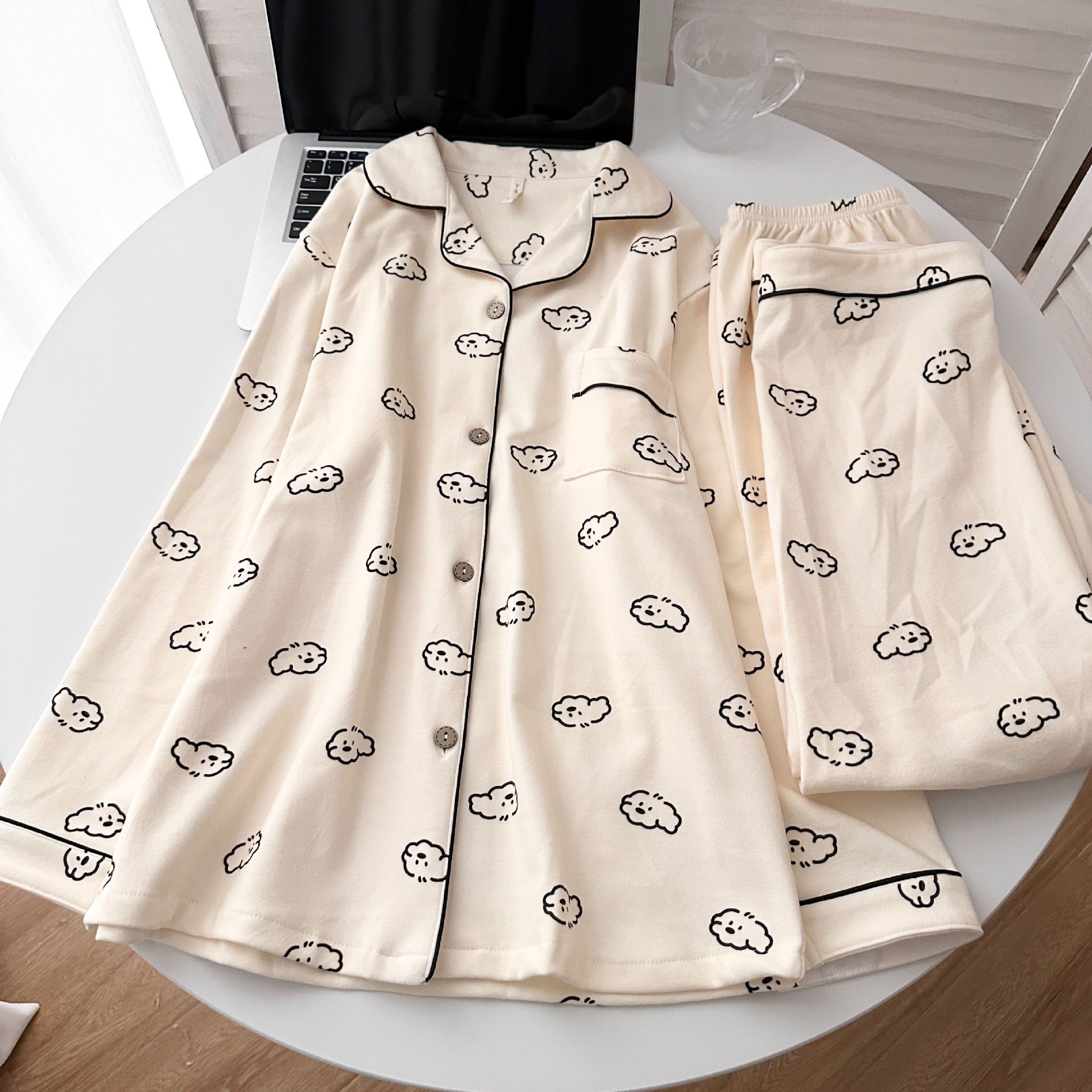 만화 강아지 잠옷 여성의 겨울 기모 두꺼운 두 조각 일본 스타일 Ins 스타일 귀여운 긴팔 홈 의류스토어 가기