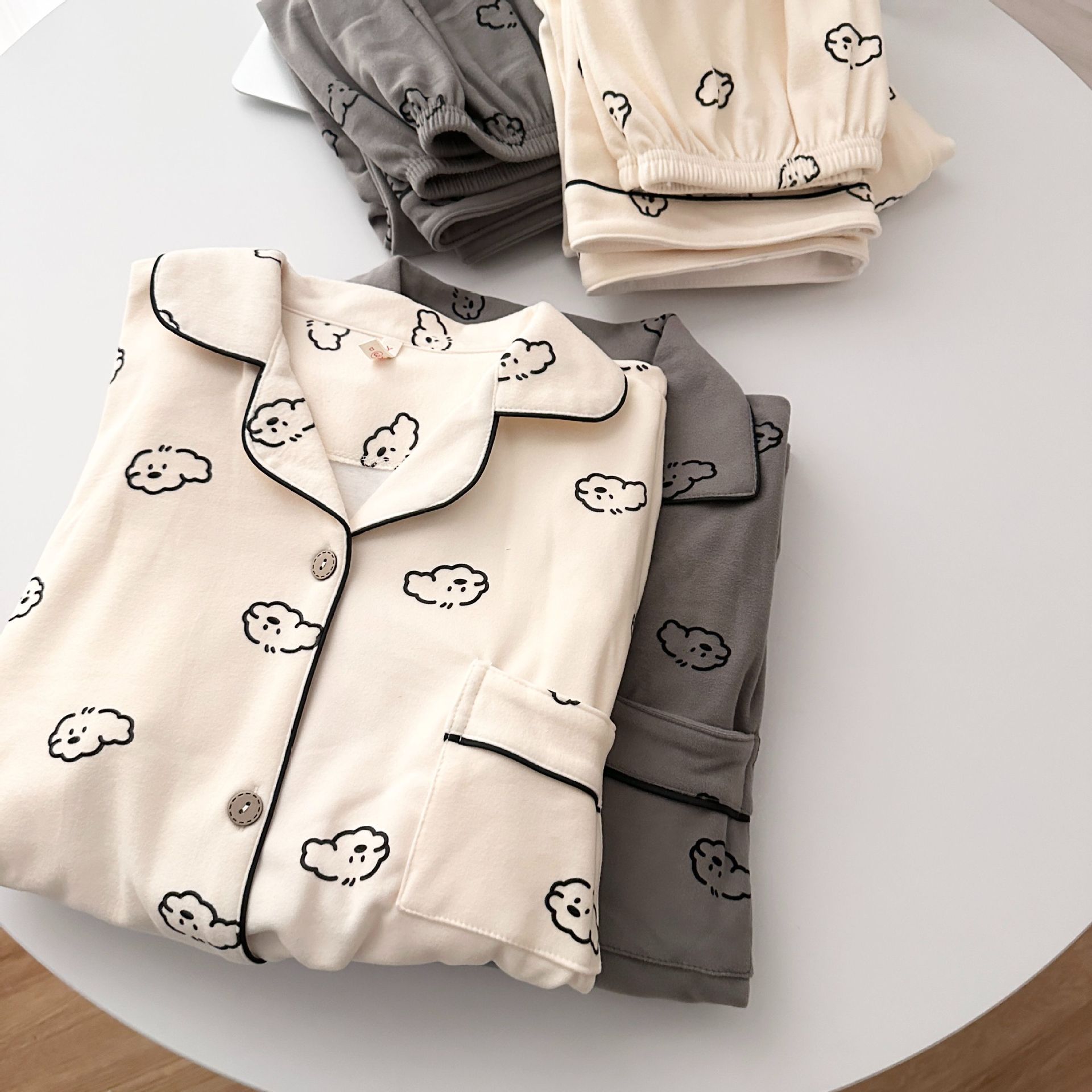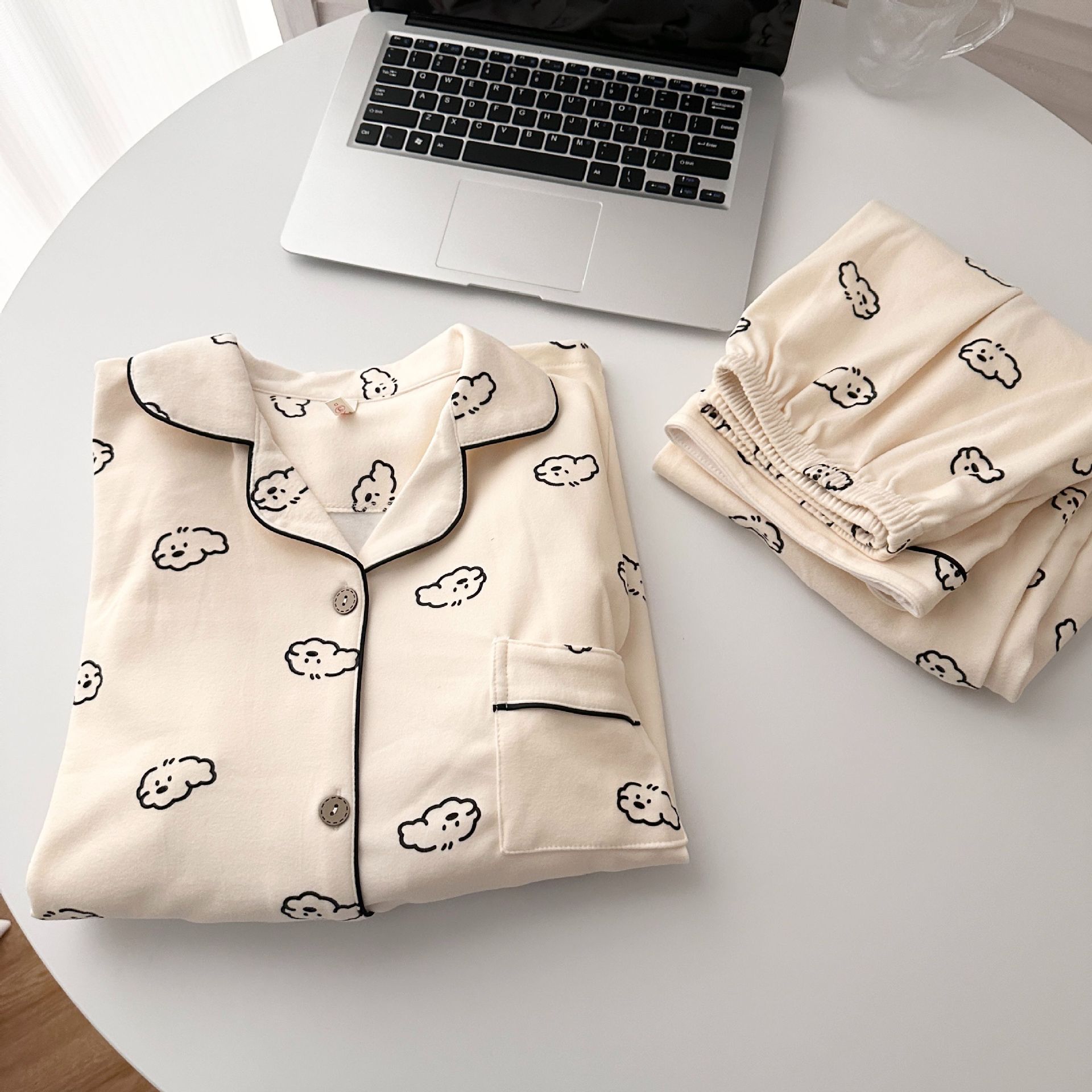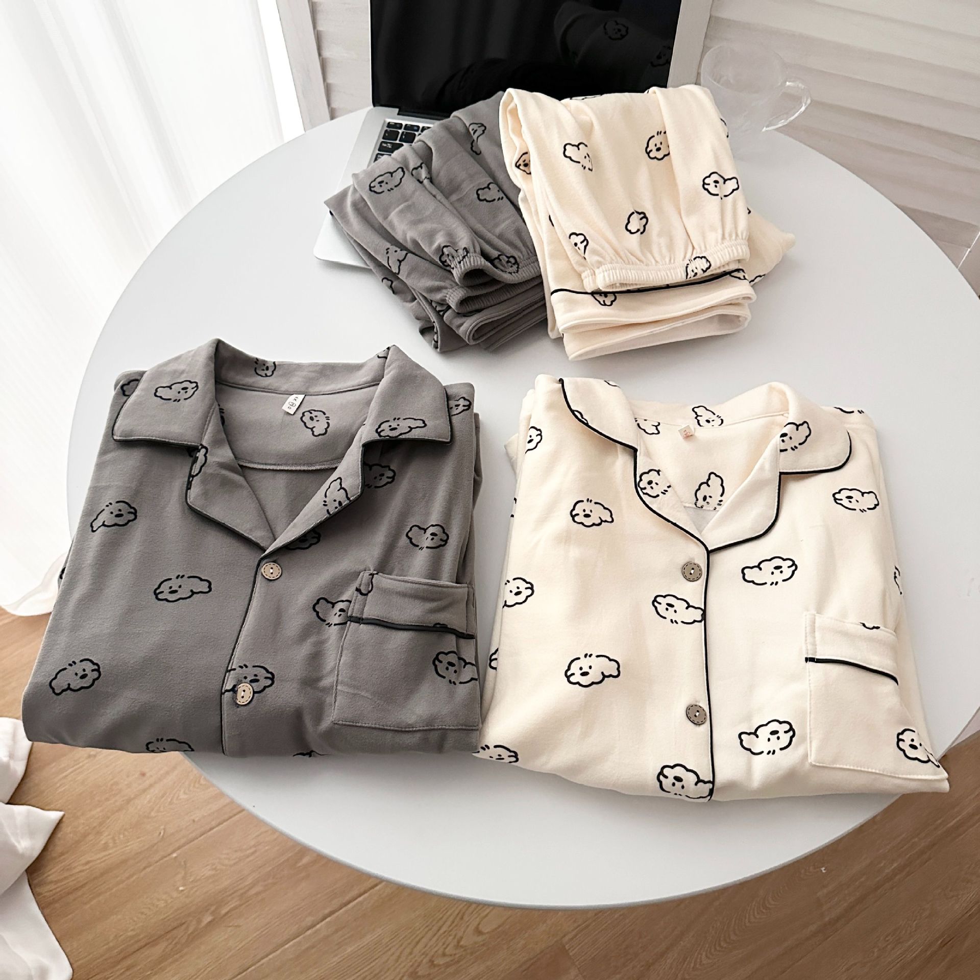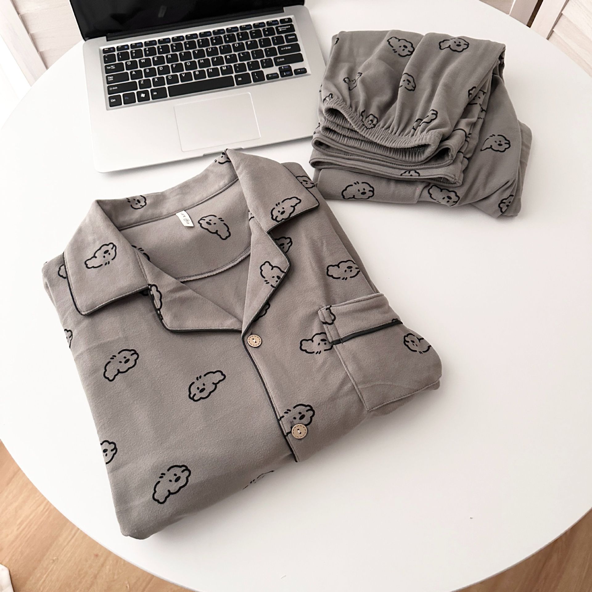만화 강아지 잠옷 여성의 겨울 기모 두꺼운 두 조각 일본 스타일 Ins 스타일 귀여운 긴팔 홈 의류스토어 가기