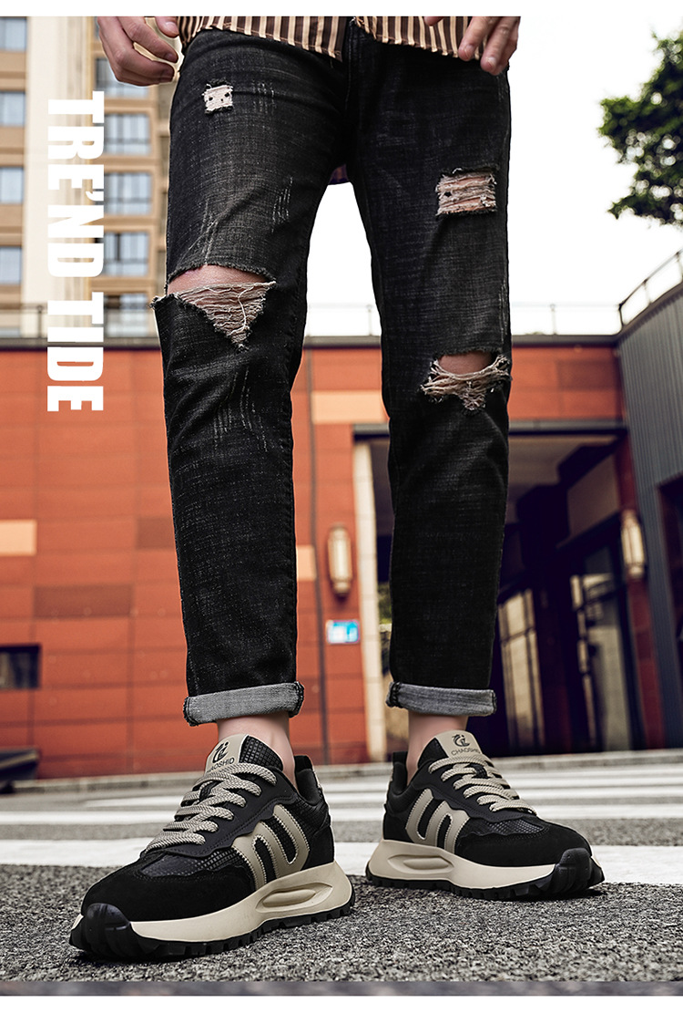남자 신발 가을과 겨울 새로운 스포츠 캐주얼 신발 올매치 트렌디 두꺼운 솔 부스터 신발 유럽 역 포레스트 검프 신발 남성용 미끄럼 방지스토어 가기