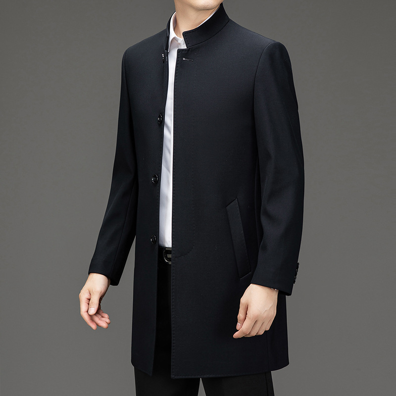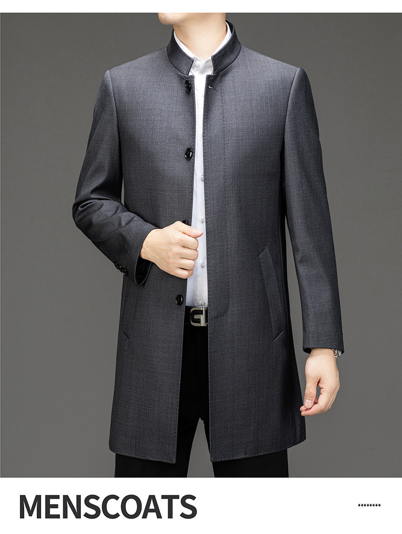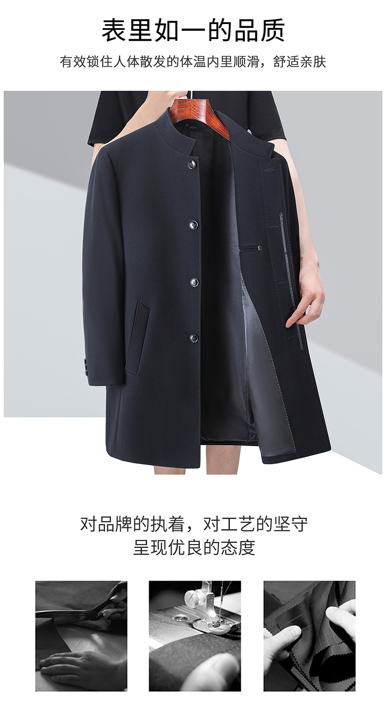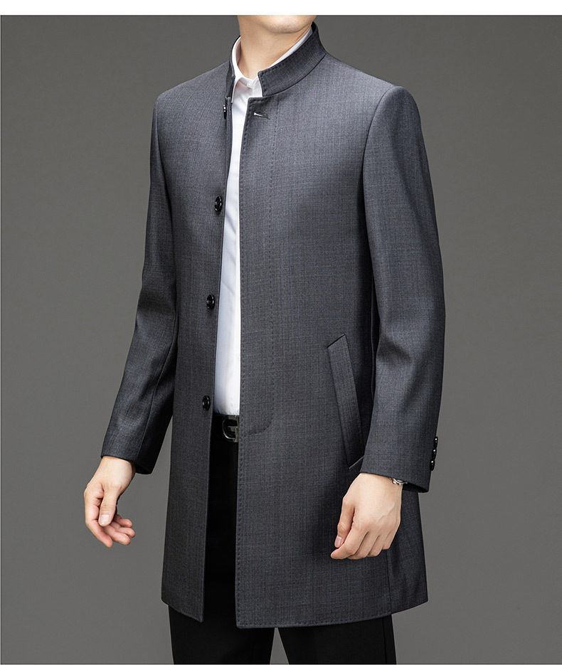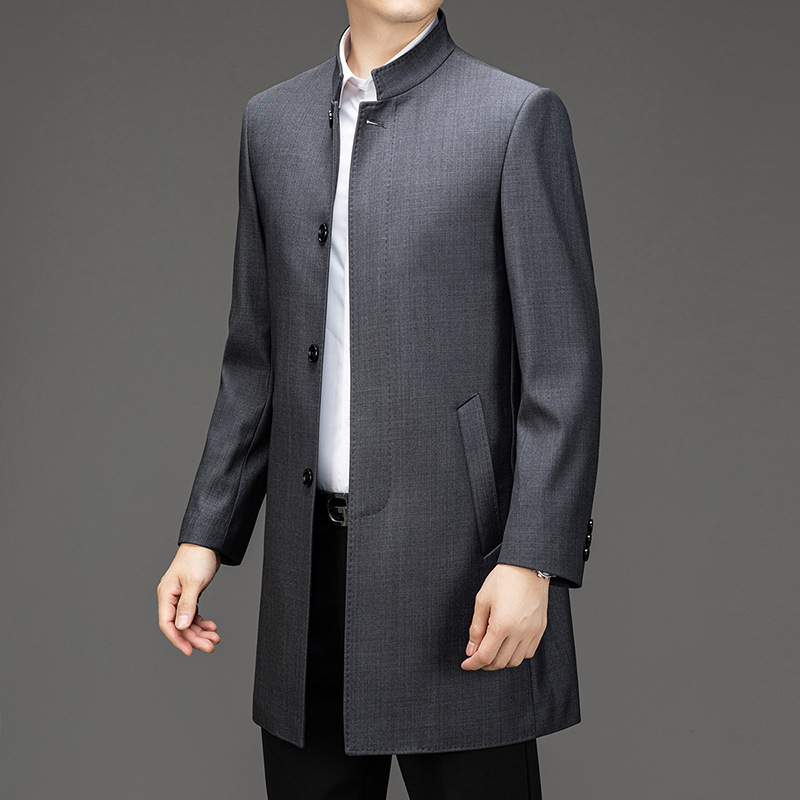 가벼운 고급 봄 가을 트렌치 코트 남성용 울 중년 중년 비즈니스 캐주얼 칼라 아빠 코트 재킷
