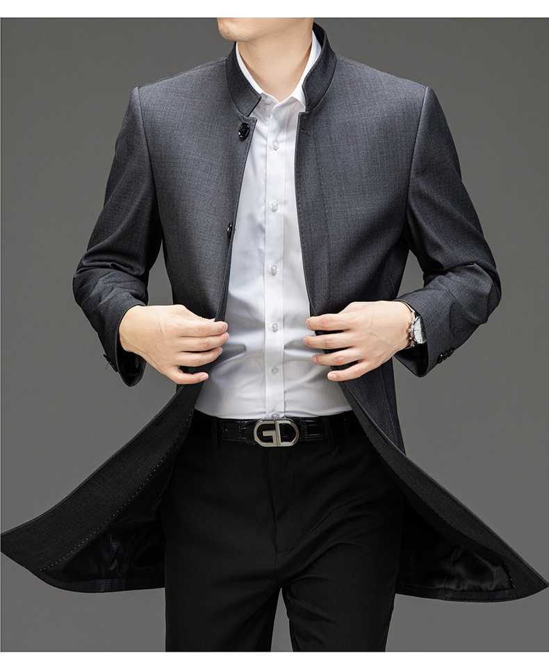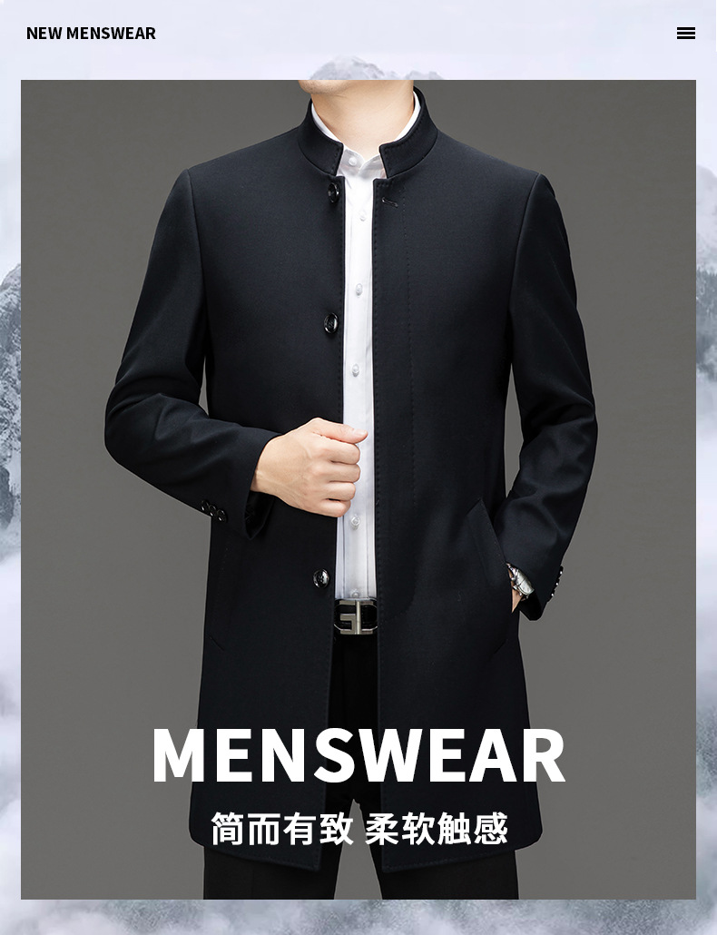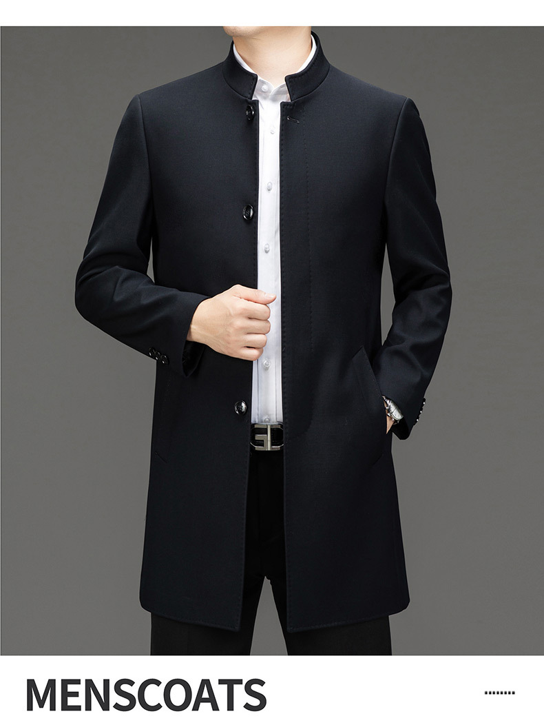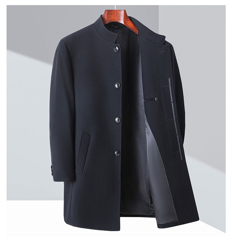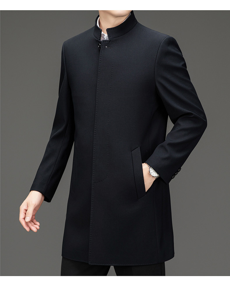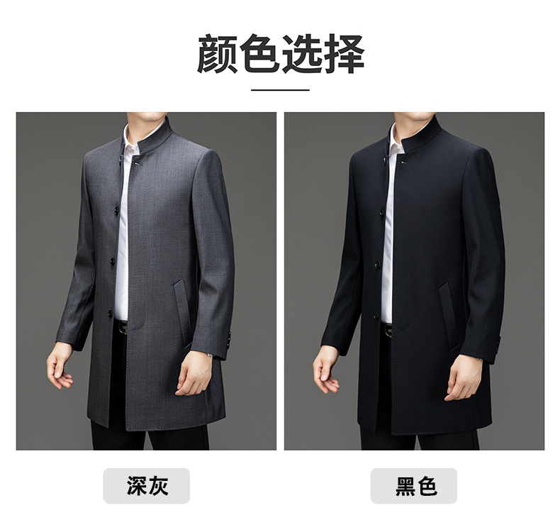 가벼운 고급 봄 가을 트렌치 코트 남성용 울 중년 중년 비즈니스 캐주얼 칼라 아빠 코트 재킷