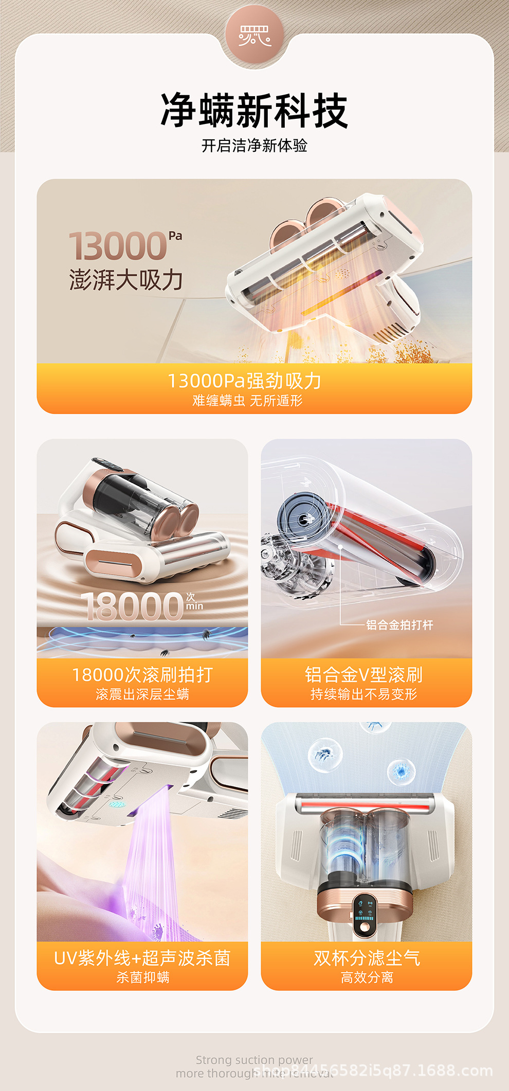 새로운 초음파 강한 흡입 롤러 브러시 더블 먼지 컵 비트 필터 가정용 UV 제거 살균 진드기 제거 기기 도매