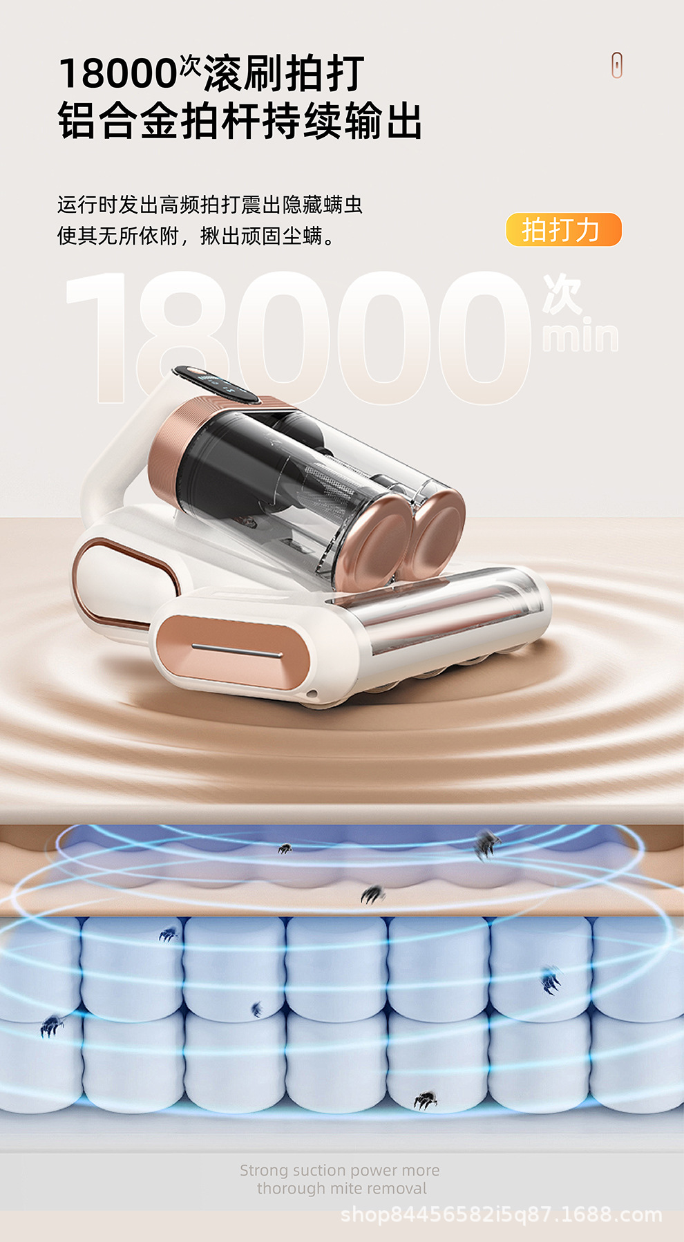 새로운 초음파 강한 흡입 롤러 브러시 더블 먼지 컵 비트 필터 가정용 UV 제거 살균 진드기 제거 기기 도매스토어 가기