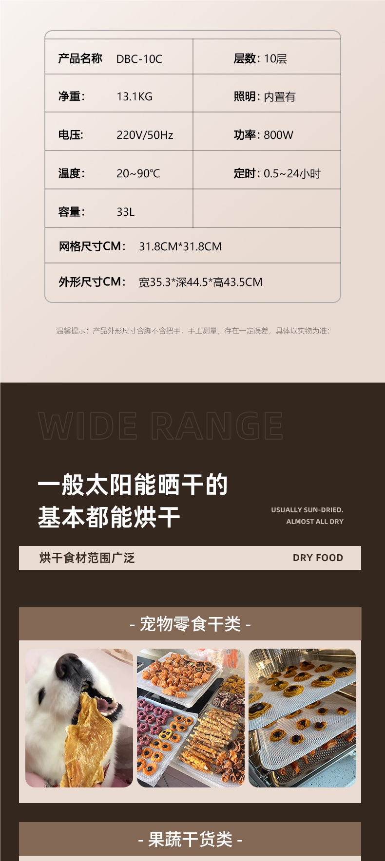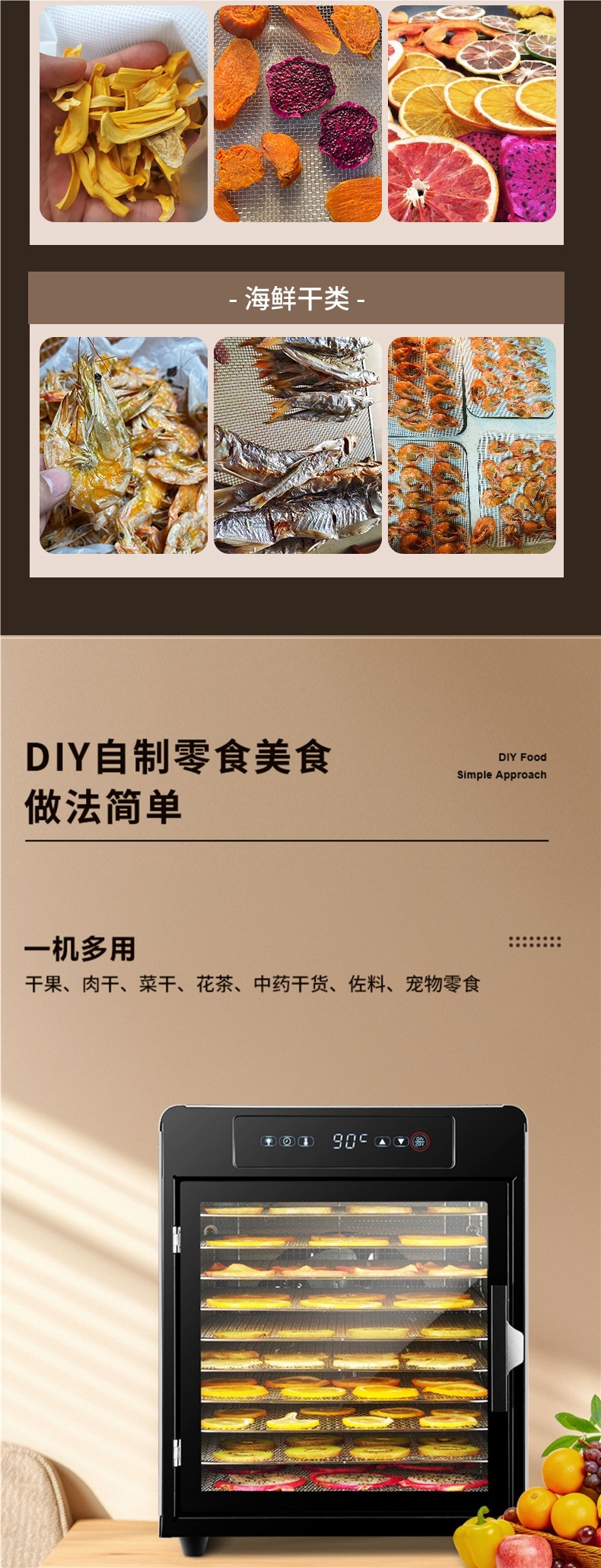 식품 건조기 애완 동물 간식 가정용 작은 말린 과일 기계 과일 망고 생선 건조 공기 건조기