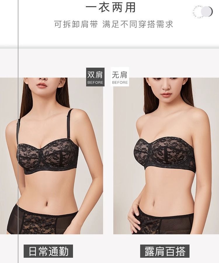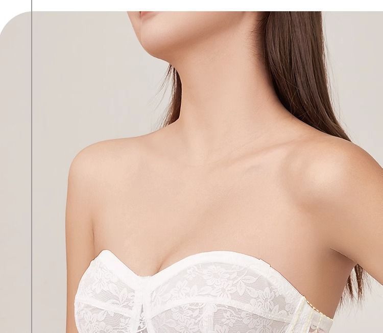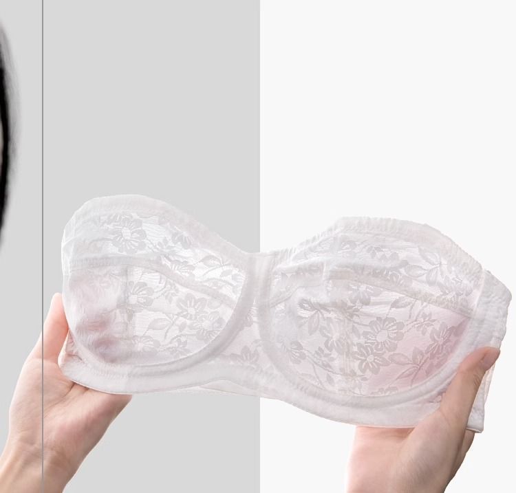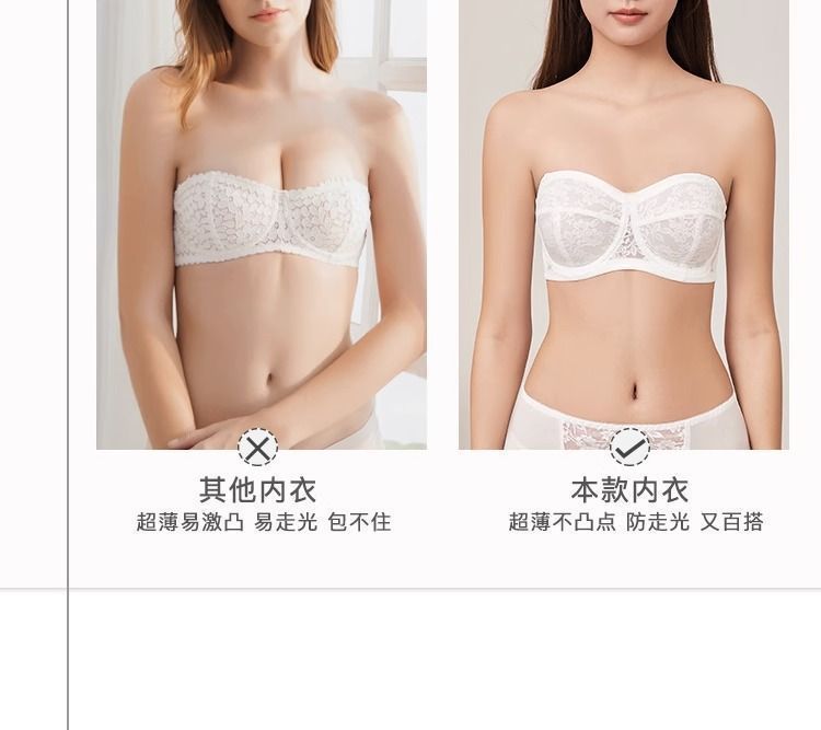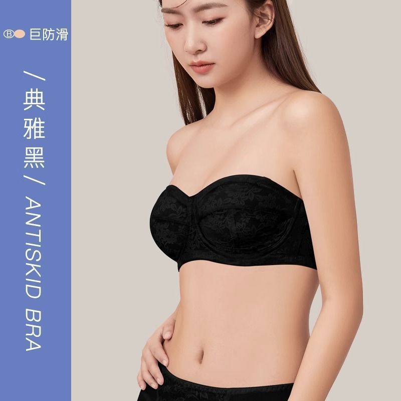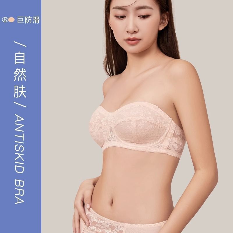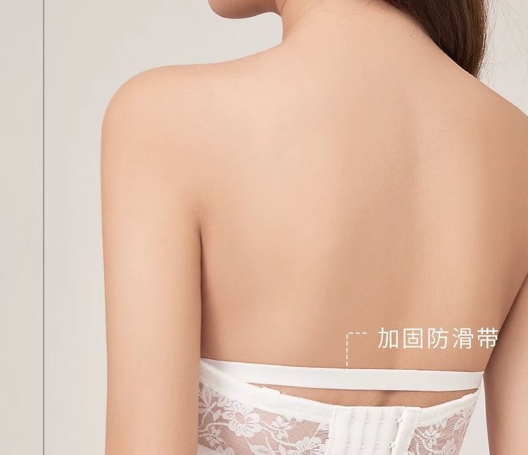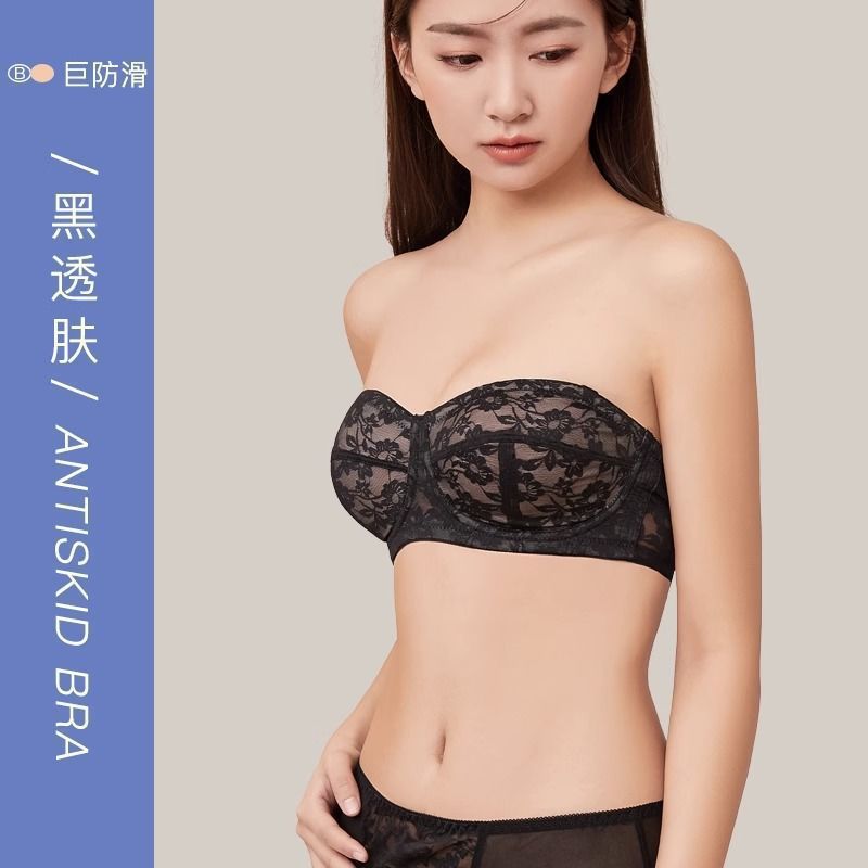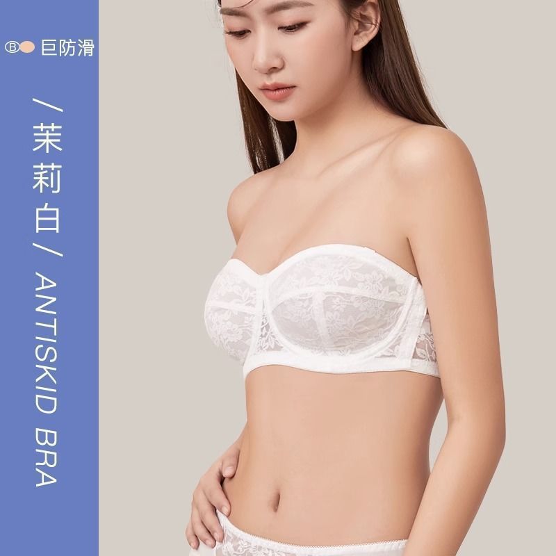 여름 신제품 얇은 속옷 끈이 없는 브라 여성용 뷰티 백 레이스 튜브 탑 대형 미끄럼 방지 큰 가슴이 더 작아 보입니다.스토어 가기