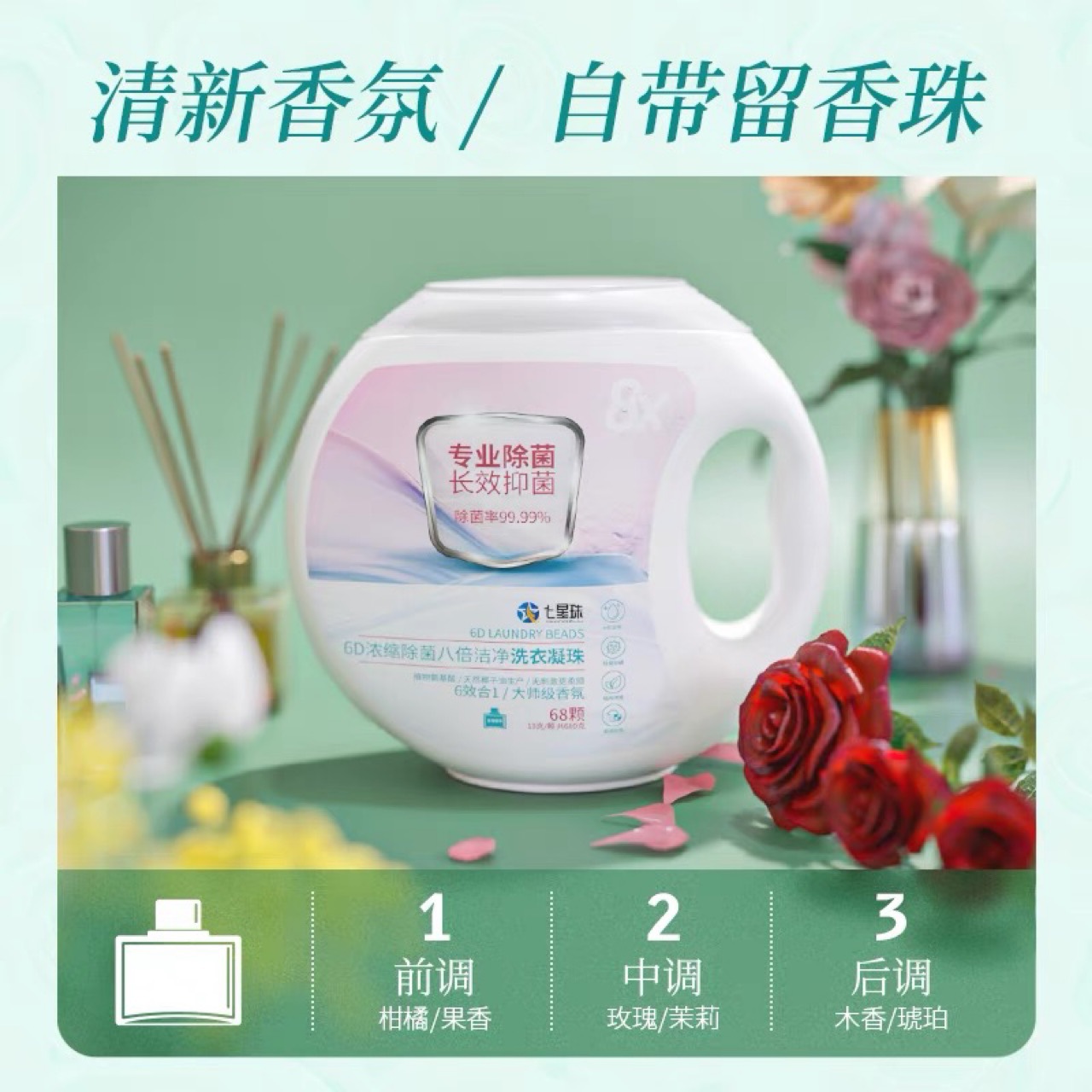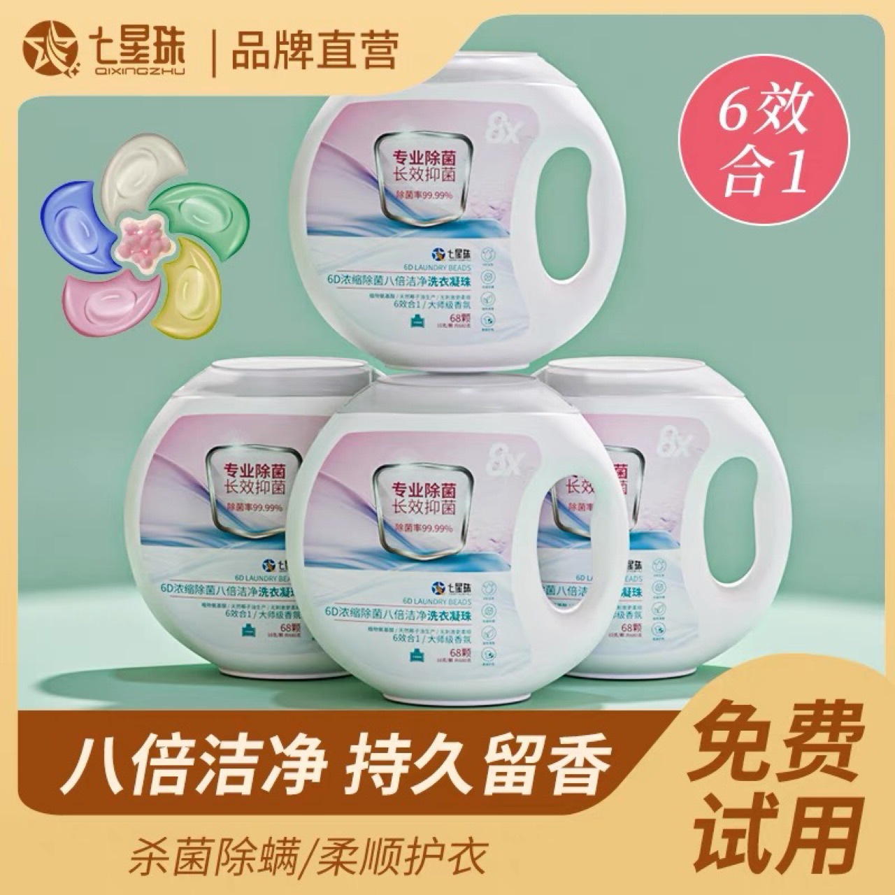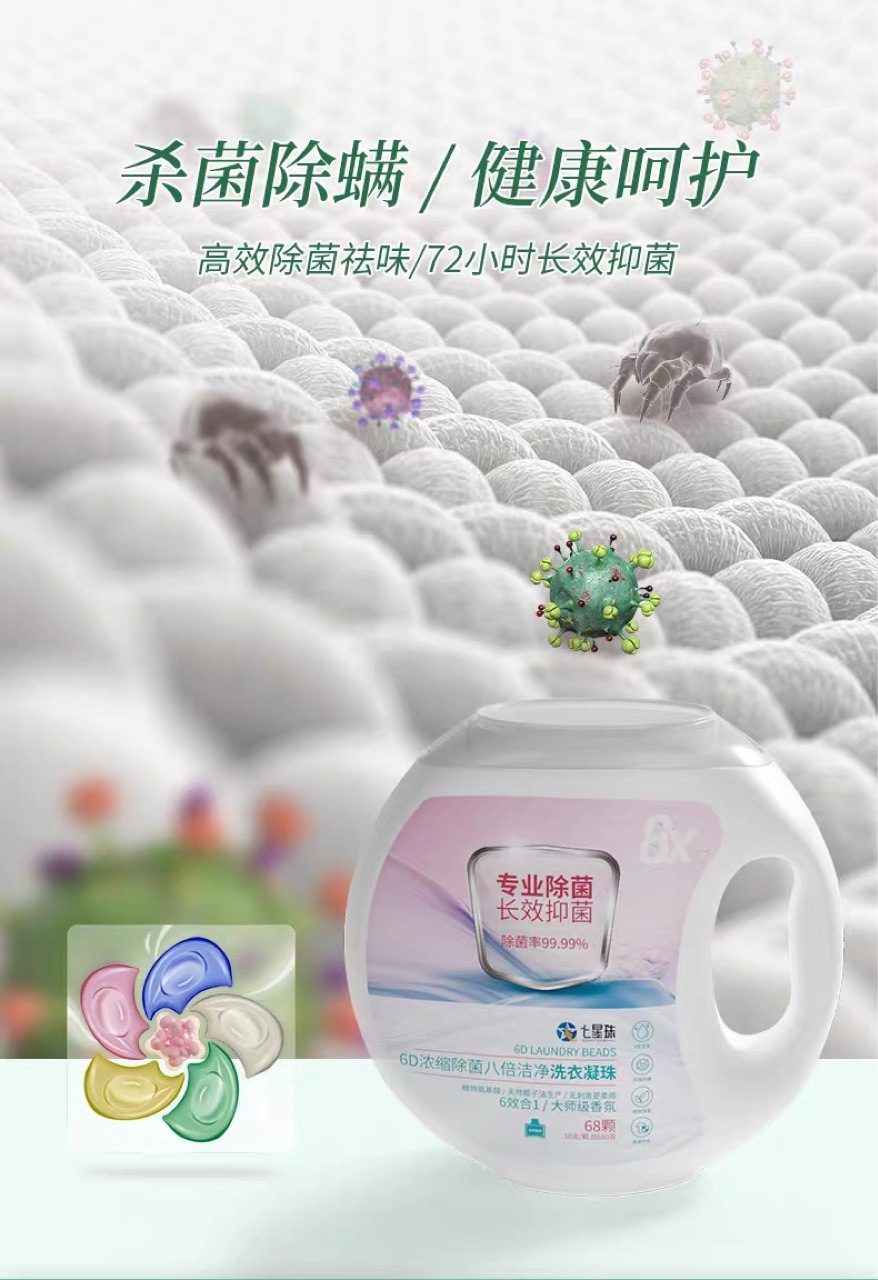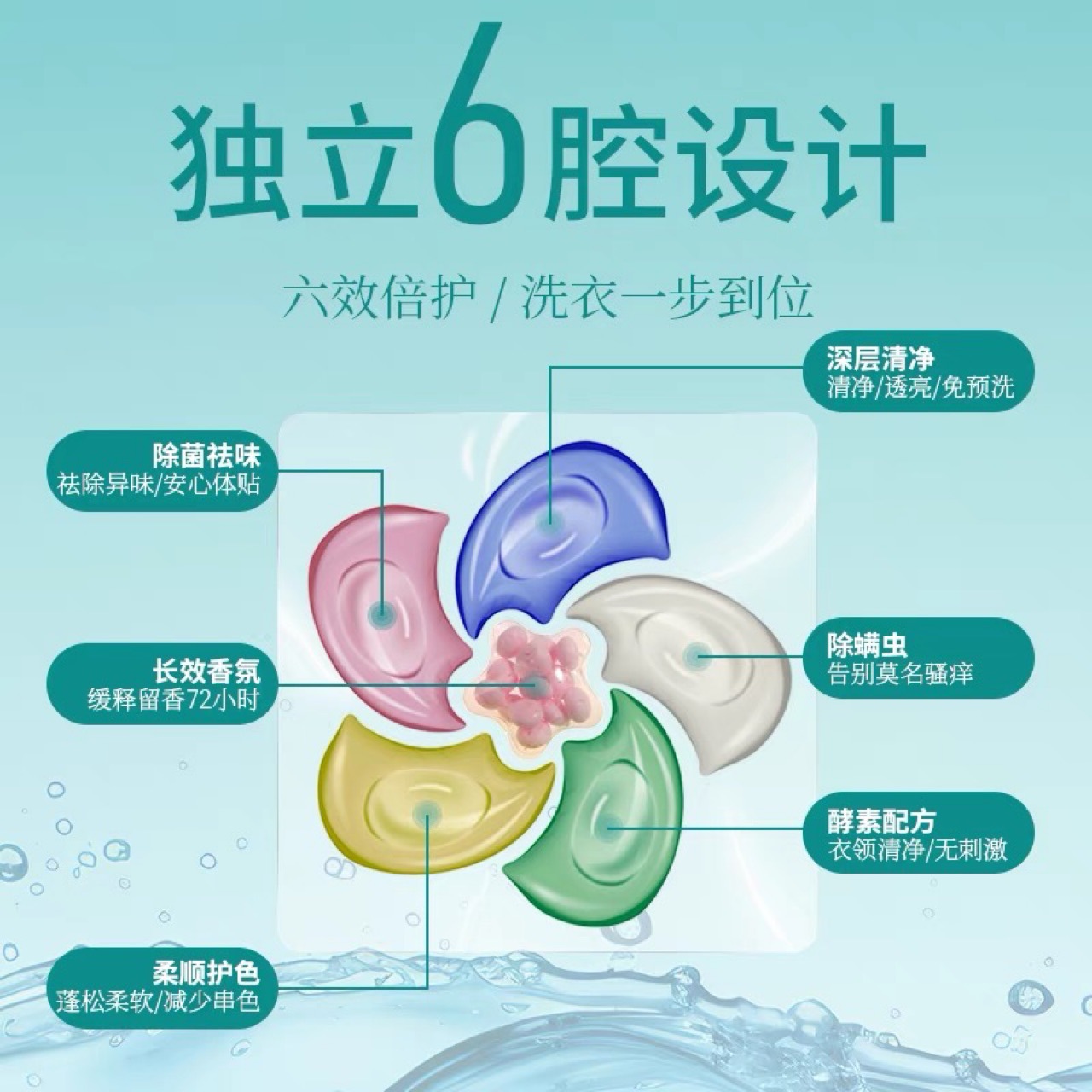 6-in-1 6칸 세탁볼, 농축 향기, 항균, 진드기 방지, 꽃향기, 고농축 세제