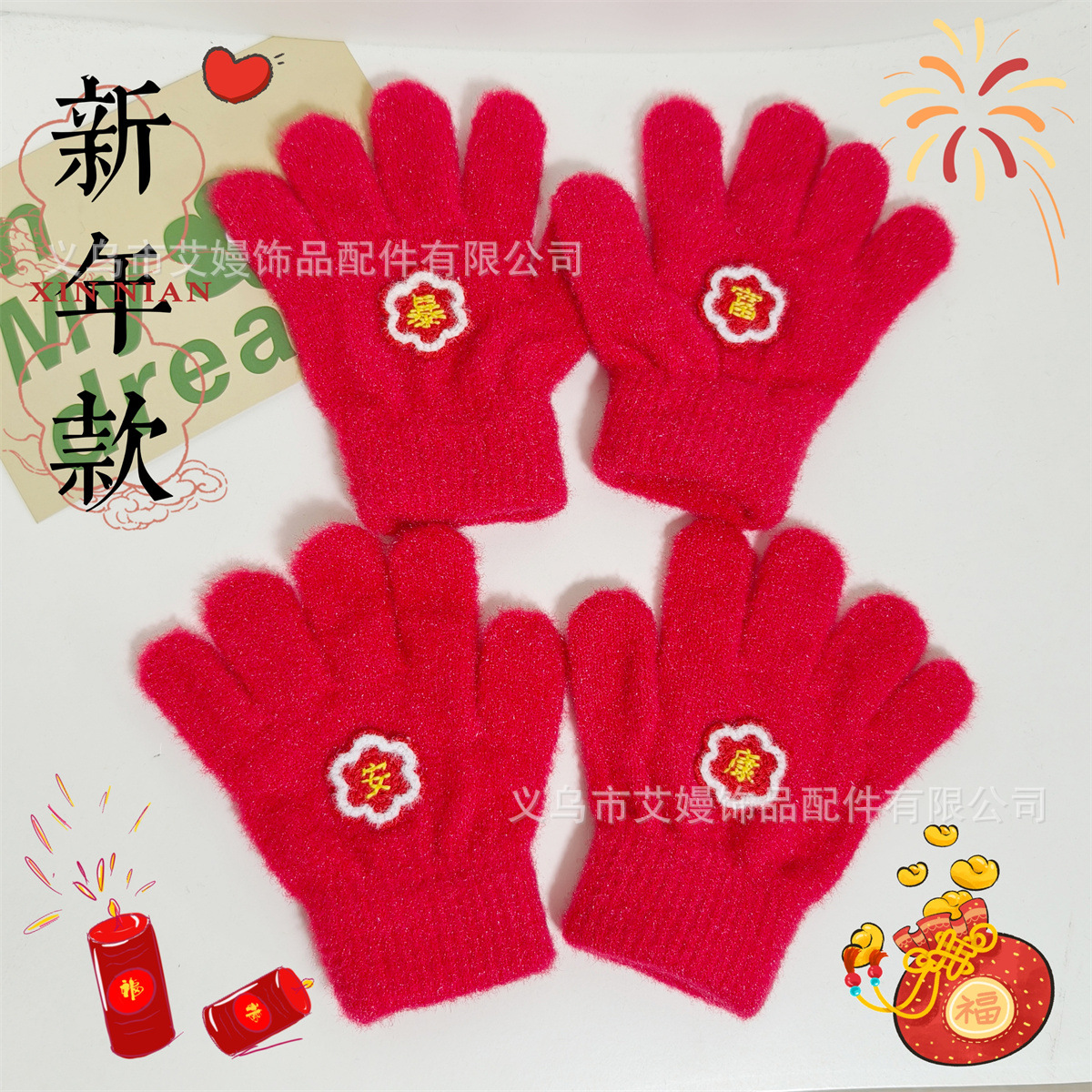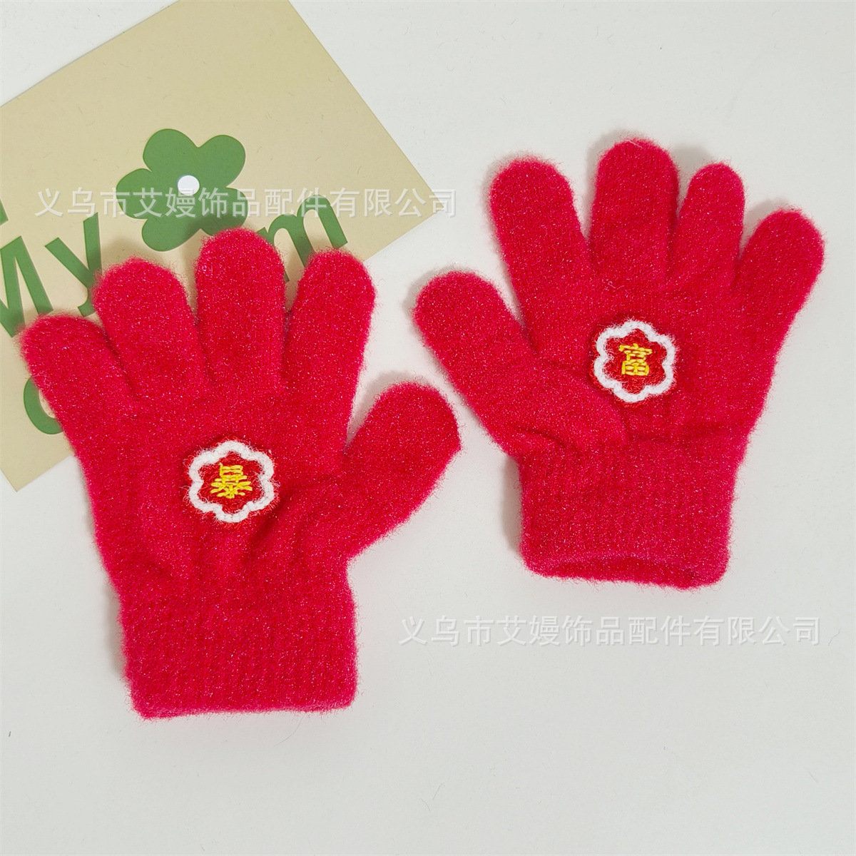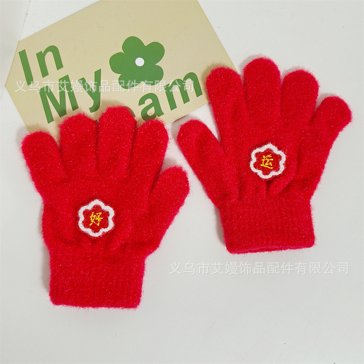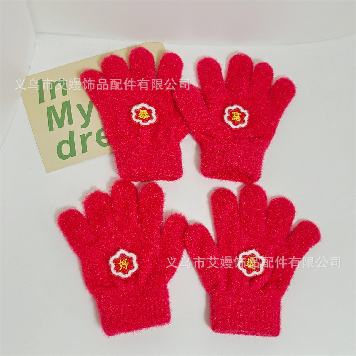 겨울 붉은 새해의 풍부한 행운의 플러시 장갑 여성을위한 따뜻한 어린이의 방풍 냉동 손가락 장갑