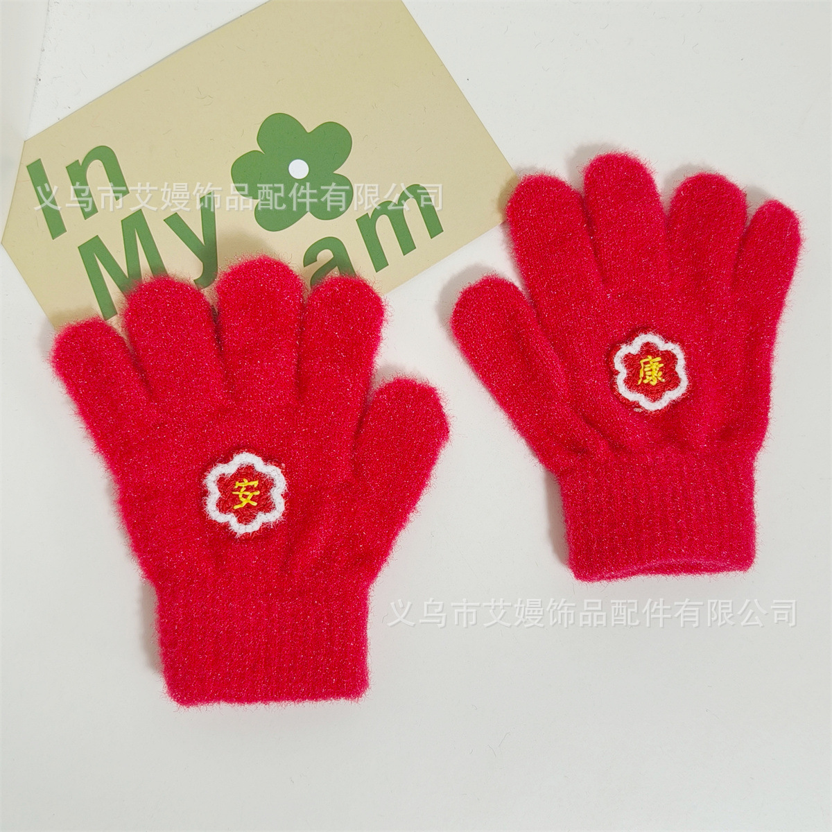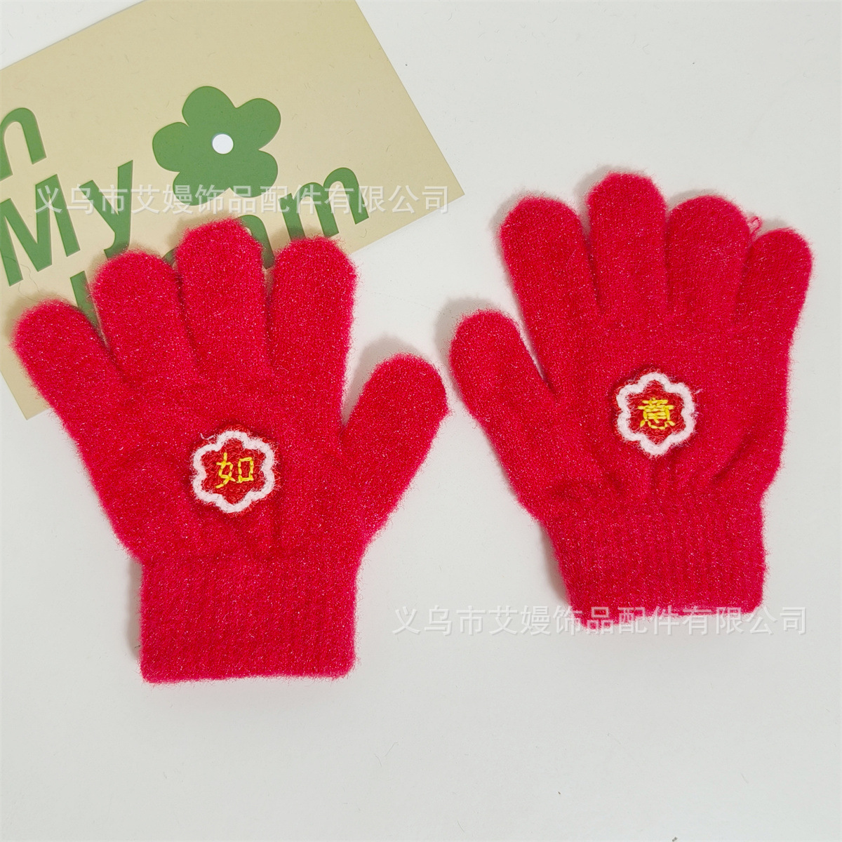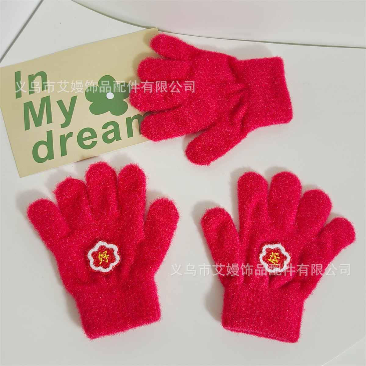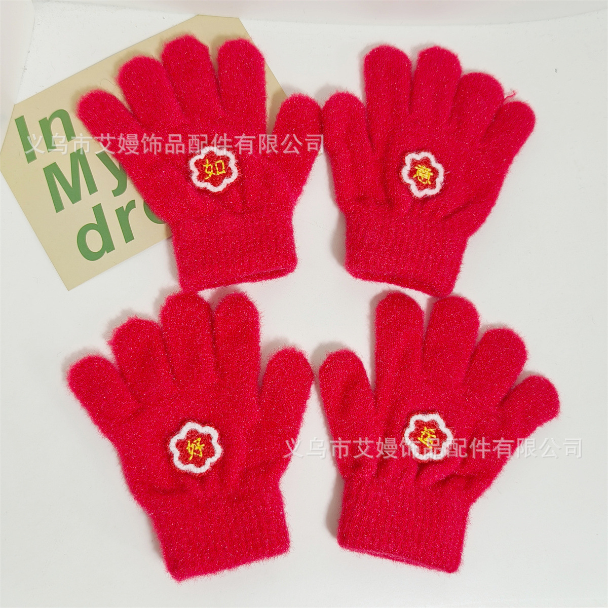 겨울 붉은 새해의 풍부한 행운의 플러시 장갑 여성을위한 따뜻한 어린이의 방풍 냉동 손가락 장갑
