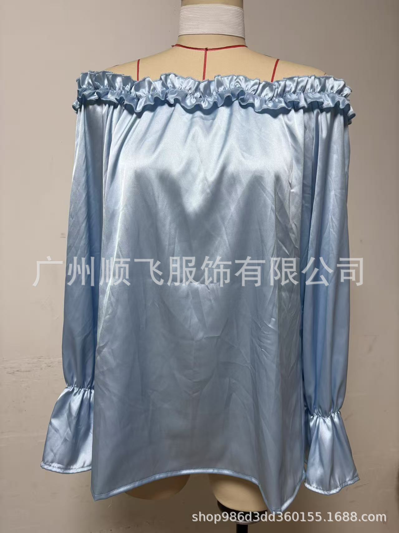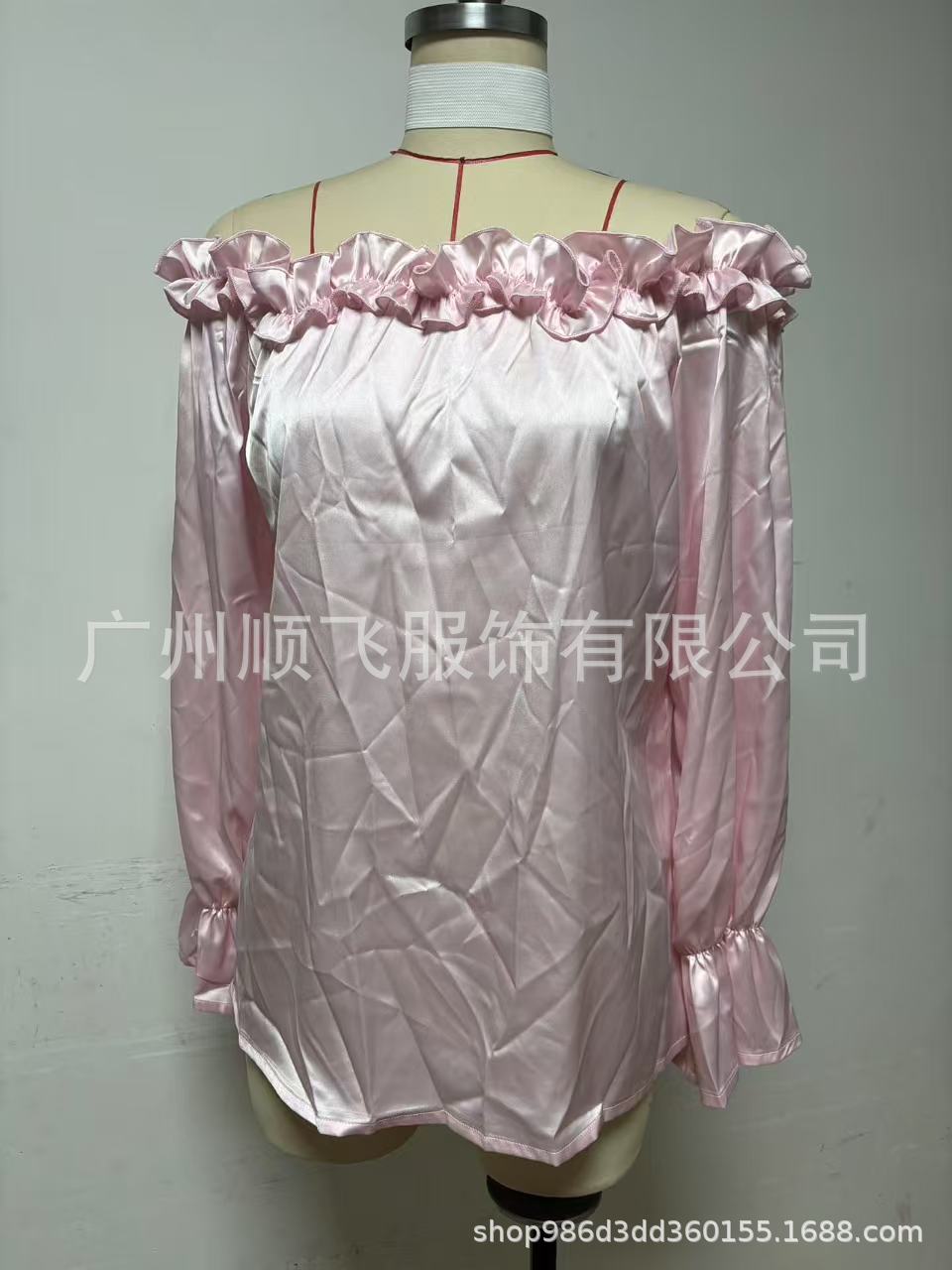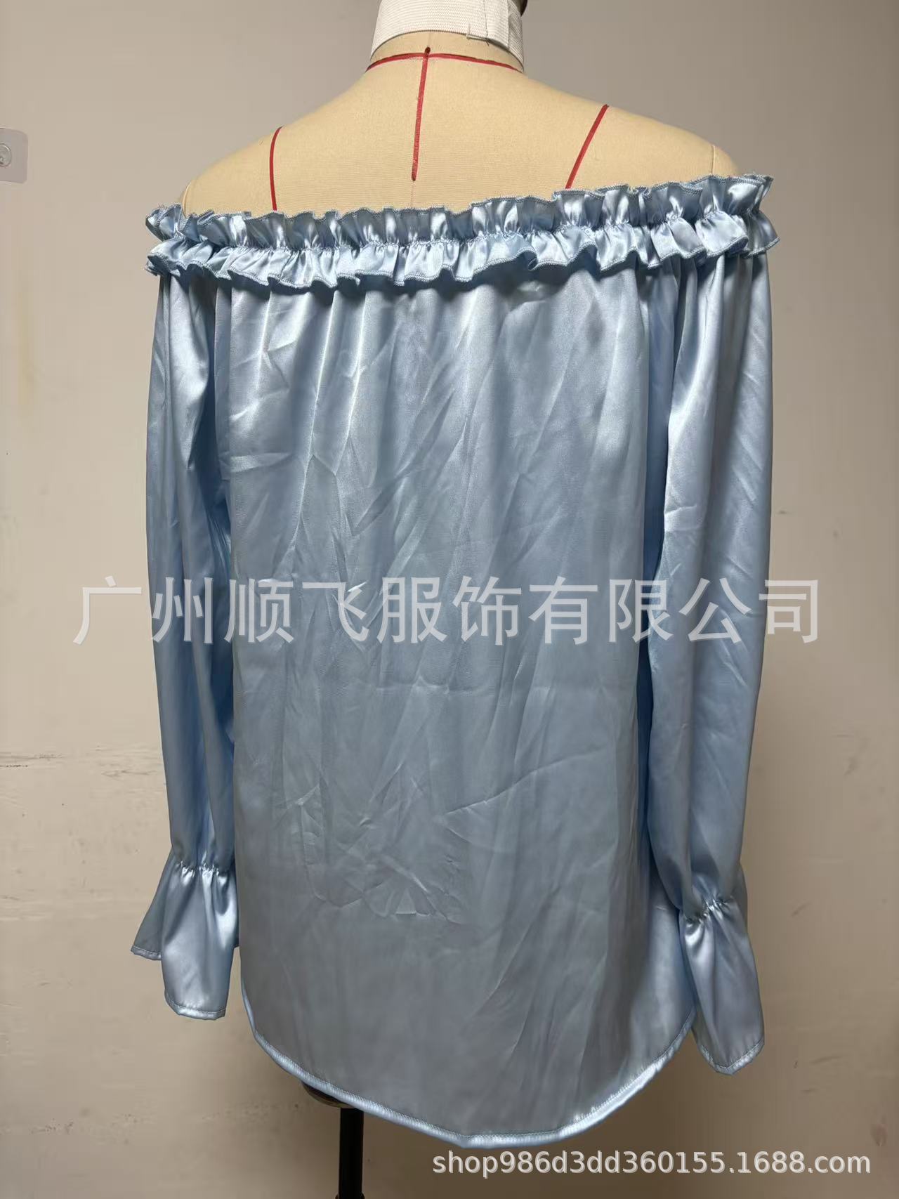 유럽과 미국의 국경 2024 이른 봄 뜨거운 판매 새로운 우아한 캐주얼 러플 오프 숄더 긴 소매 셔츠스토어 가기