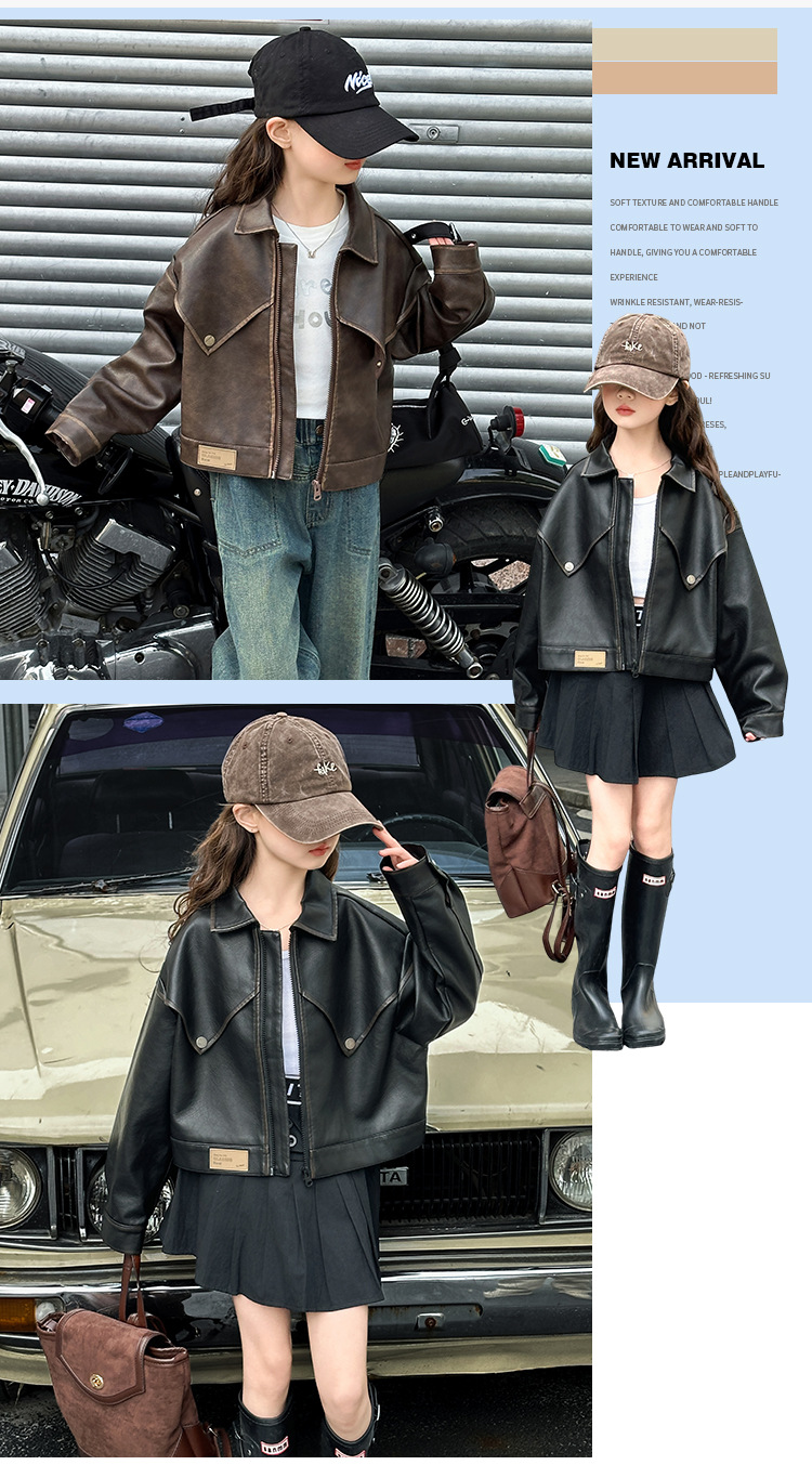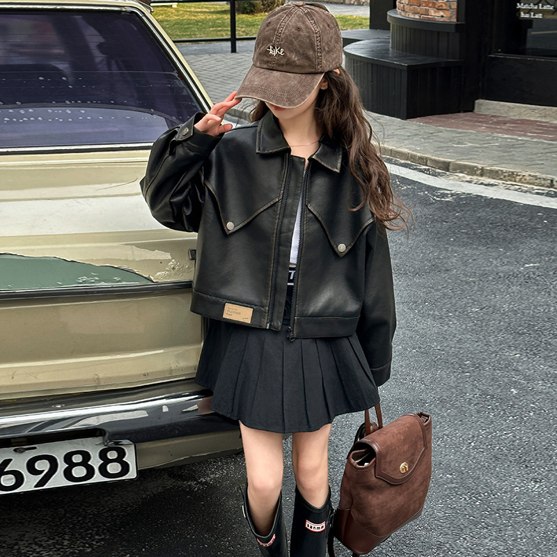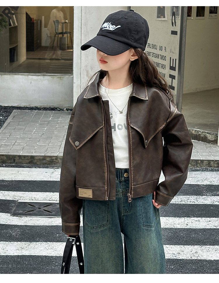 소녀 가죽 자켓 서양식 봄 2025 새로운 스타일 소녀 유행 프라이드 스트리트 어린이 한국 스타일 유행 쿨 자켓 탑스토어 가기