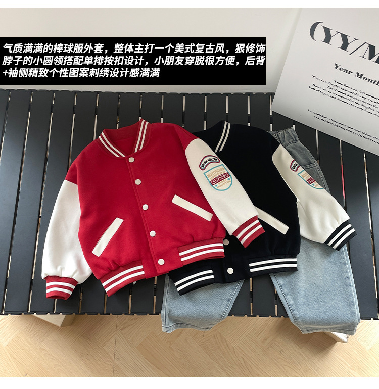 바람의 계곡 2025 봄 새 아동복 어린이 트렌디 쿨 아메리칸 레트로 야구 세트 소년의 봄과 가을 콘트라스트 코트