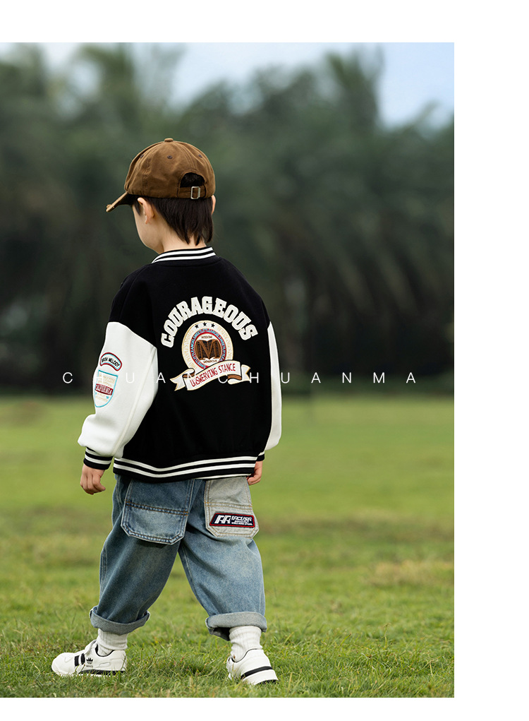 바람의 계곡 2025 봄 새 아동복 어린이 트렌디 쿨 아메리칸 레트로 야구 세트 소년의 봄과 가을 콘트라스트 코트스토어 가기