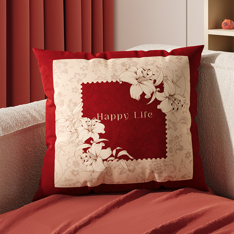 축제 새해 새해 소파 베개 코어 베개 웨딩 레드 웨딩 침실 거실 그물 빨간 신문 베개 도매