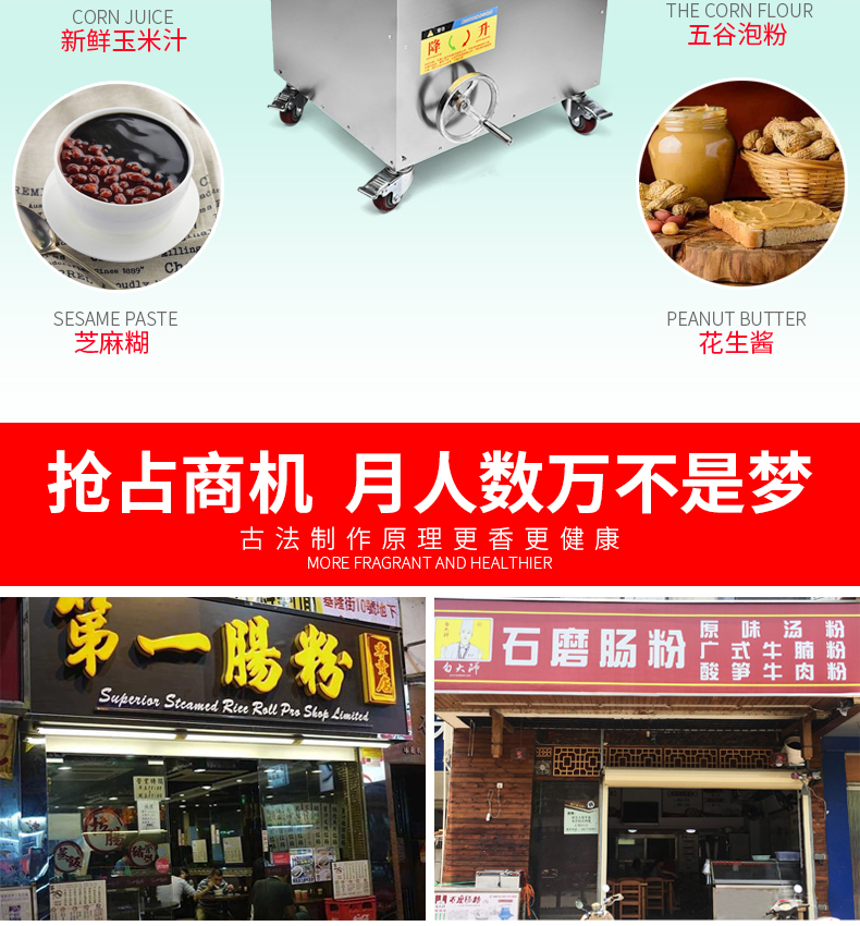 석재 공장, 전기 정제, 상업용 대규모 자동 대두유, 쌀 우유, 쌀가루, 콩 두부, 녹두스토어 가기