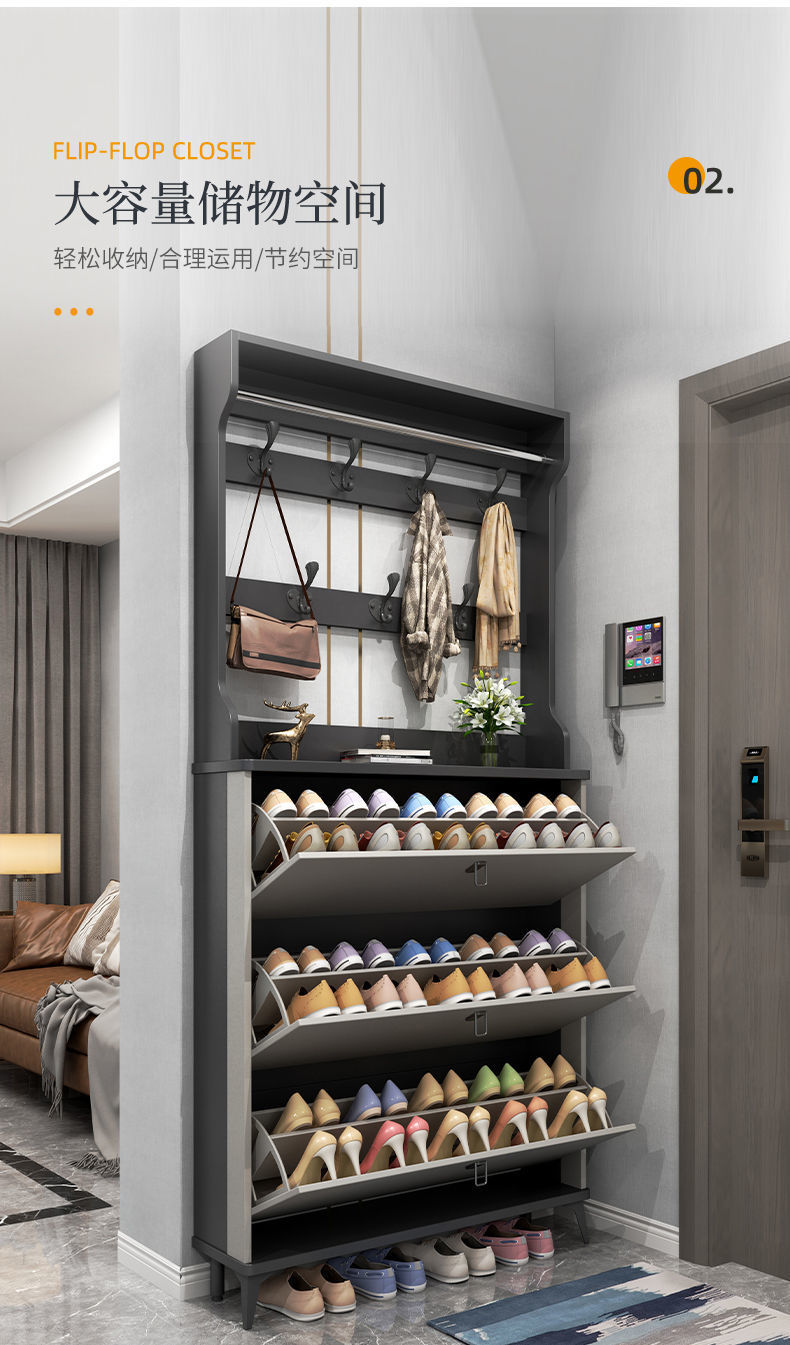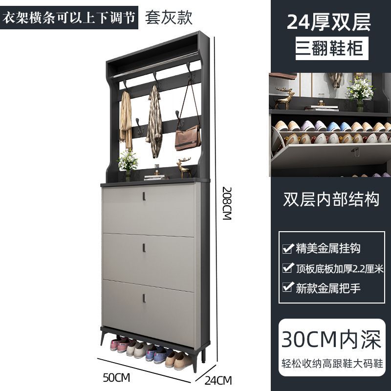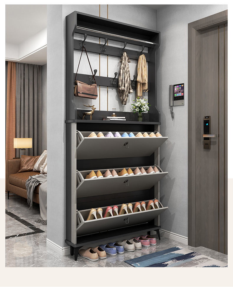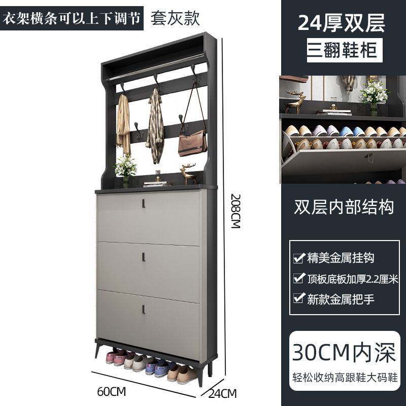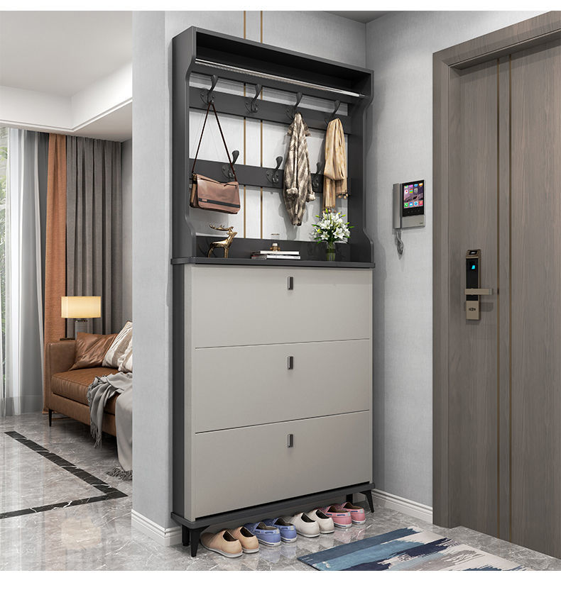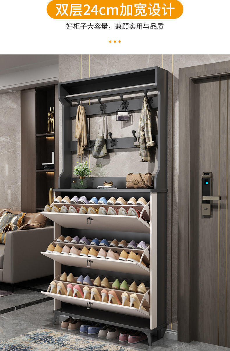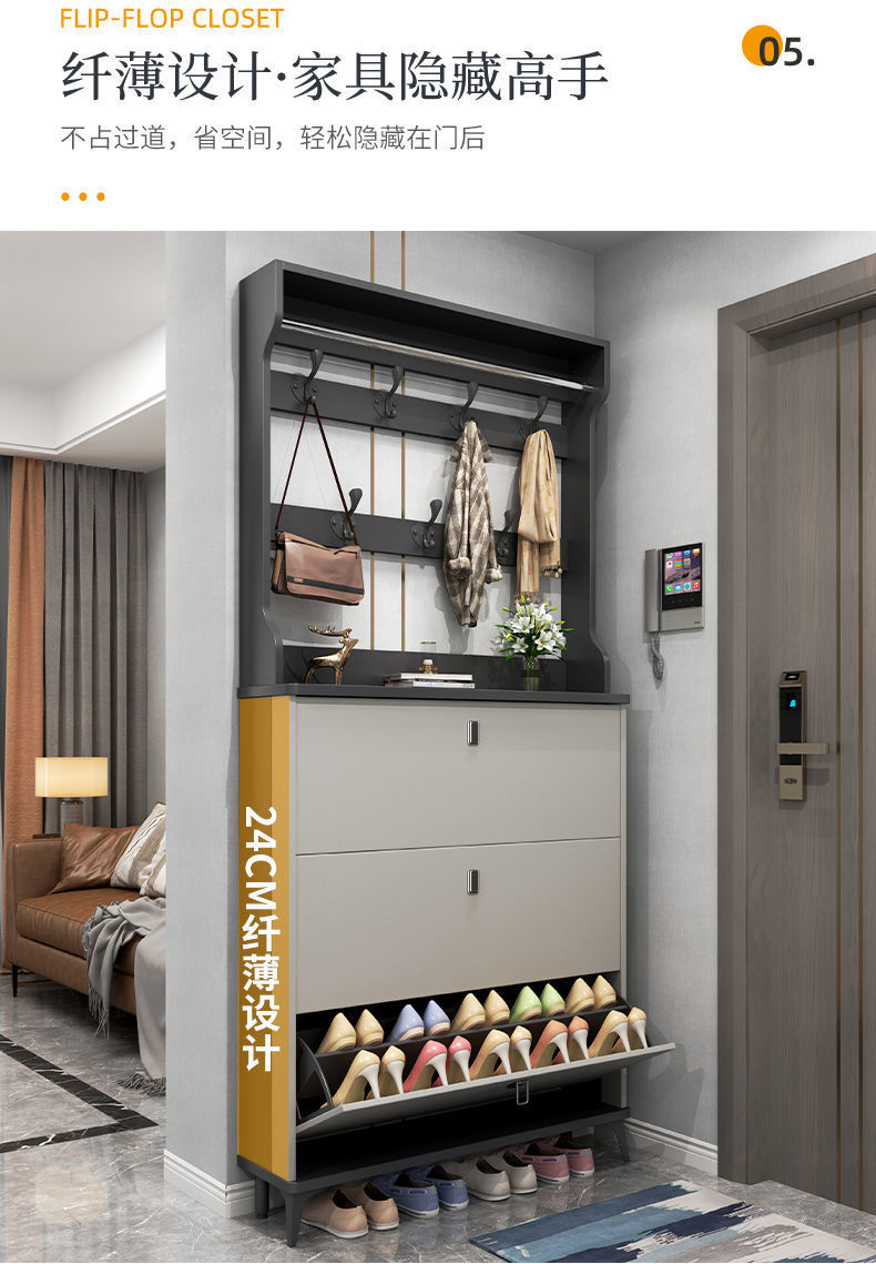 신발 캐비닛 초박형 현관 문 벽 기울기 신발 랙 타일 버킷 형 입구 캐비닛 다기능 다층 교수형 코트 랙 통합