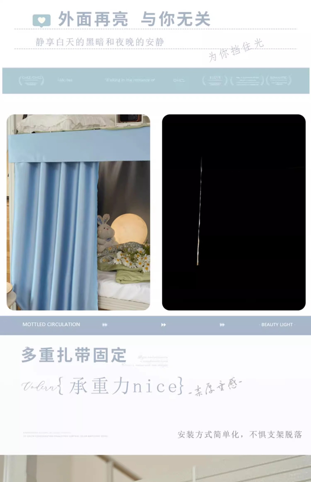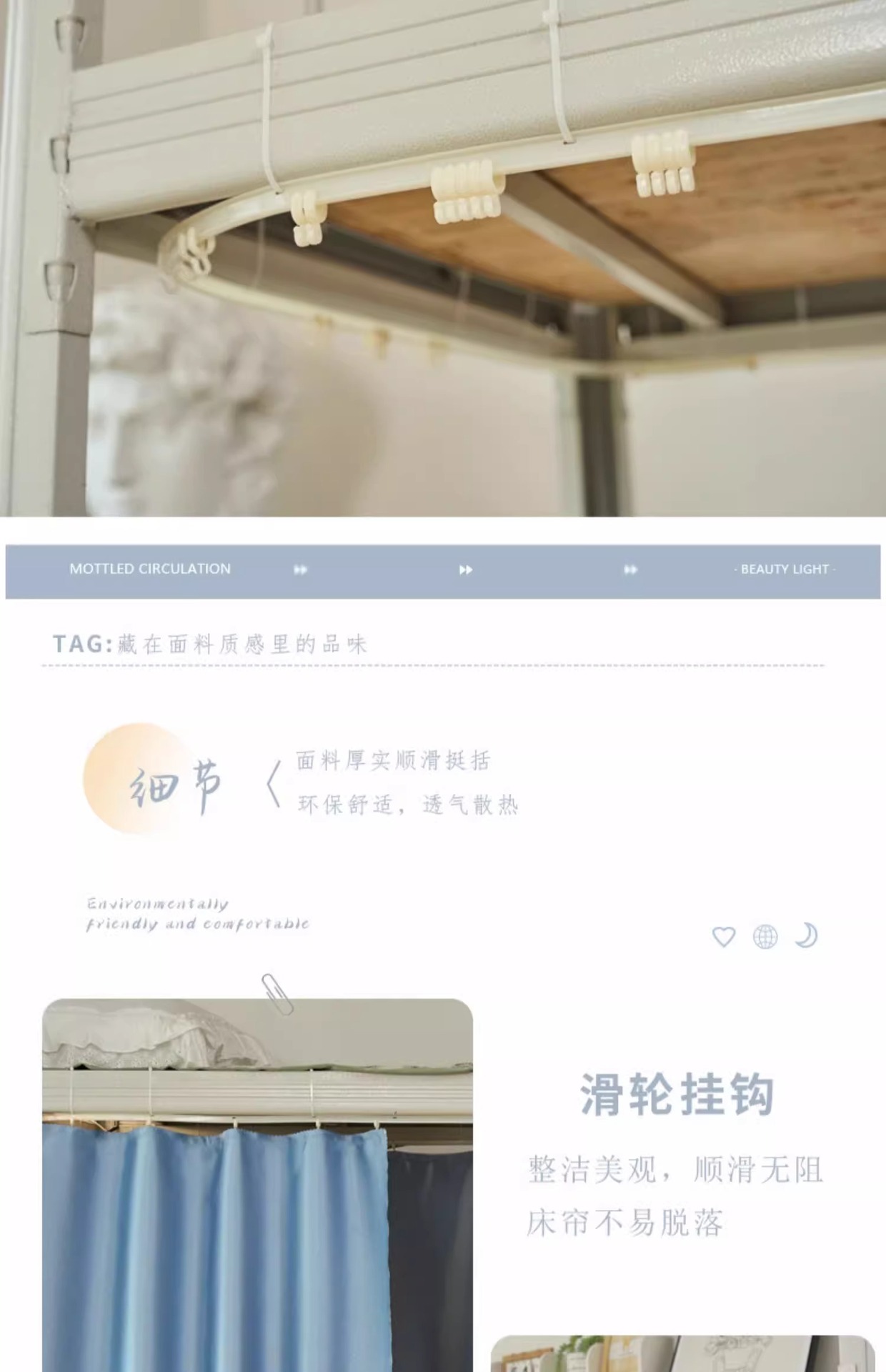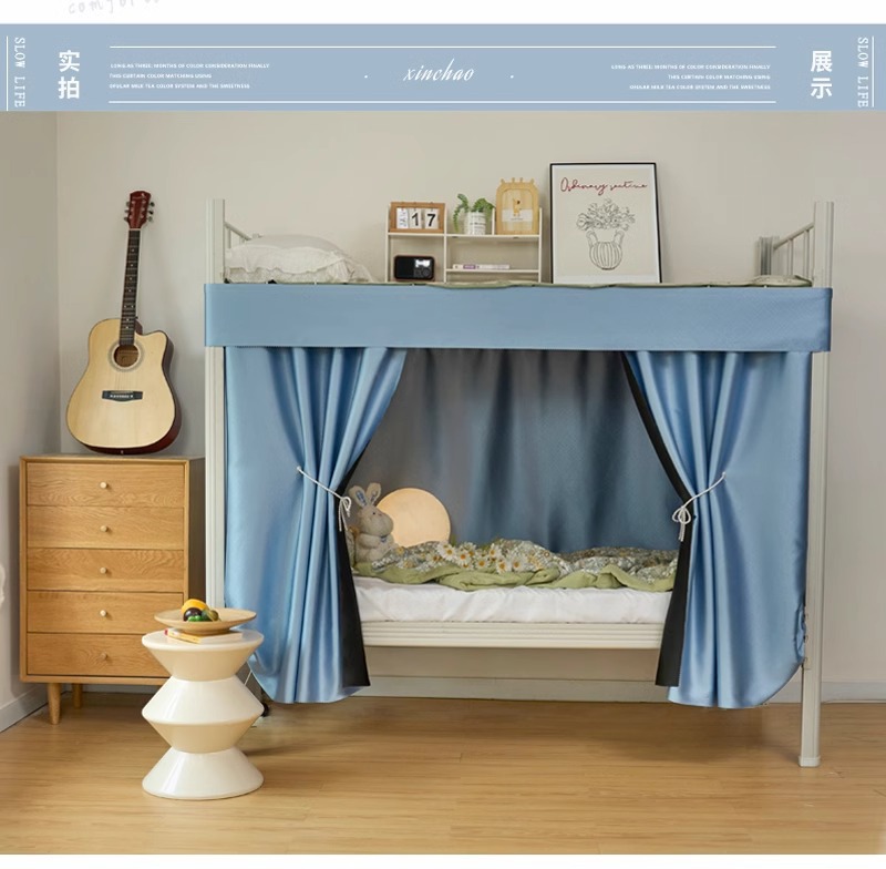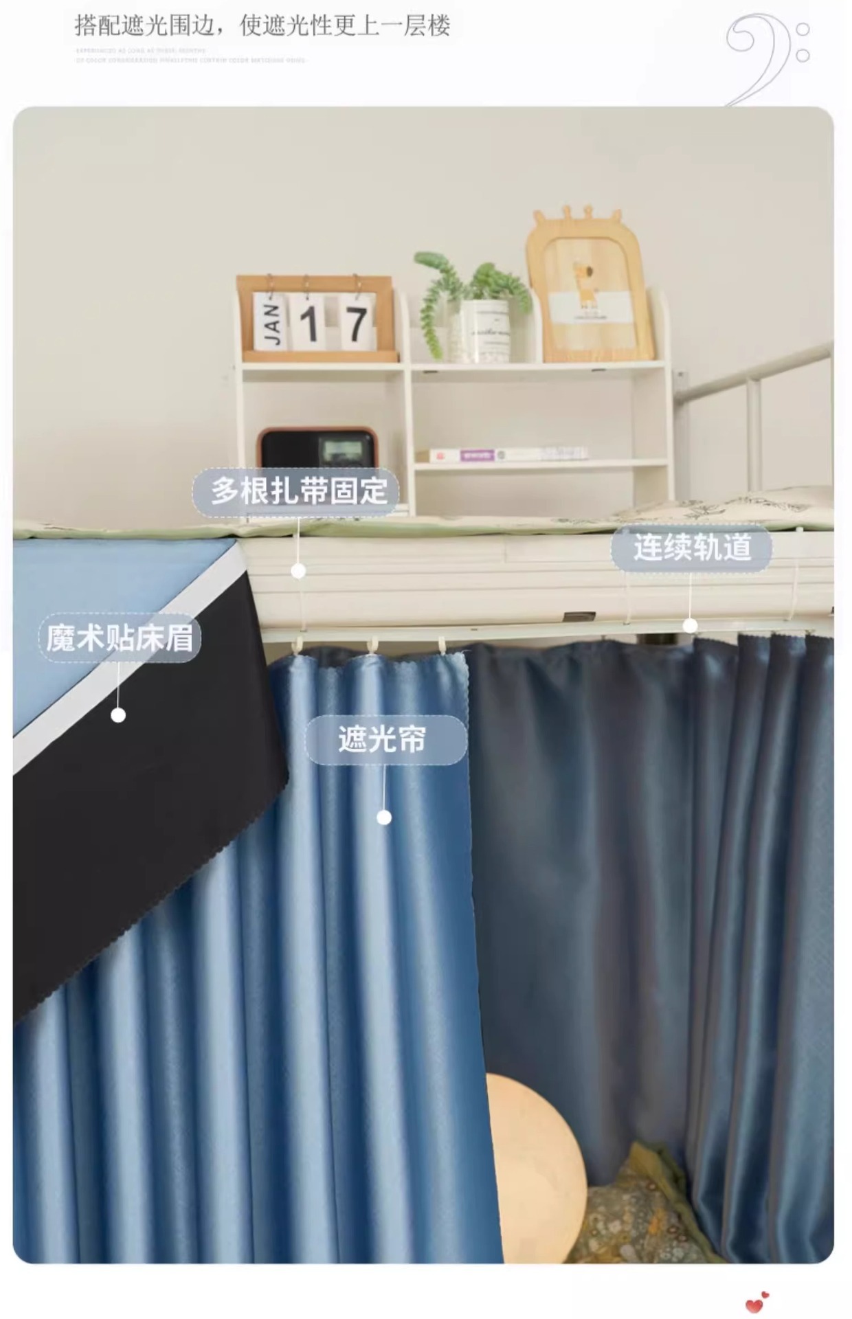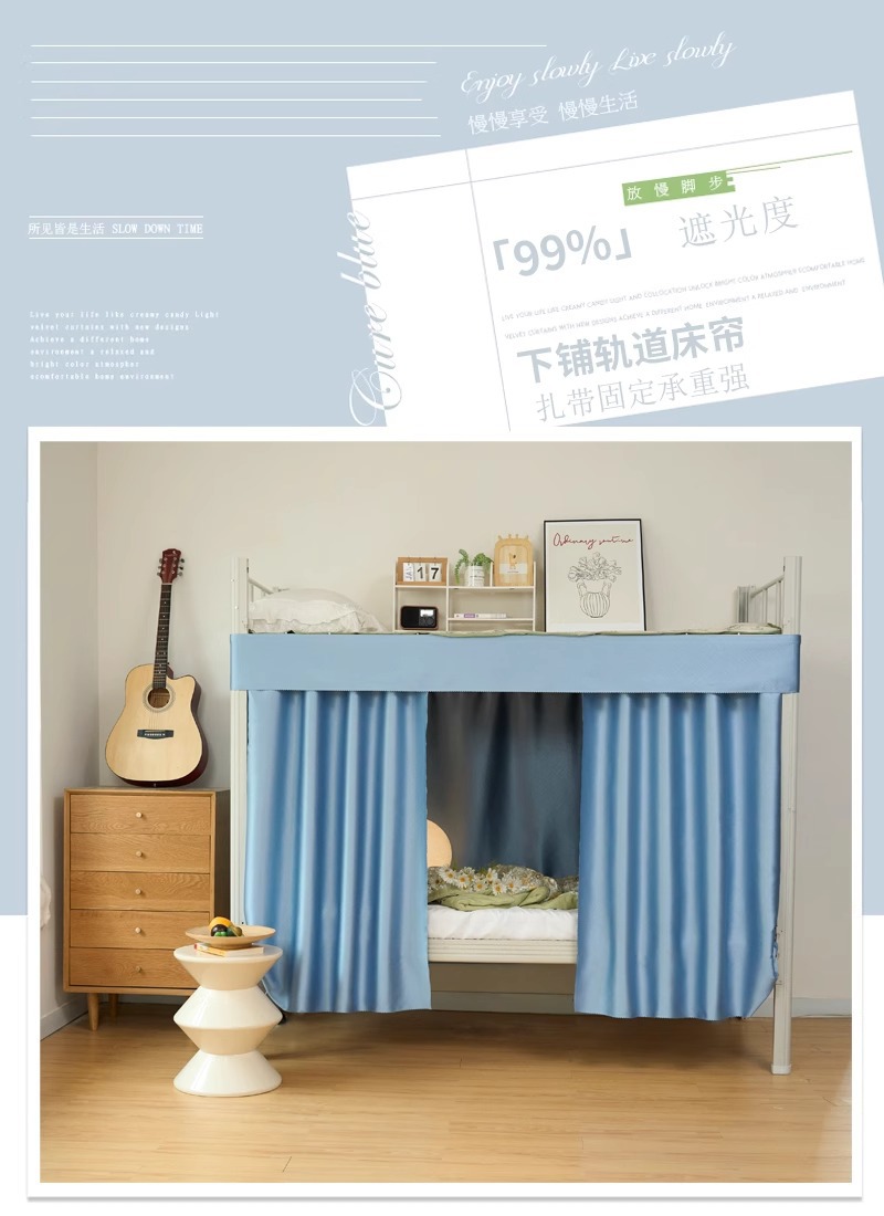 대학 기숙사 그늘진 침대 커튼 낮은 벤트 펀치없는 U 트랙 슬라이드 레일 베드 커버 천 커튼