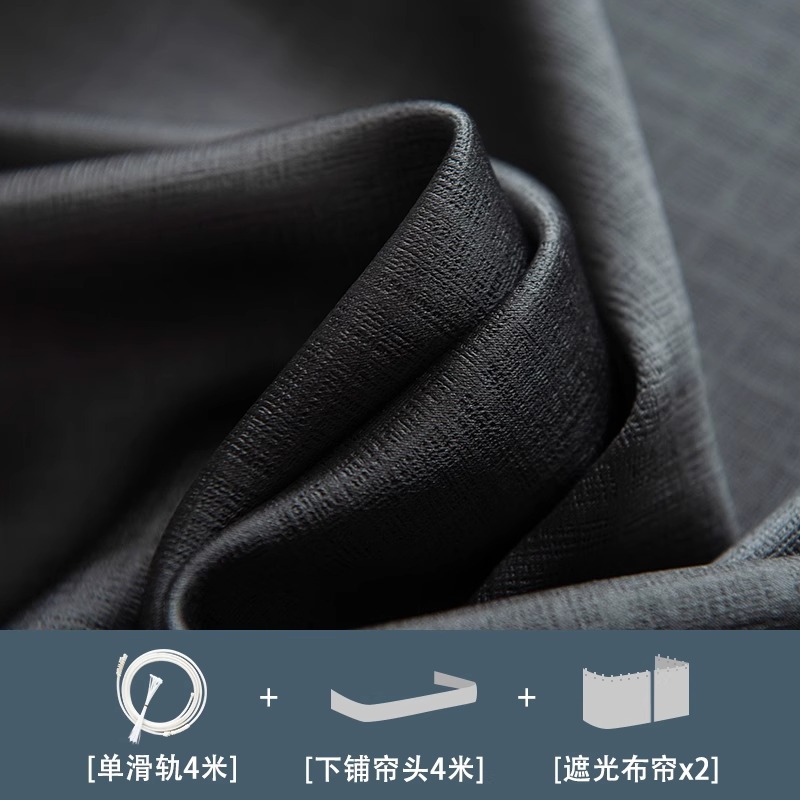 • 검정색과 회색 커튼 2개 + 하부 레일 4m + 방진 모기장 + 벨크로 커튼 헤드 4m