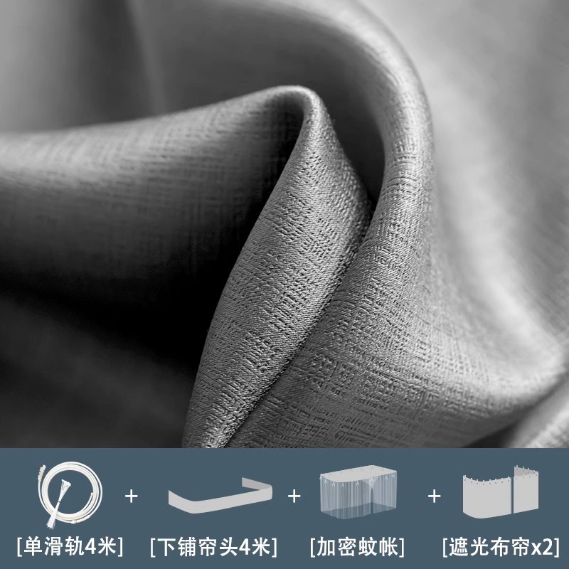 • 미디엄 그레이 2커튼 + 하부 레일 4m + 방진 모기장 + 벨크로 커튼 헤드 4m