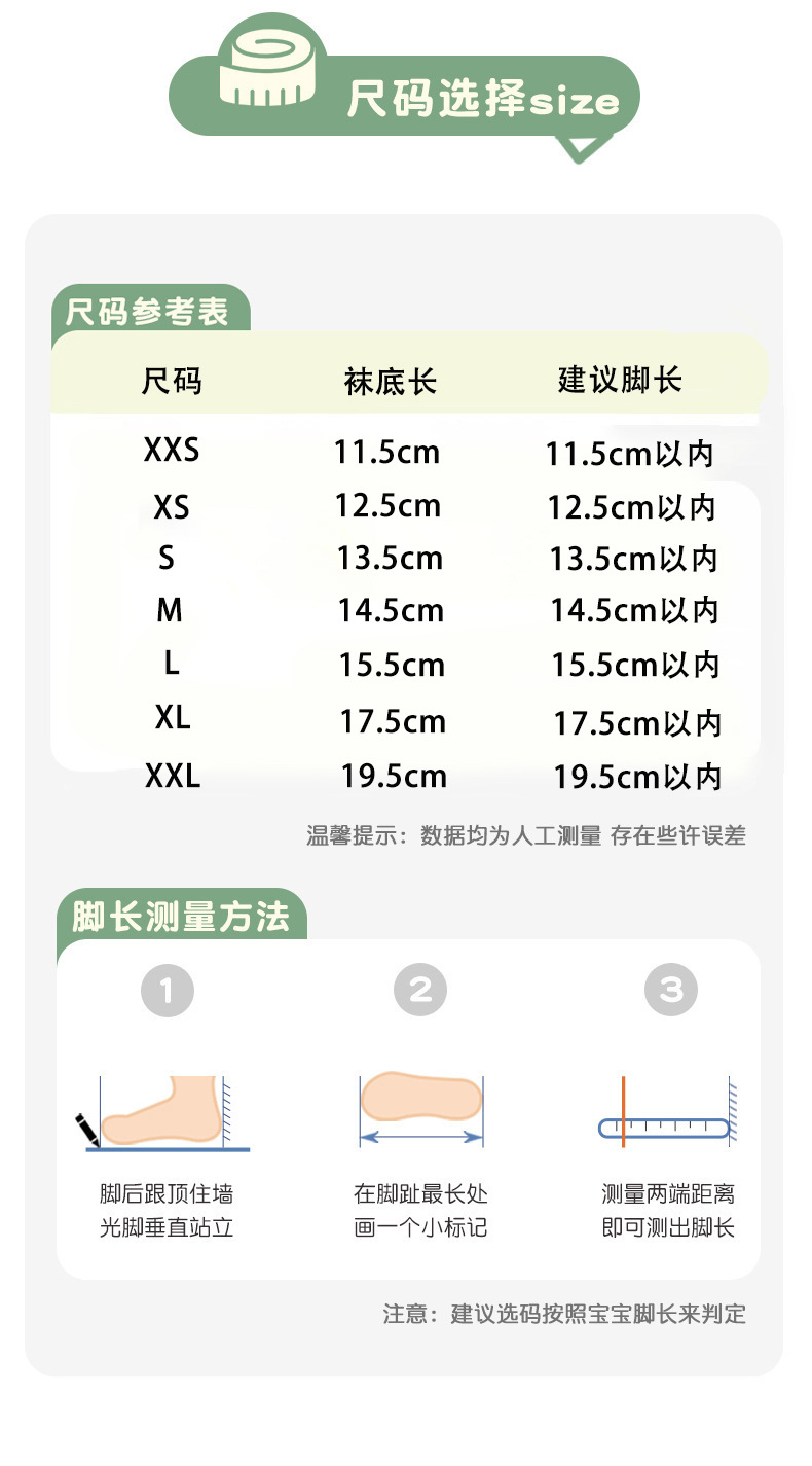 • XS는 12.5CM 이내의 발에 적합합니다.