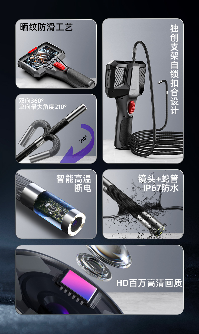 국경 간 인기 판매 360도 조향 산업용 내시경 6.2mm 스크린 자동차 엔진 검사 내시경