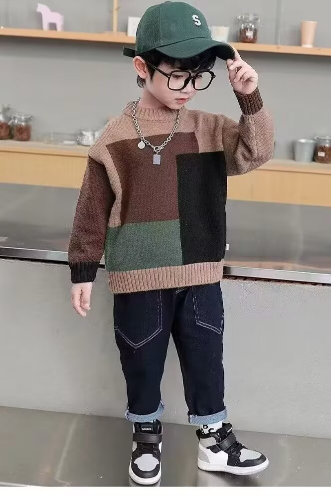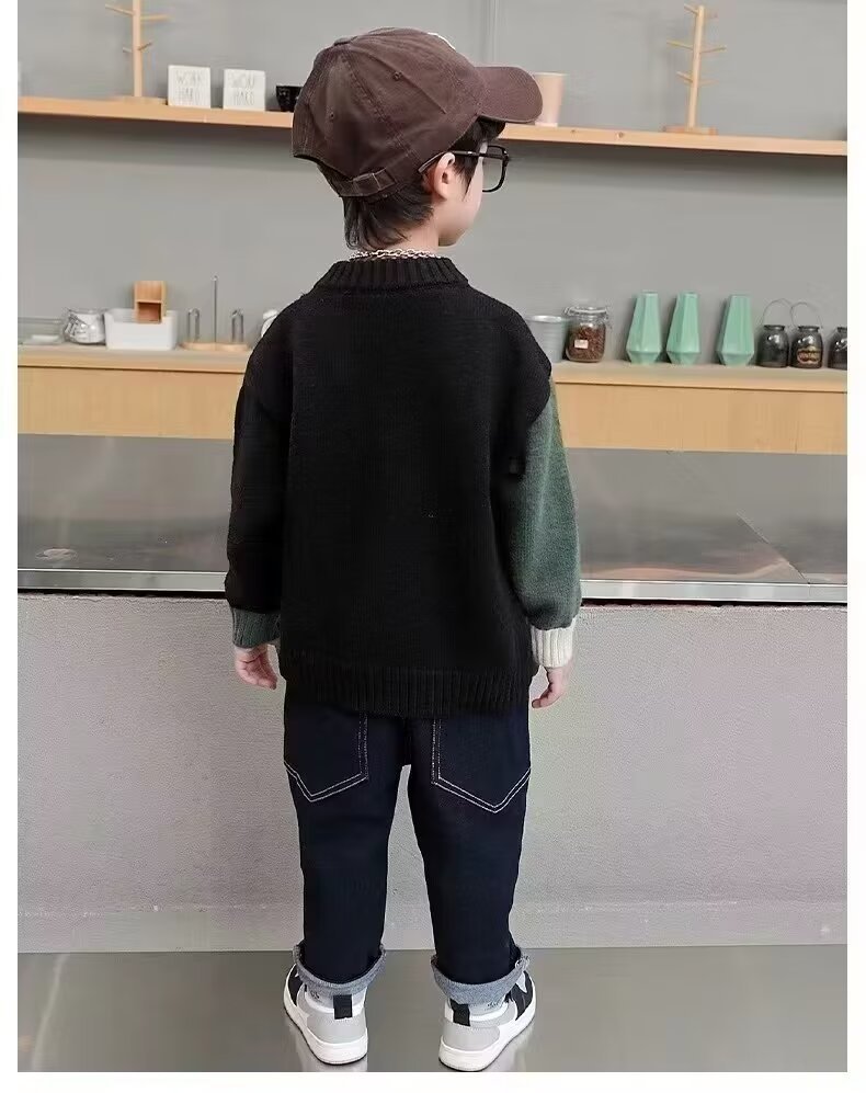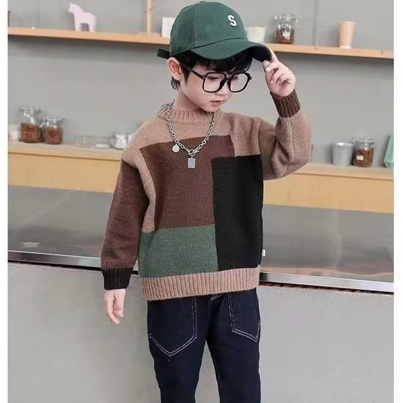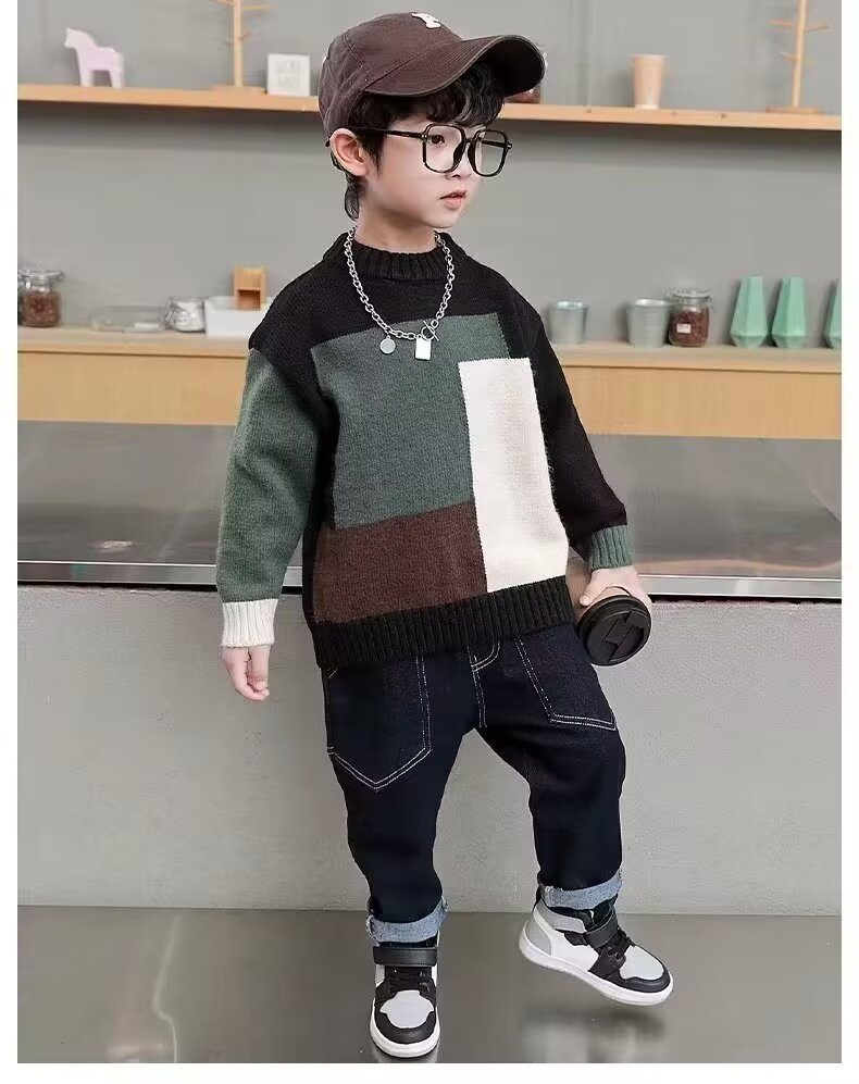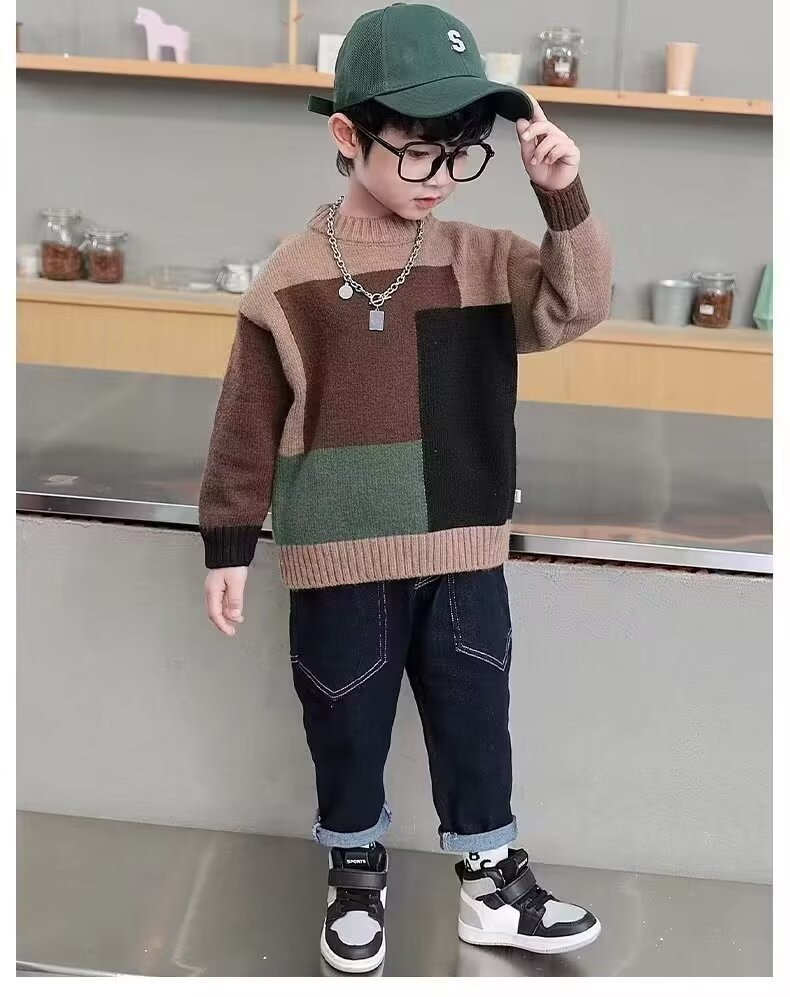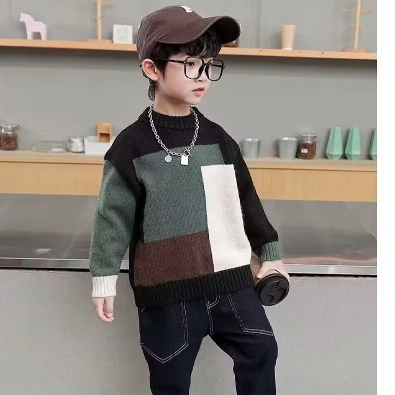 가을과 겨울 뉴 스웨터 보이즈 올 매치 외국식 콘트라스트 터틀넥 니트 셔츠 대형 아동복 남성용 외국식 베이스 셔츠스토어 가기
