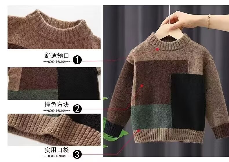 가을과 겨울 뉴 스웨터 보이즈 올 매치 외국식 콘트라스트 터틀넥 니트 셔츠 대형 아동복 남성용 외국식 베이스 셔츠