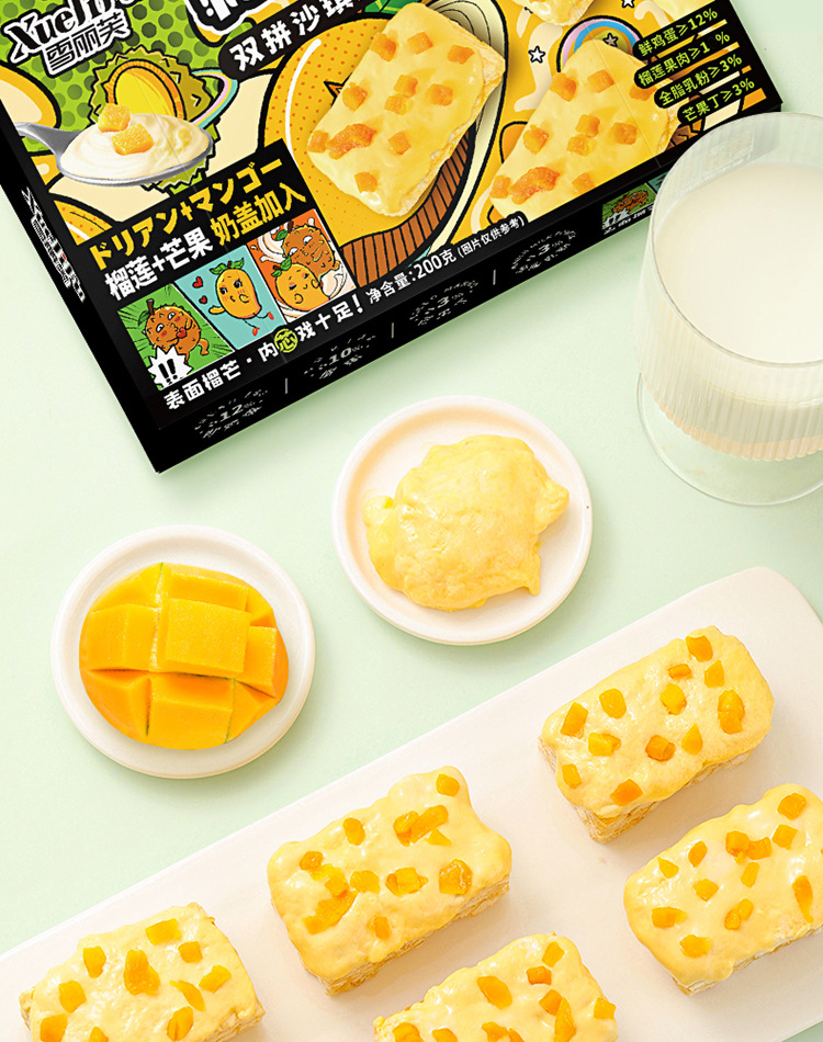 Durian mans 더블 스펠 우유 커버 Shaqima durian 망고 그물 붉은 폭발 스낵 페이스트리 하트스토어 가기