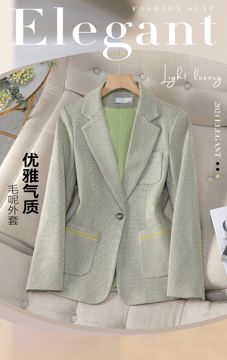 국경 간 녹색 세트 재킷 가을과 겨울 새로운 여신 팬 한국 통근 캐주얼 우아한 모직