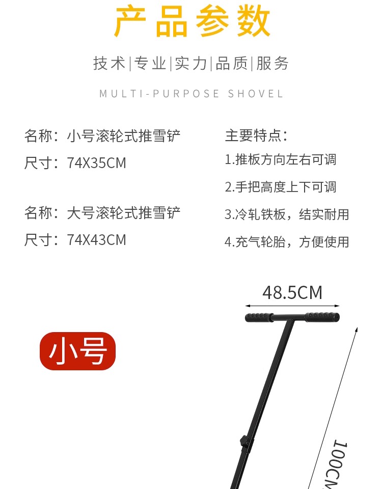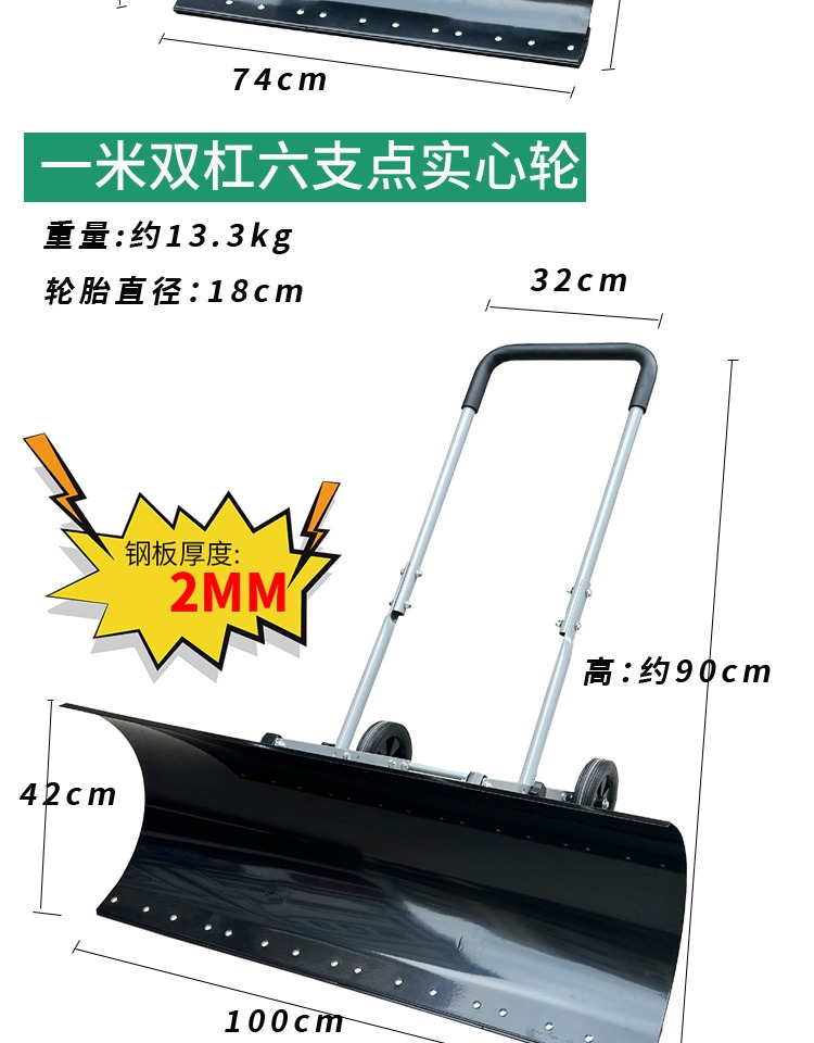 • 새로운 1m 평행봉 6pots 솔리드 휠 푸시 스노우 셔블