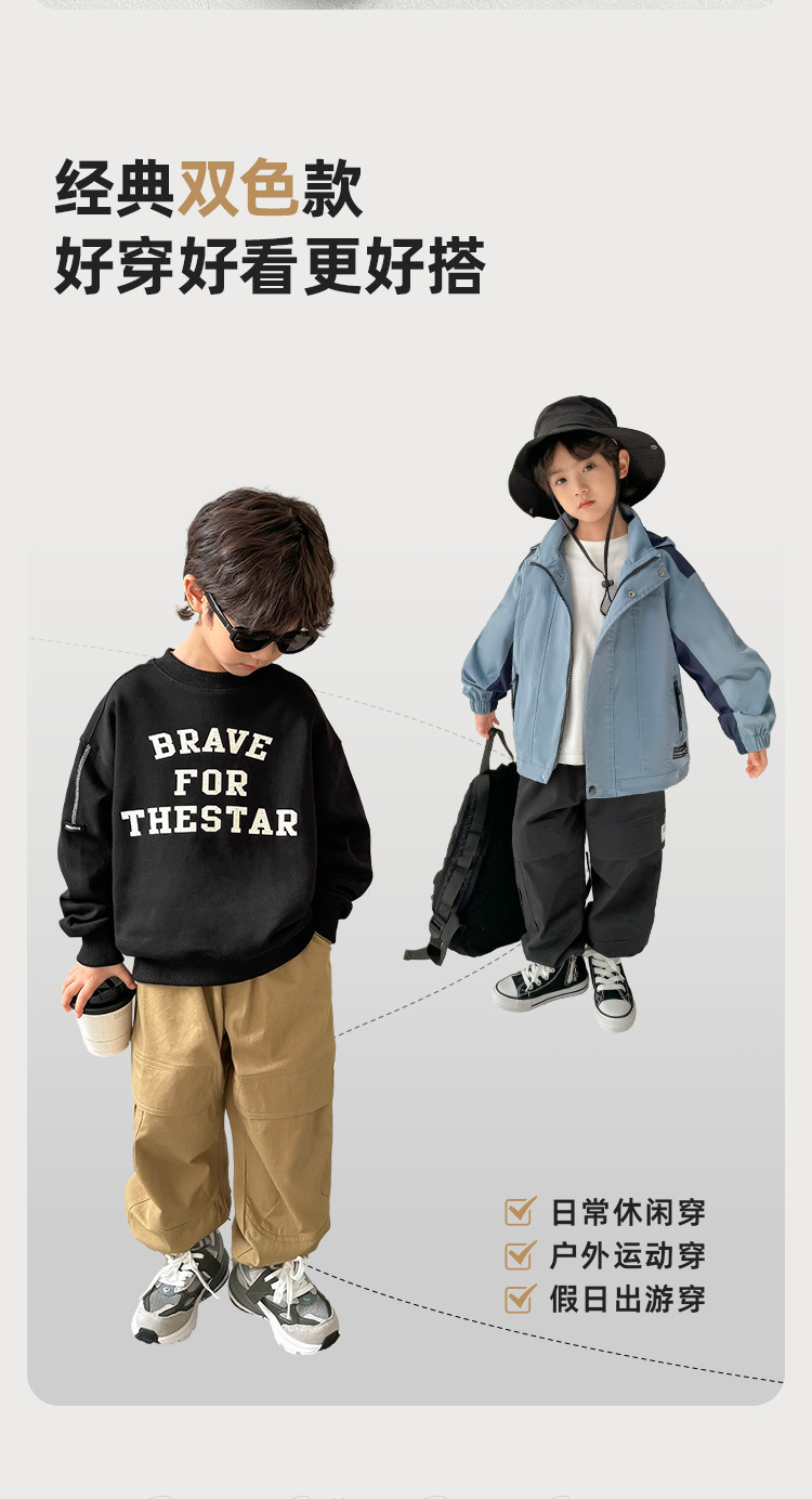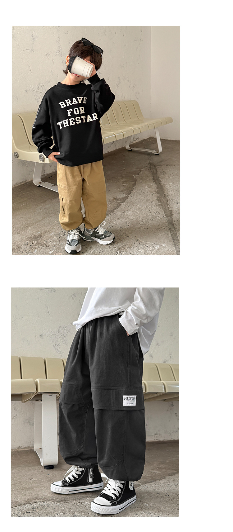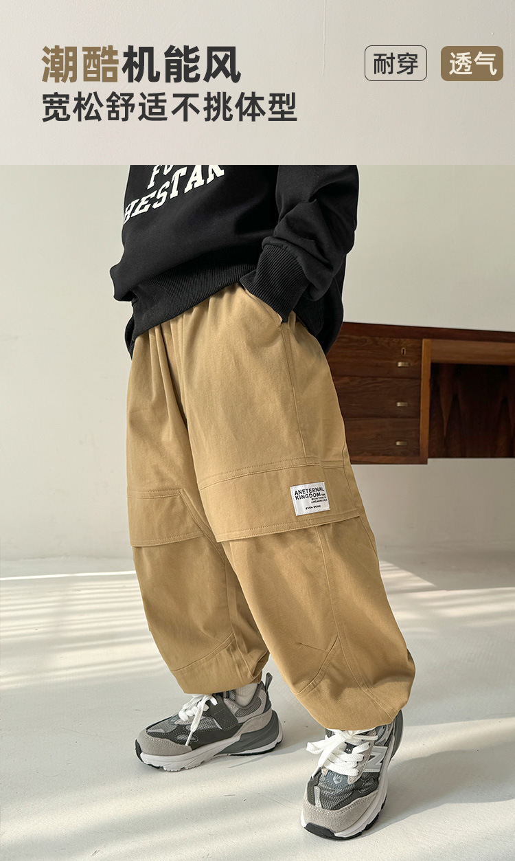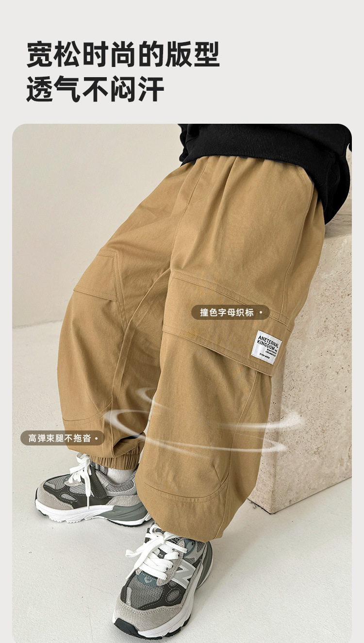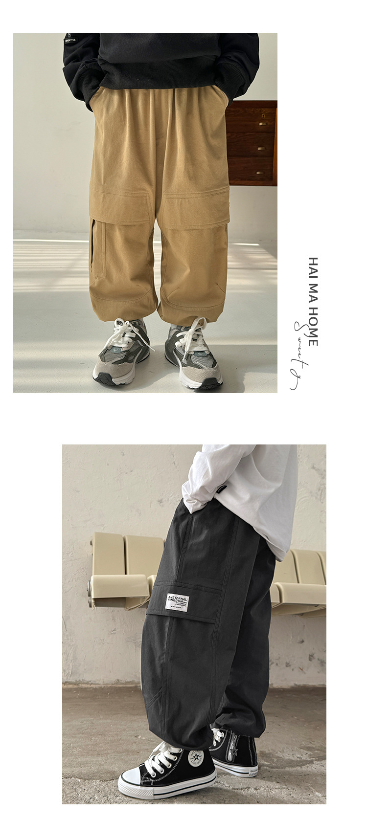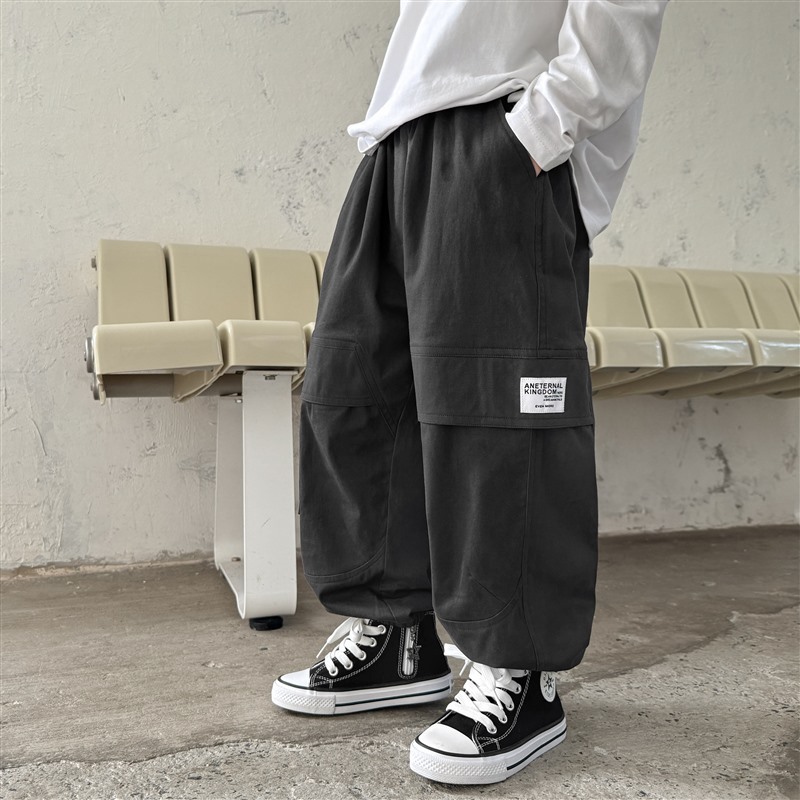 Haima의 소년 작업복 아동 바지 가을 2025 새로운 중대형 아동 캐주얼 바지 가을 순면 바지스토어 가기