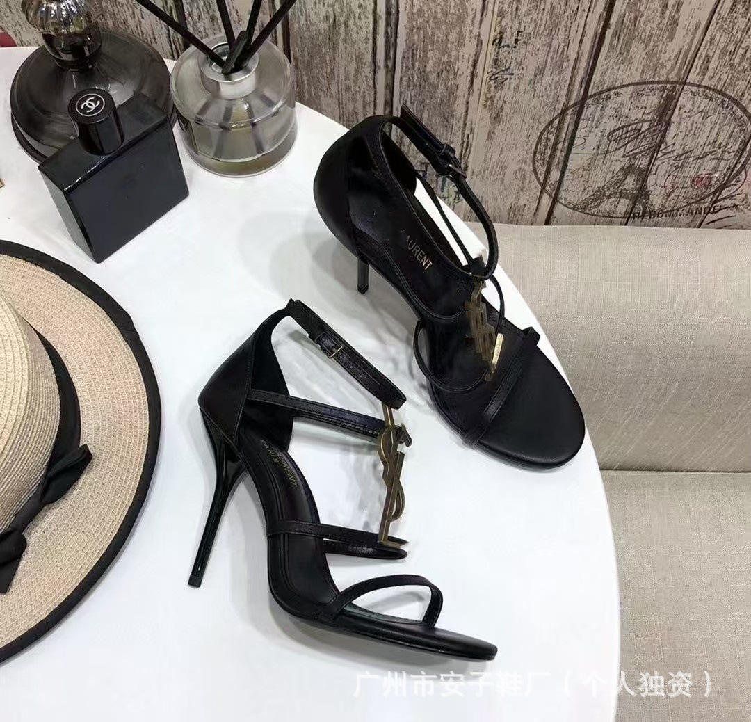 YS 동일 스타일 여름 인터넷 연예인 우아한 섹시 스틸레토 레드 하이힐 다목적 오픈 발가락 정품 가죽 여성용 샌들