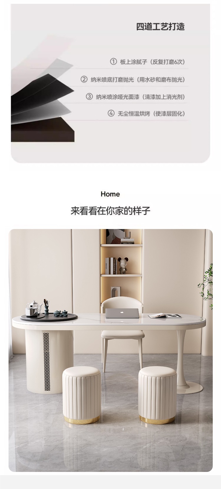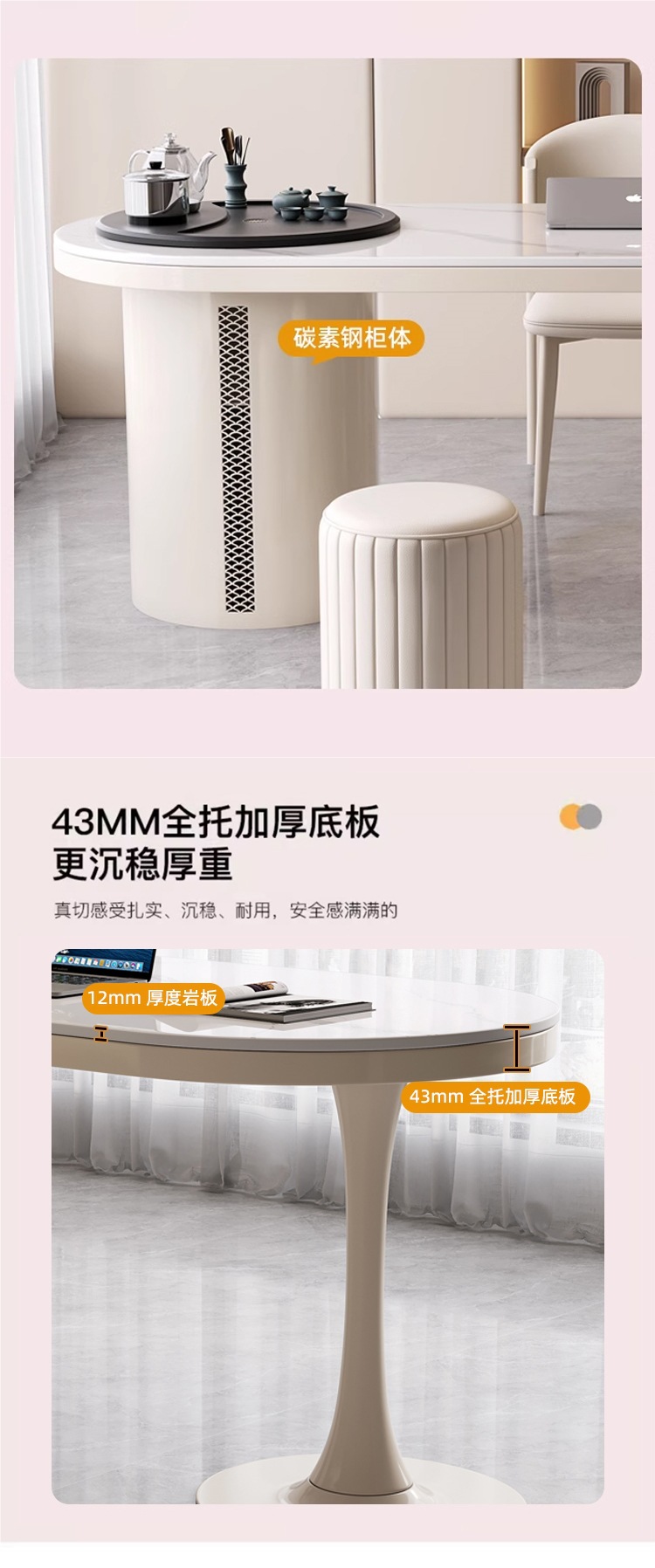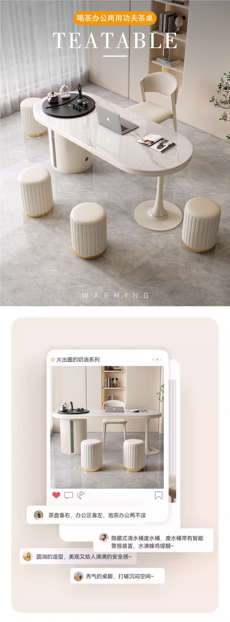 현대 간단한 락 보드 차 테이블과 의자 조합 크림 스타일 차 테이블 사무실 작은 아파트 차 테이블을위한 가벼운 고급 커피 테이블 차 테이블스토어 가기