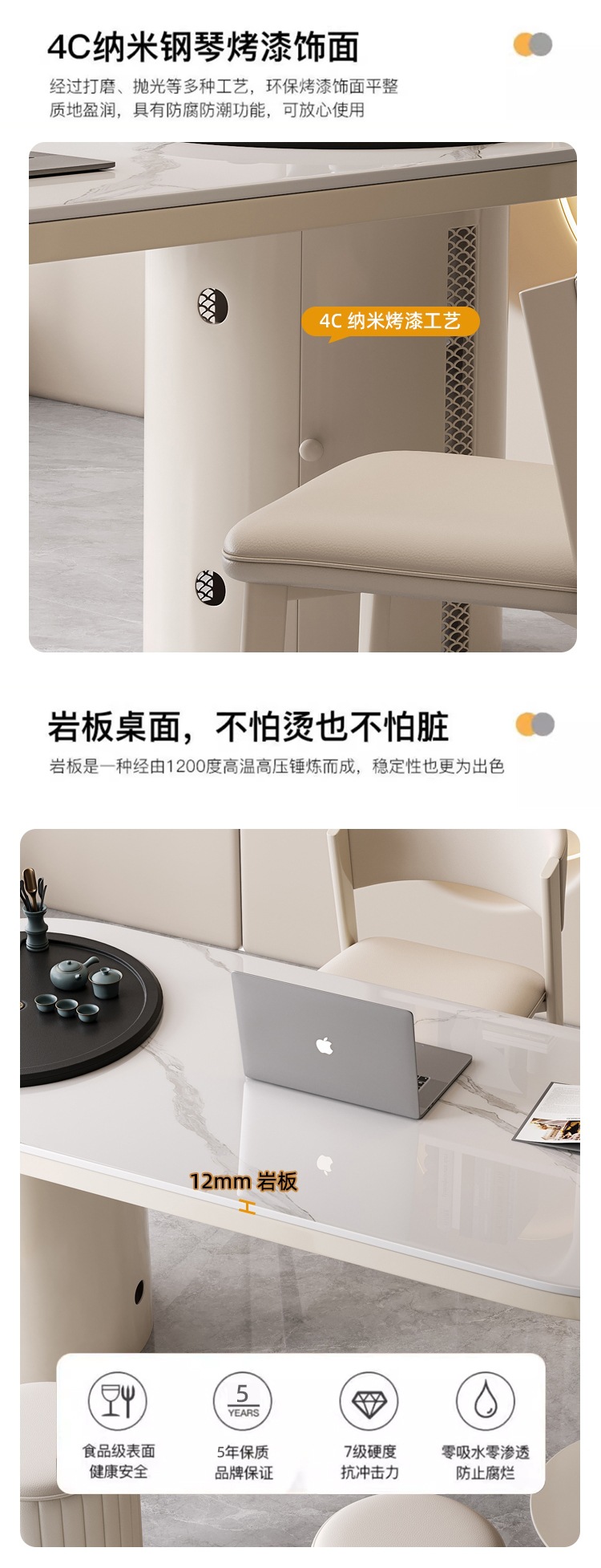 현대 간단한 락 보드 차 테이블과 의자 조합 크림 스타일 차 테이블 사무실 작은 아파트 차 테이블을위한 가벼운 고급 커피 테이블 차 테이블