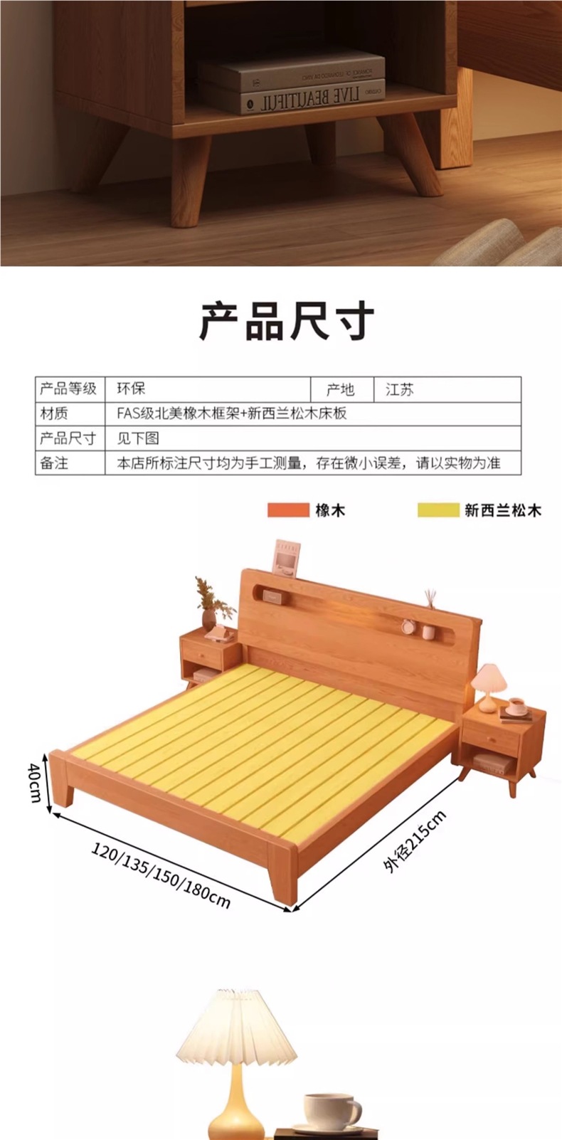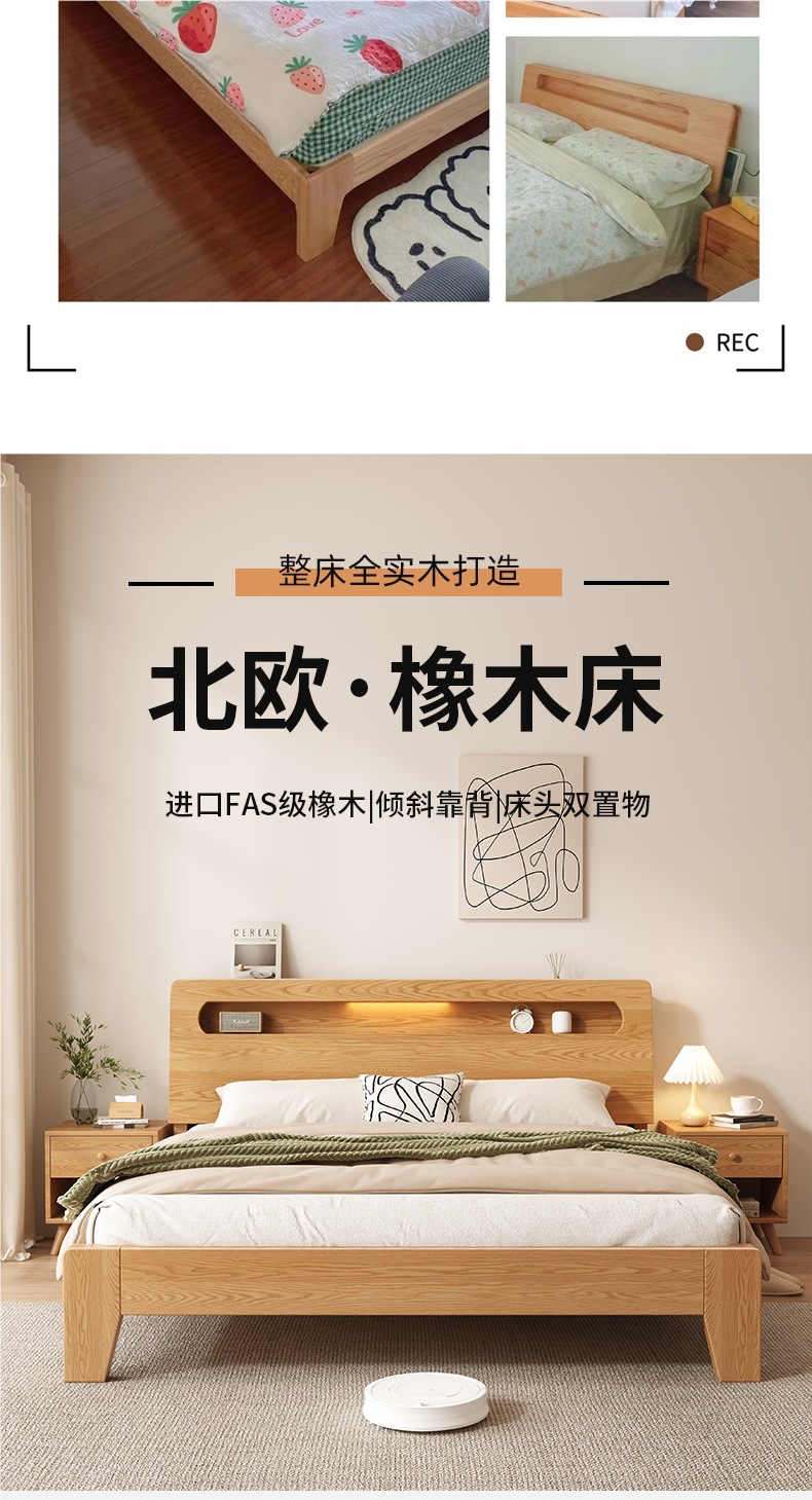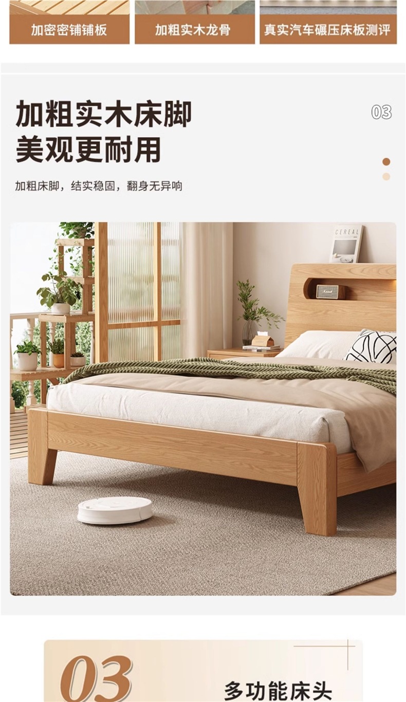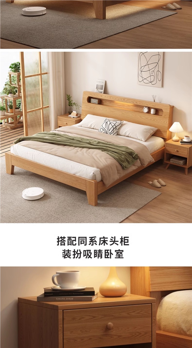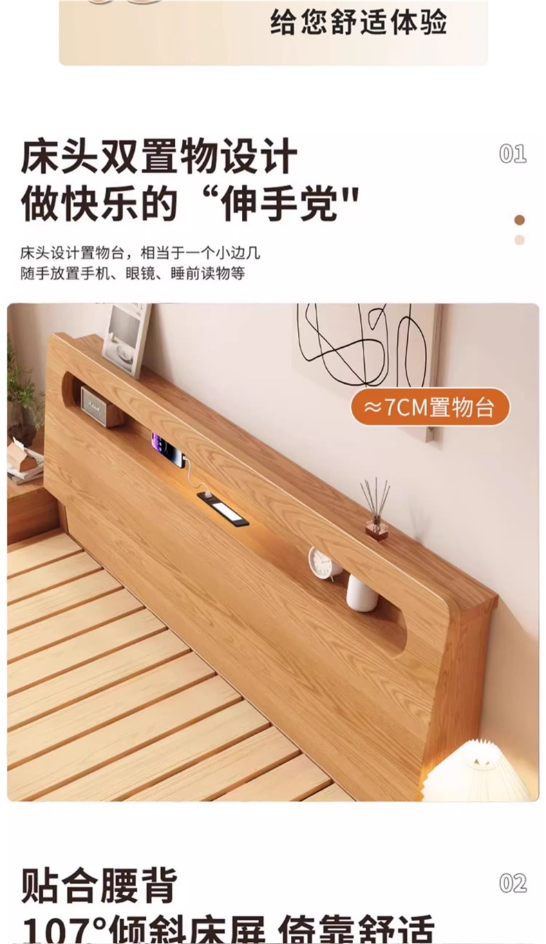• 오크 침대 + 5cm 코코넛 야자 매트리스 + 침대 옆 탁자 * 1 [위층 패키지]