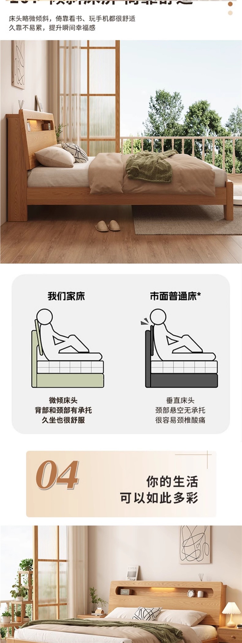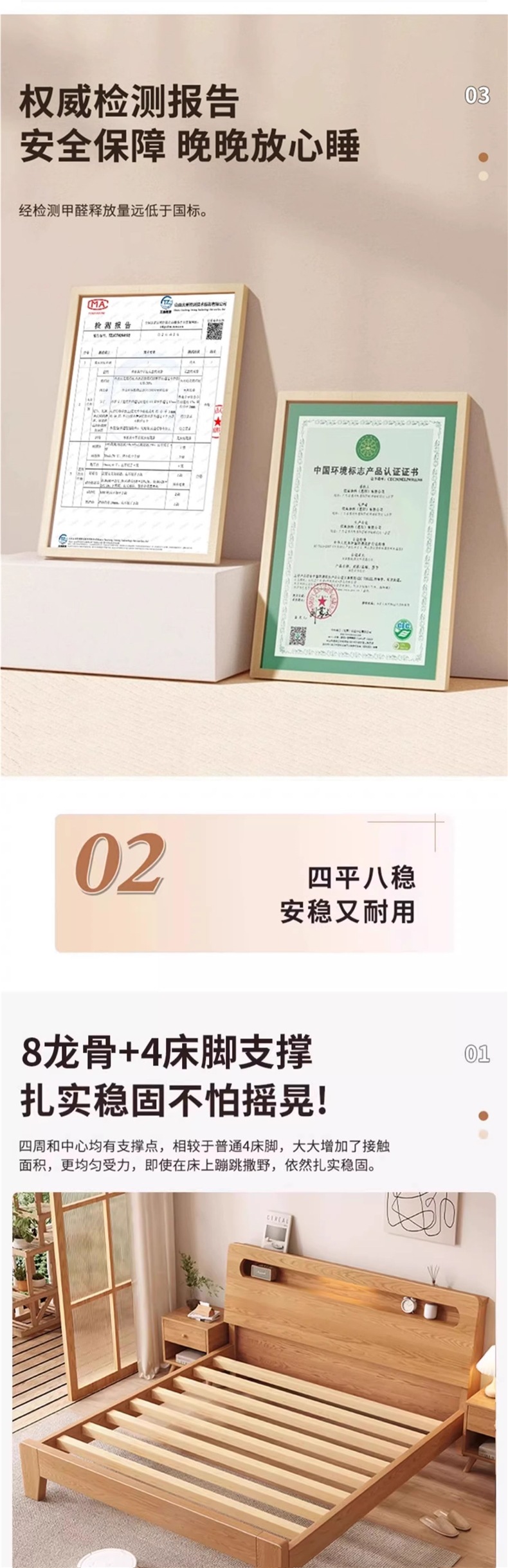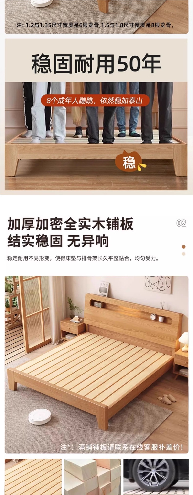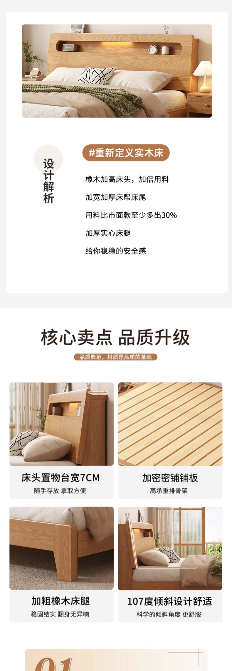 • 오크 침대 + 5cm 코코넛 야자 매트리스 + 침대 옆 탁자 * 1 [위층 패키지]