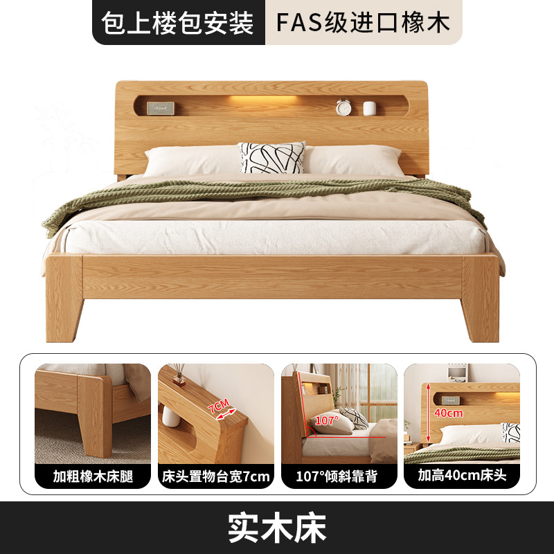 침대 단단한 나무 침대 간단한 현대 1.8 m 더블 침대 침실 1.5 m 오크 저장 룸 싱글 침대 프레임스토어 가기