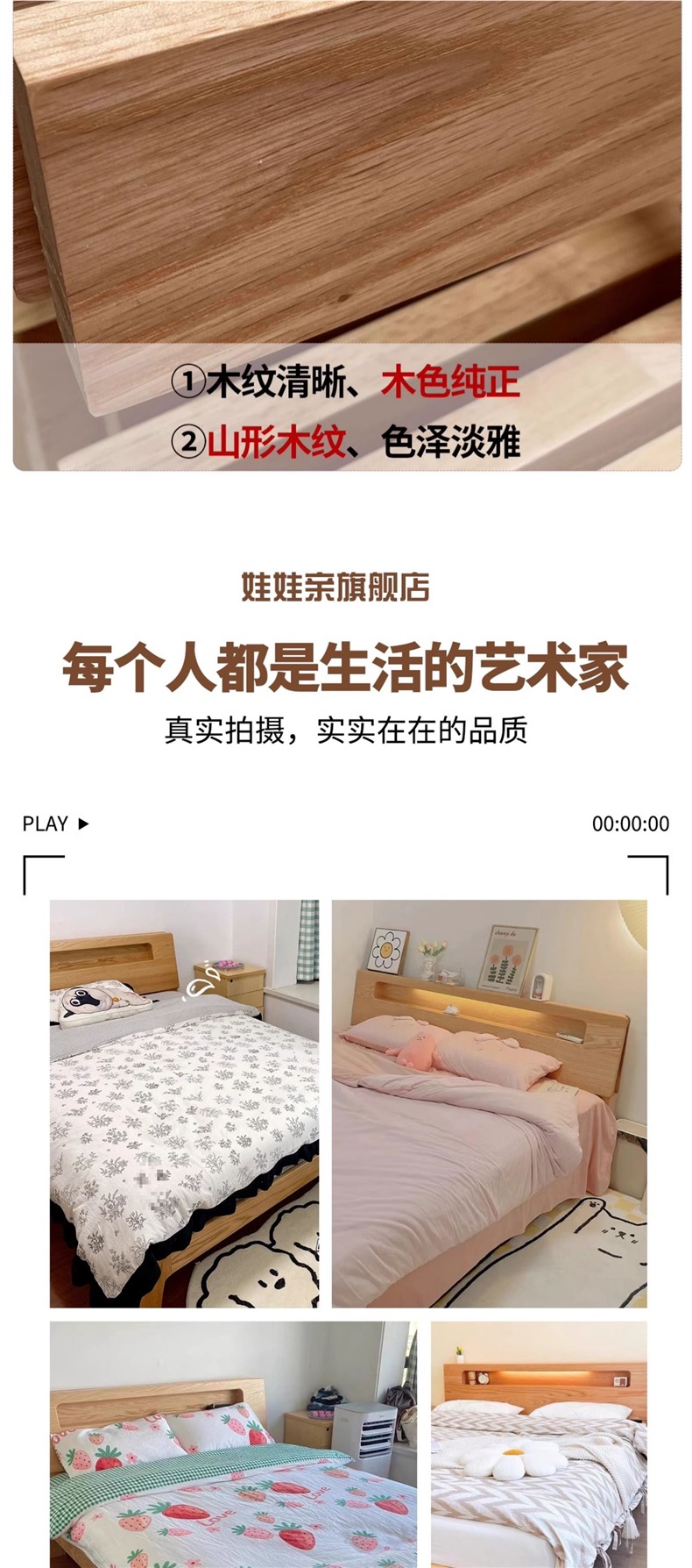 • 오크 침대 + 10cm 코코넛 야자 매트리스 + 침대 옆 탁자 * 1 [위층 패키지 + 설치]