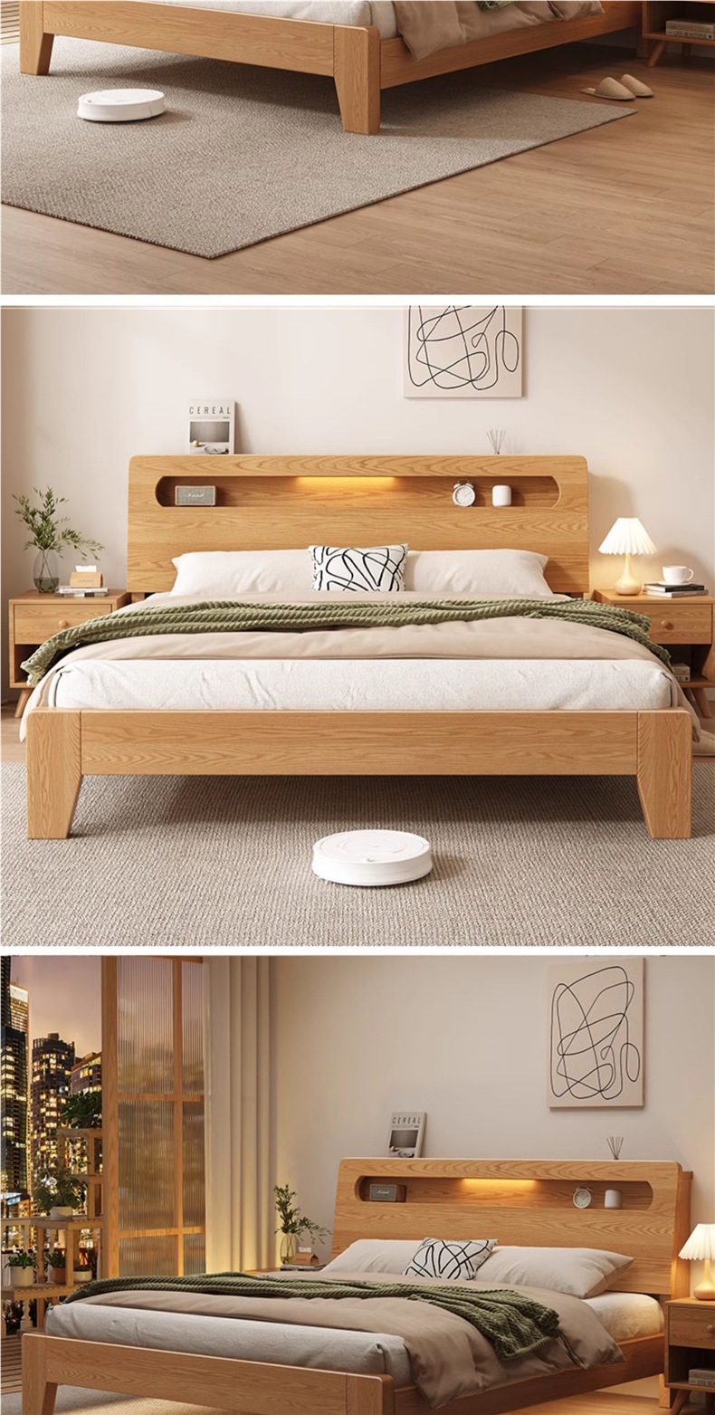 • 오크 침대 + 20cm 스프링 매트리스 + 침대협탁*2 [위층 패키지 + 설치]