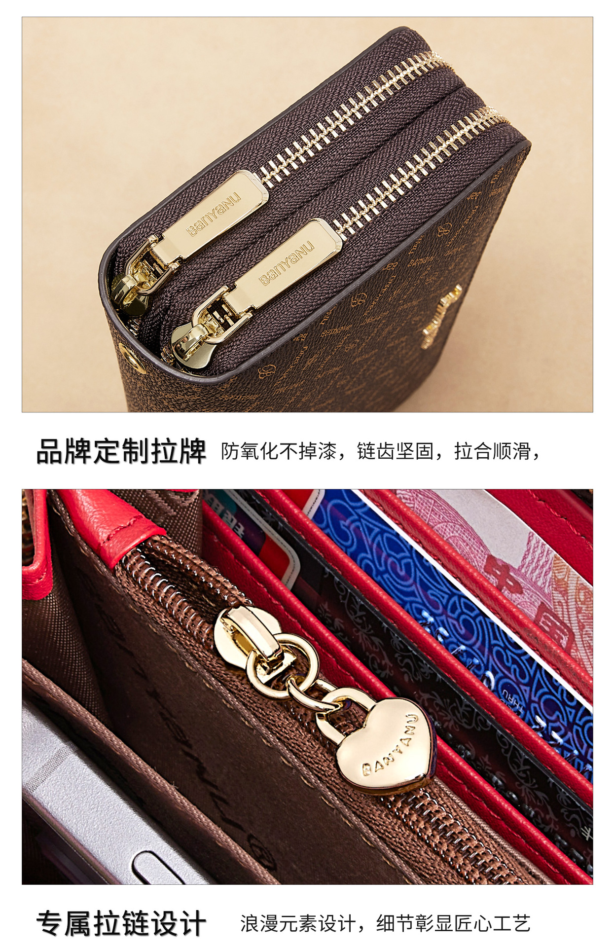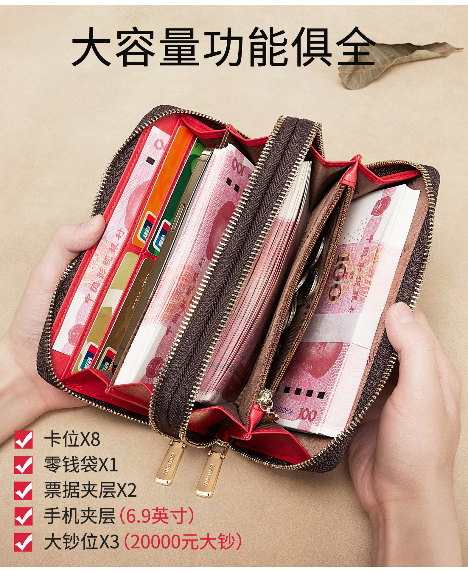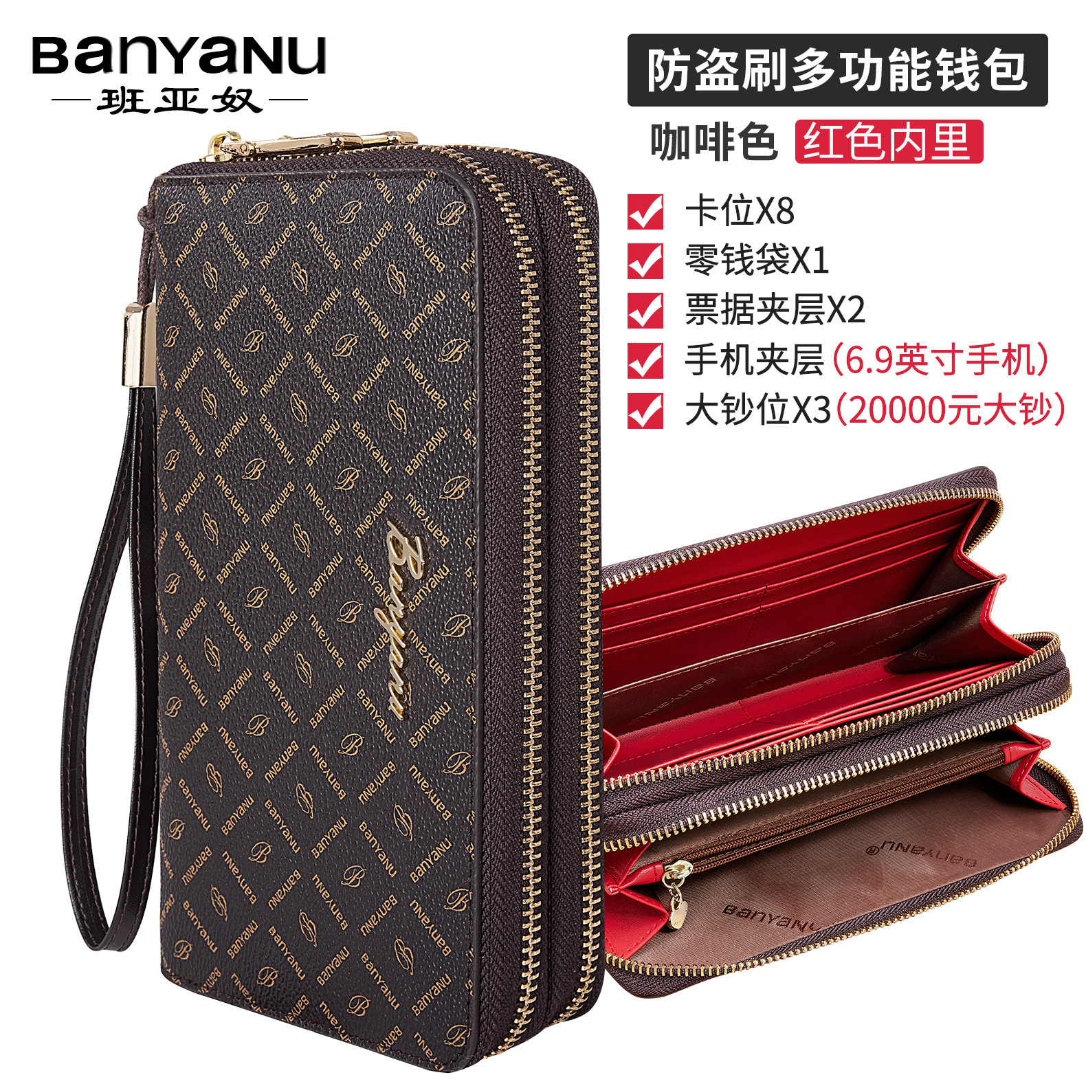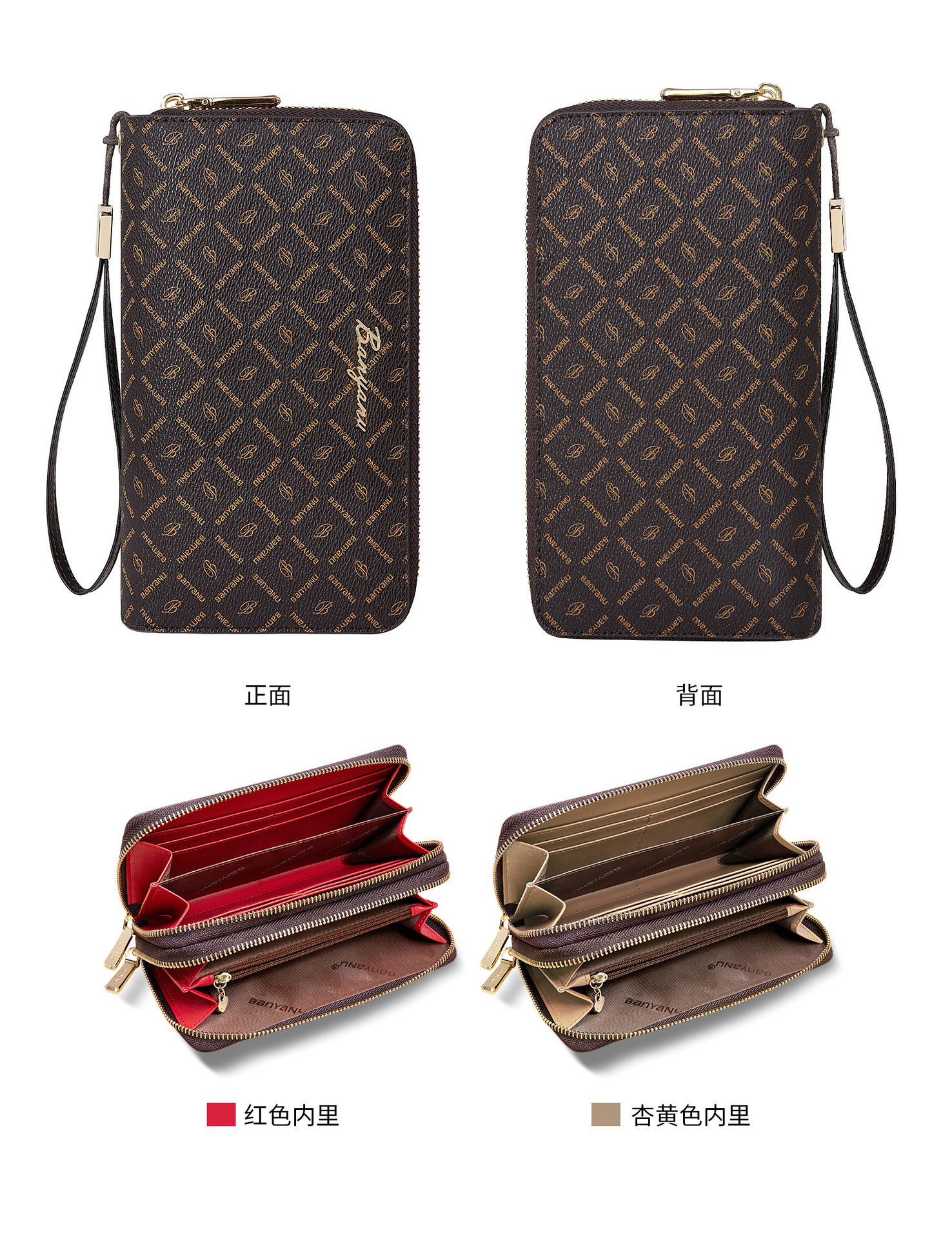 광주 반야누 가죽 공장 여성 지갑 여성용 대용량 롱 더블 지퍼 다기능 지갑 클러치