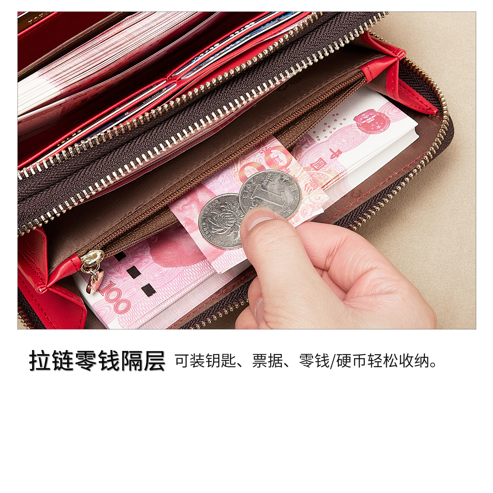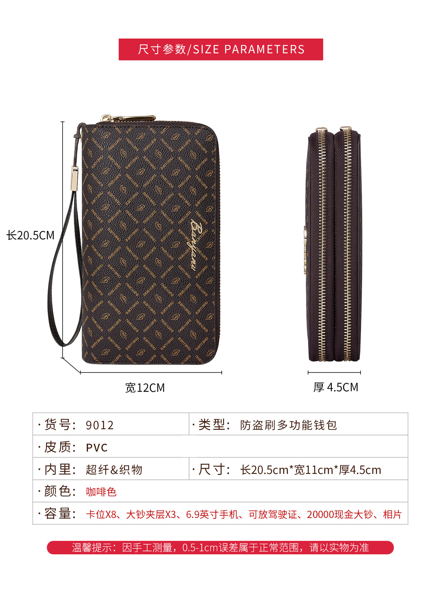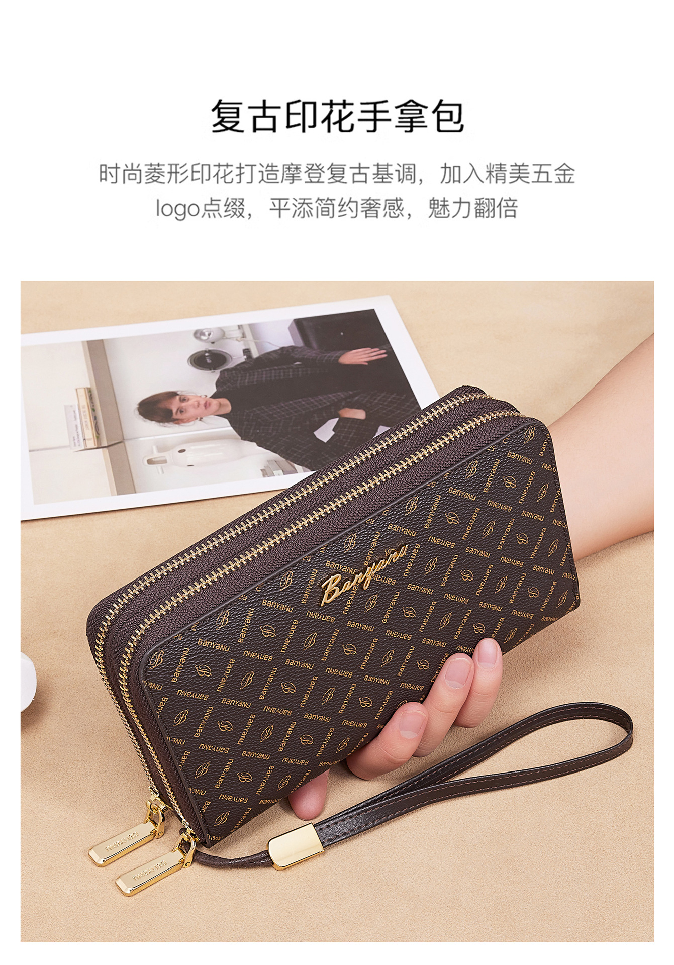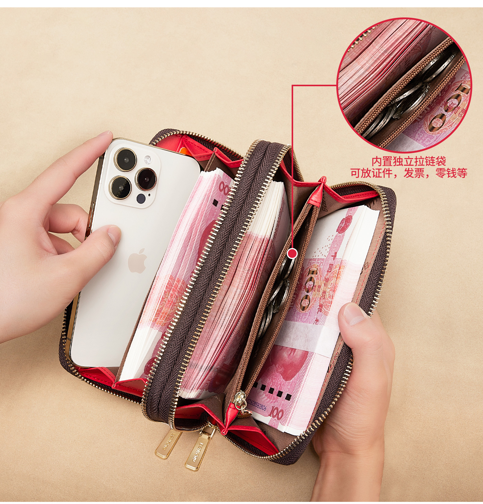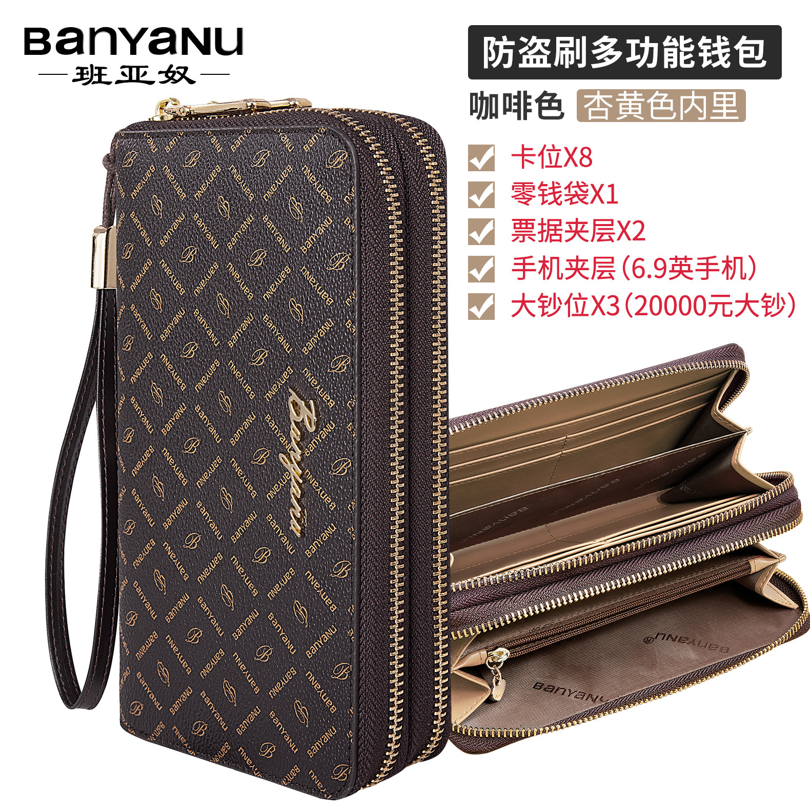 광주 반야누 가죽 공장 여성 지갑 여성용 대용량 롱 더블 지퍼 다기능 지갑 클러치