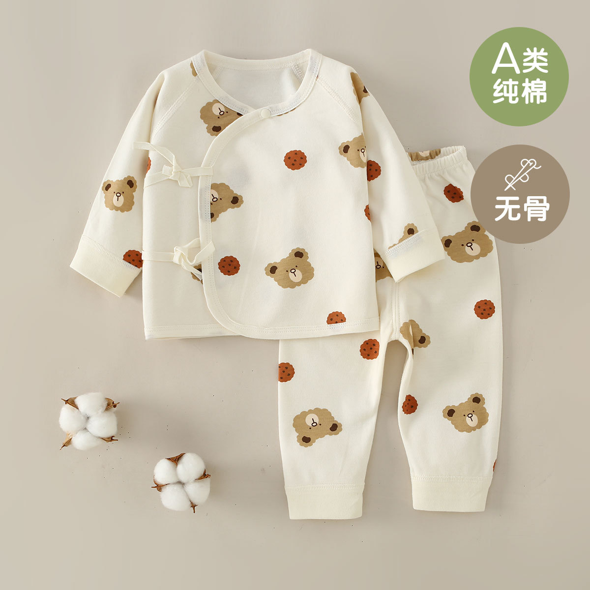 봄, 가을 신생아 의류 A급 순면 아기 세트 긴팔 무봉제 아기 몽크복 베이스레이어 홈웨어스토어 가기