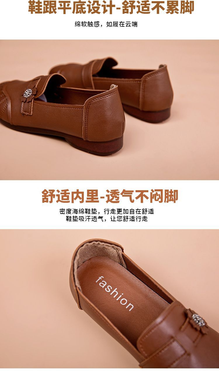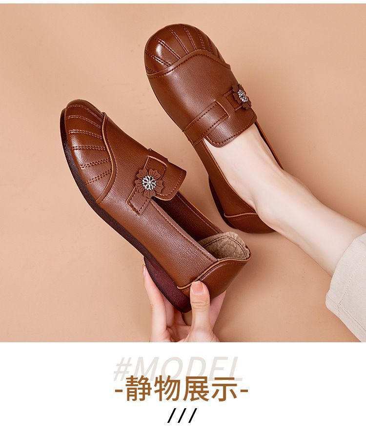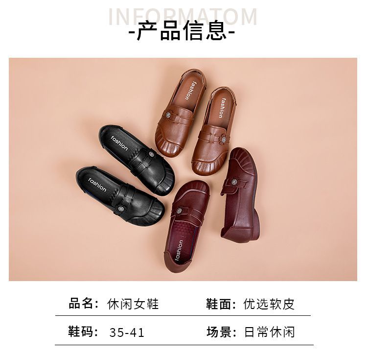 폭발 복고풍 부드러운 바닥 어머니 신발 부드러운 가죽 얕은 입 콩 신발 2024 봄과 가을 새로운 페달 통근 신발 여성스토어 가기